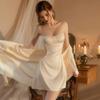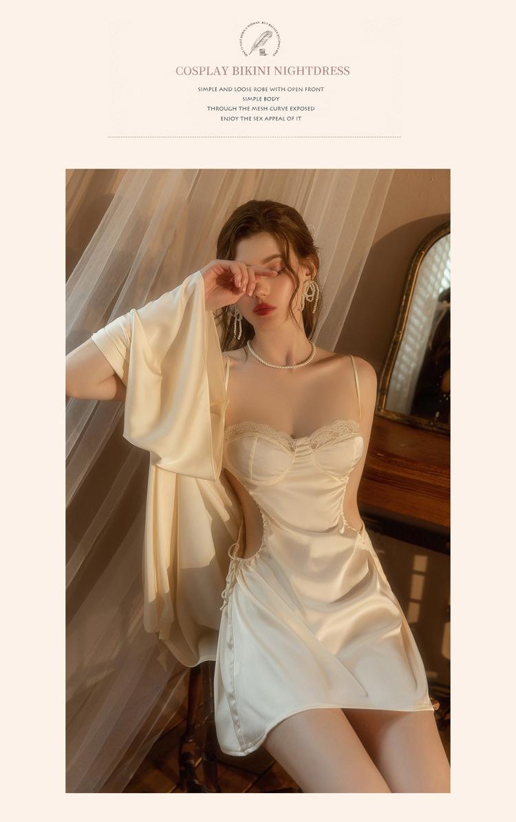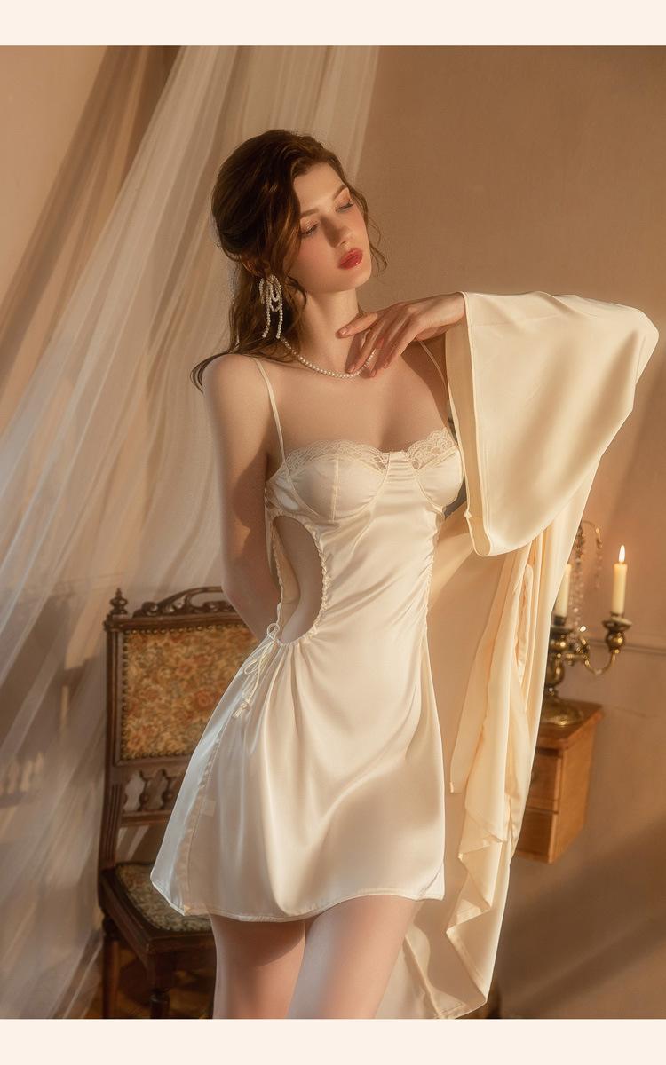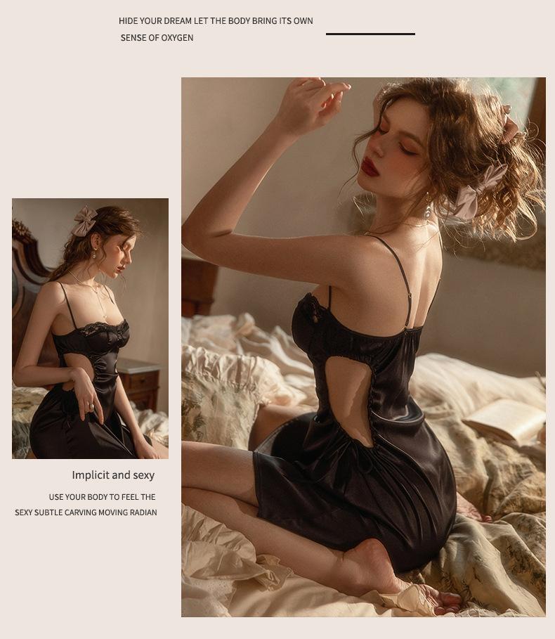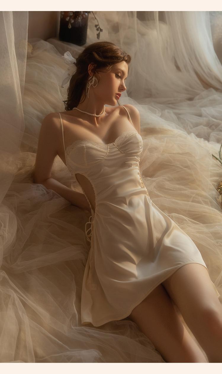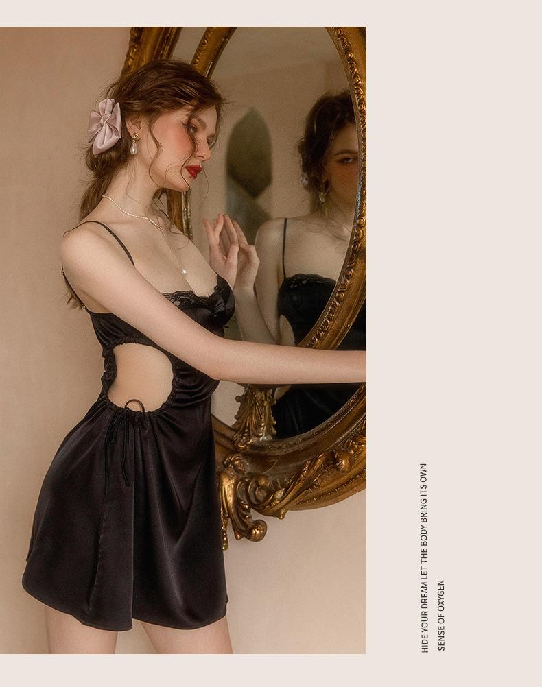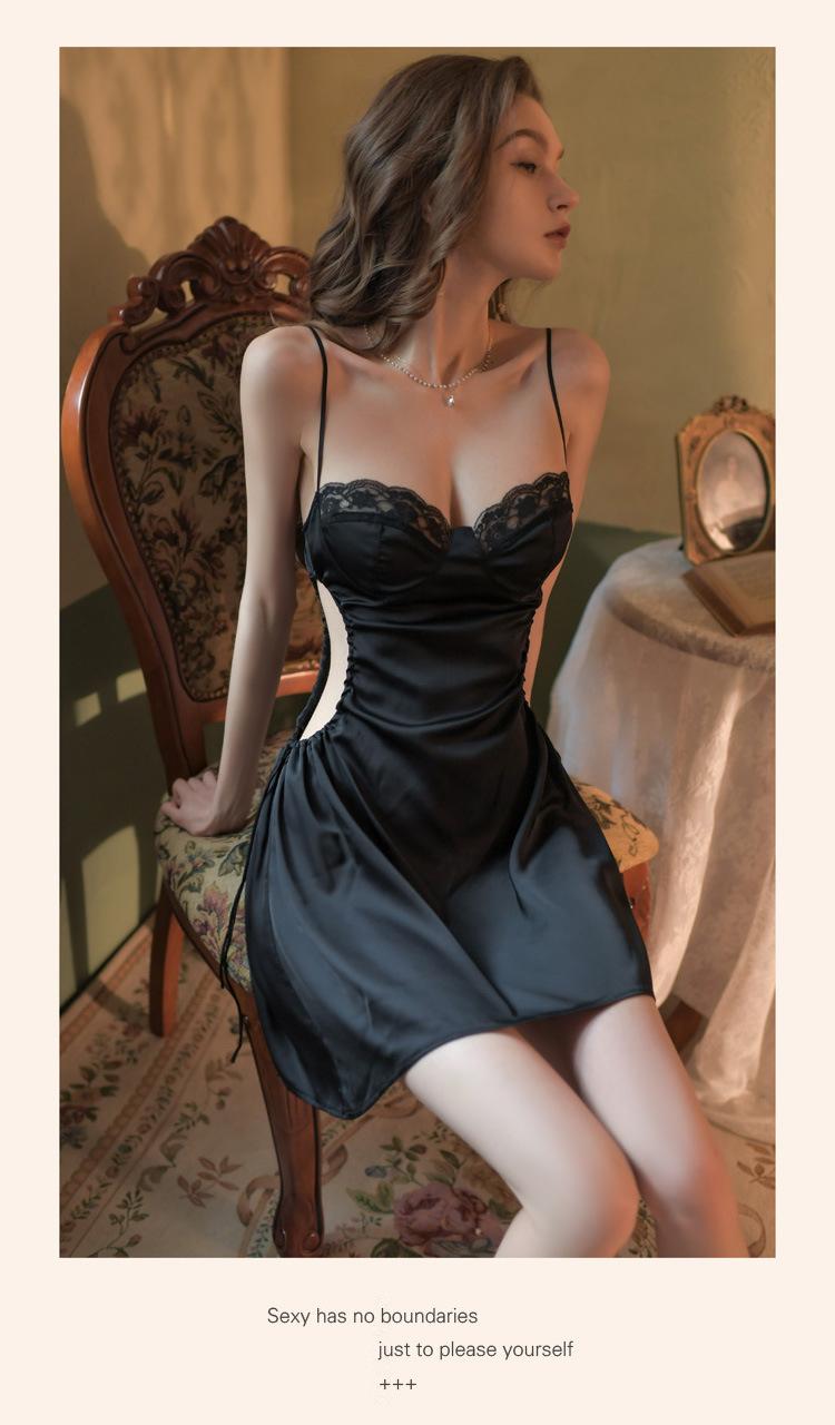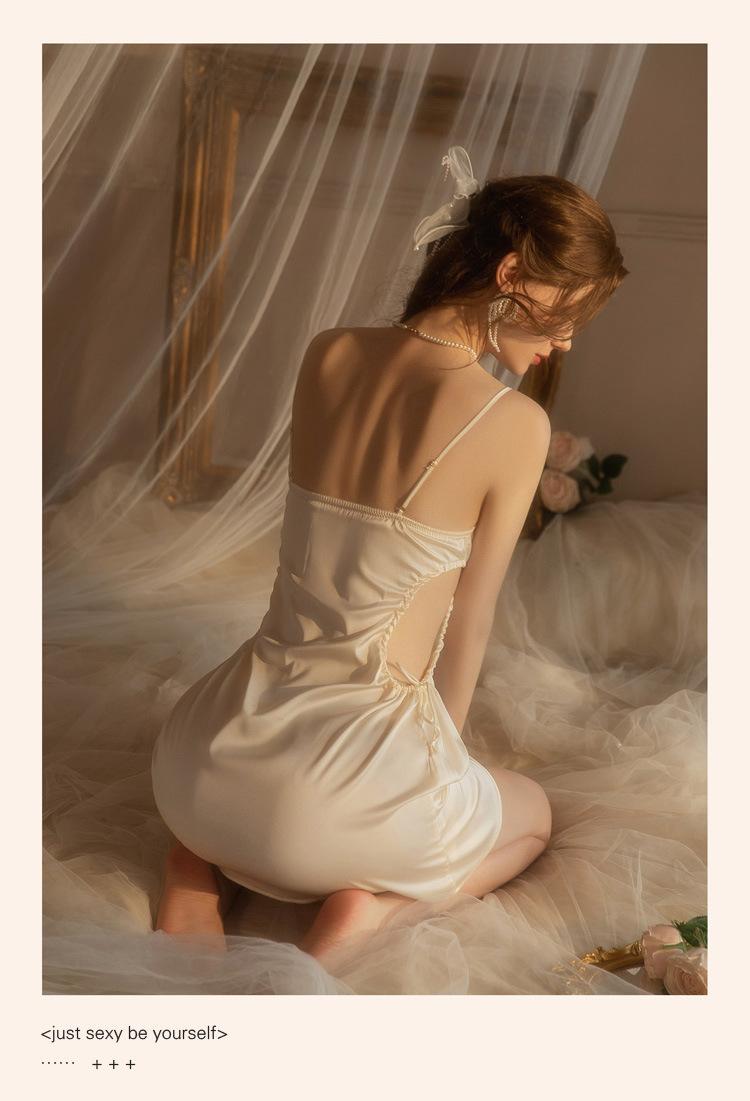 2024 Nuevo pijama sexy para mujer viento de deseo puro con almohadilla en el pecho Seda de Hielo fino tirante hueco camisón traje de verano