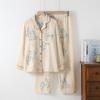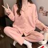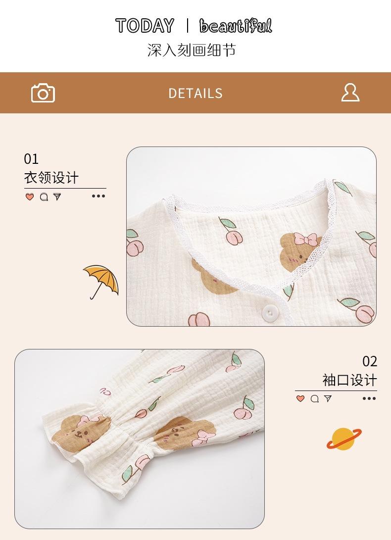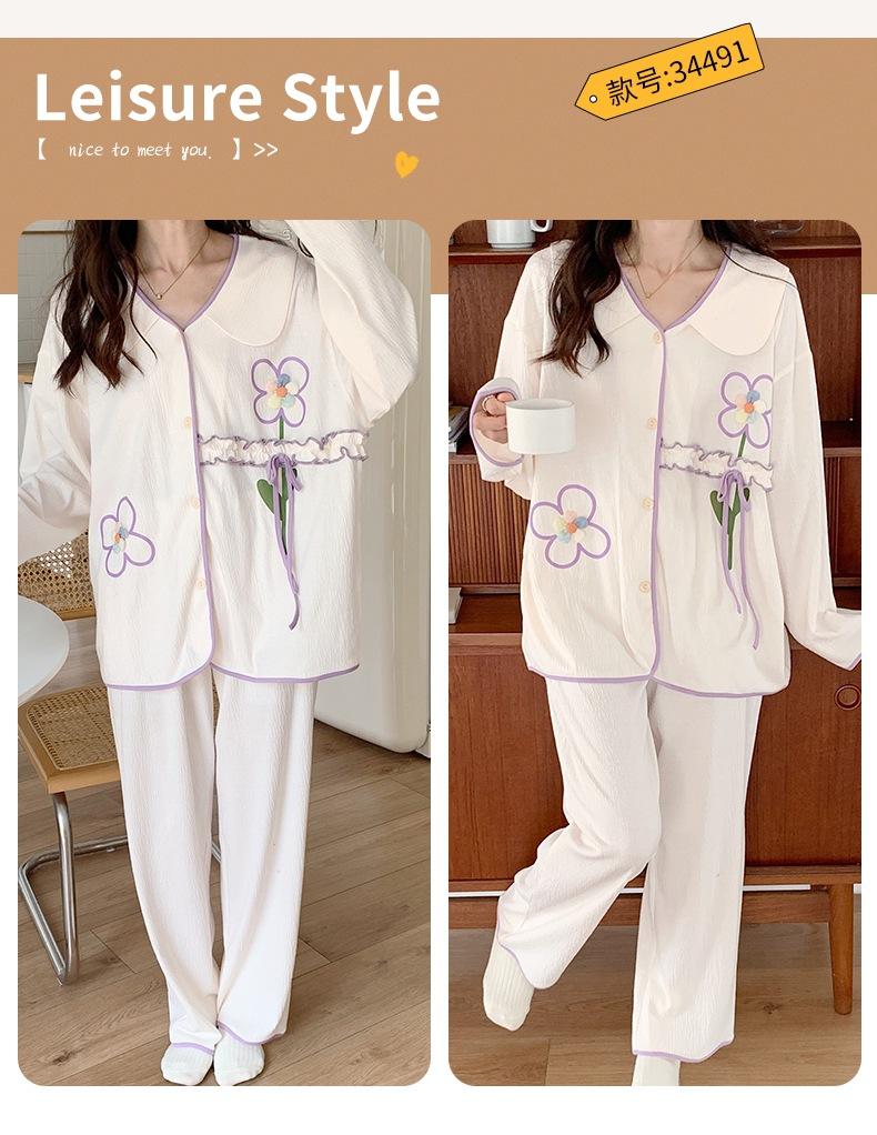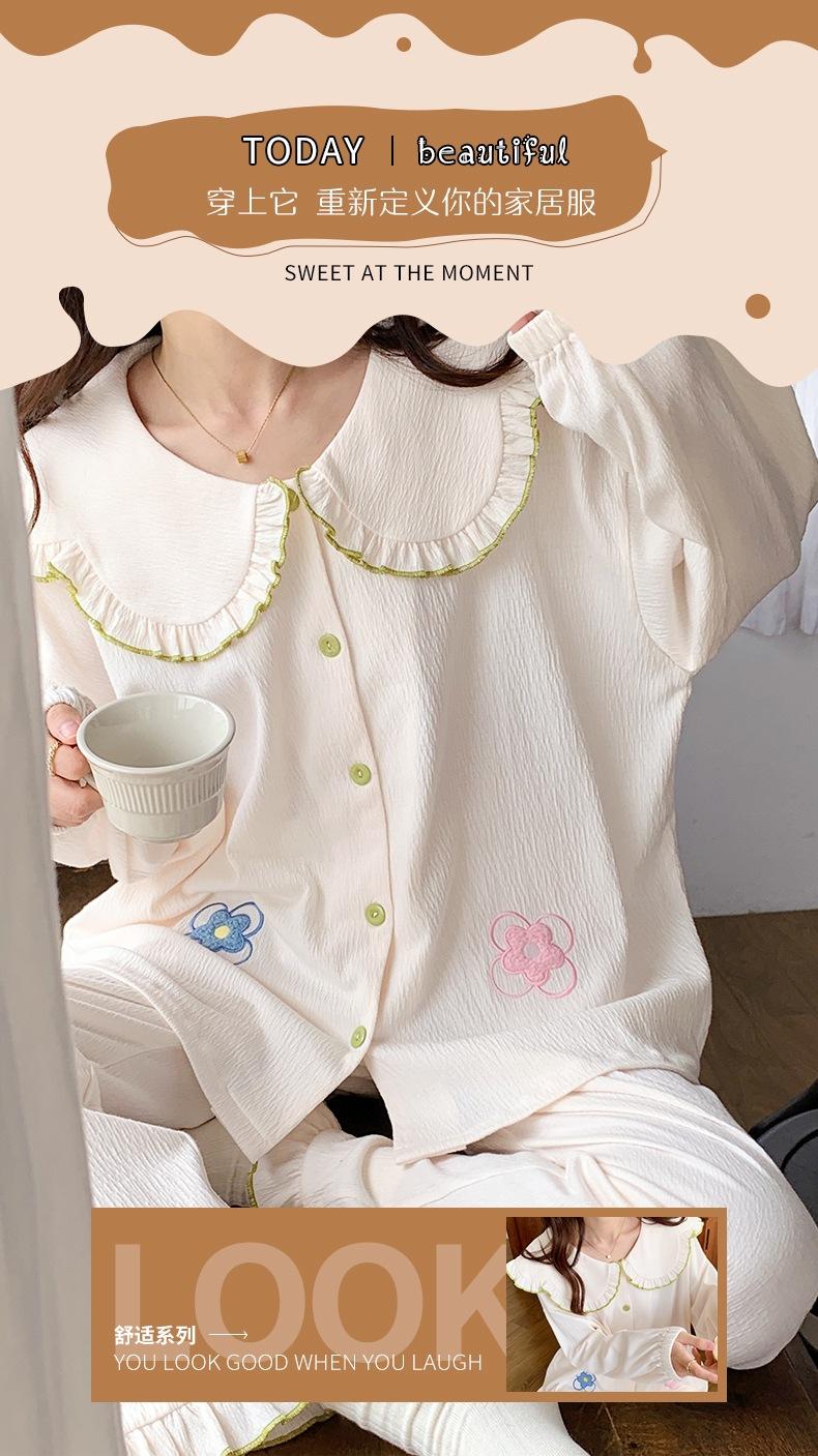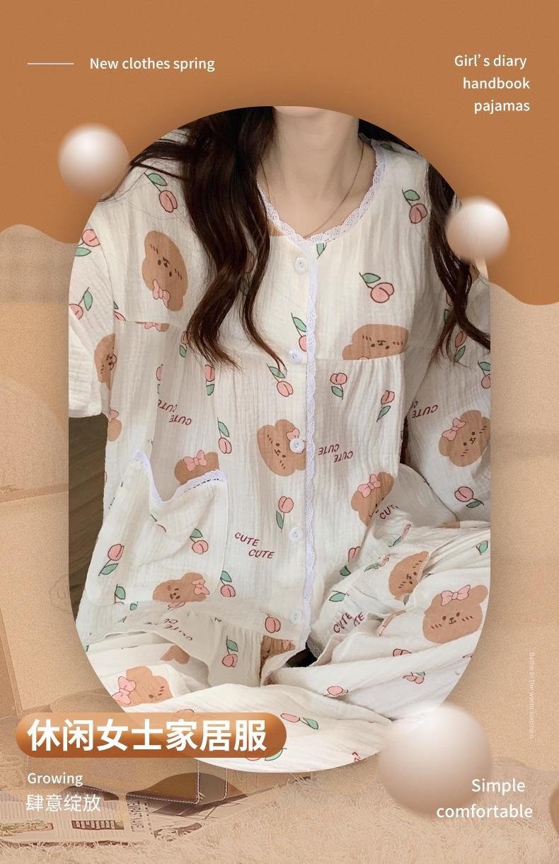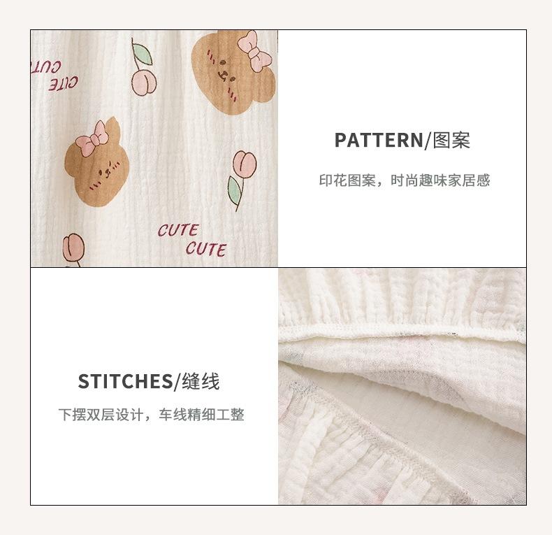 Pijamas nuevos de primavera y otoño para mujer, cárdigan de algodón tejido 6535, de tela arrugada, de manga larga, con dibujos animados, ropa para el hogar.