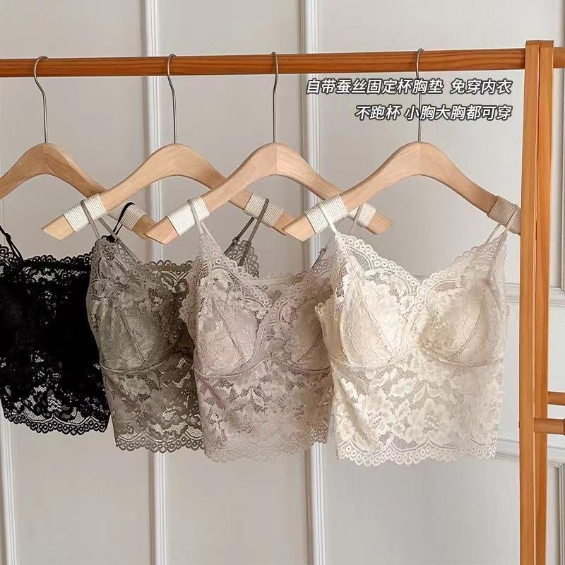 Encaje hermosa espalda 015# encaje francés tirante pequeño copa fija tirante fino ropa interior usar cómodo por dentro hermosa espalda