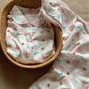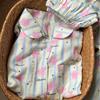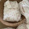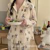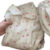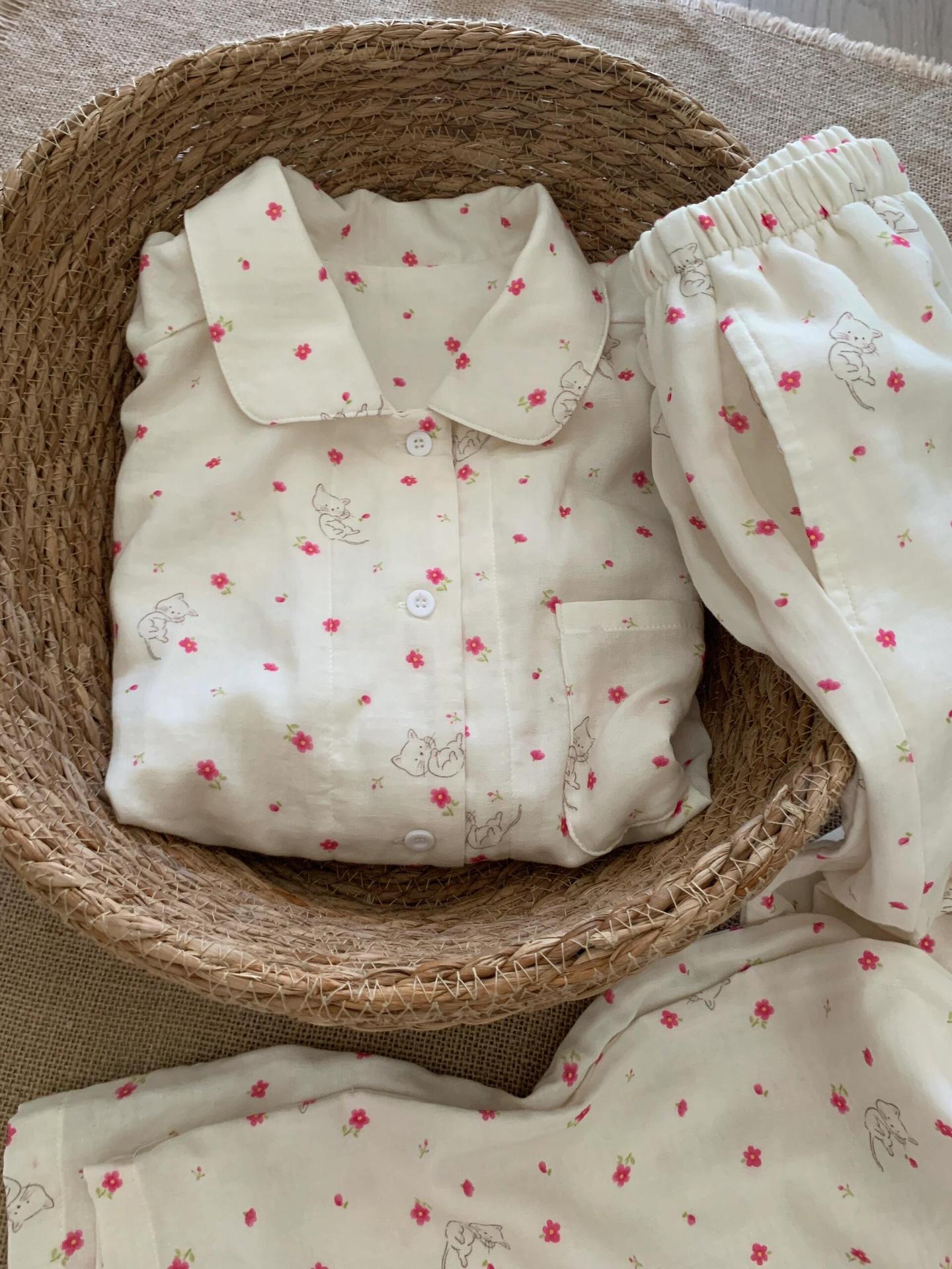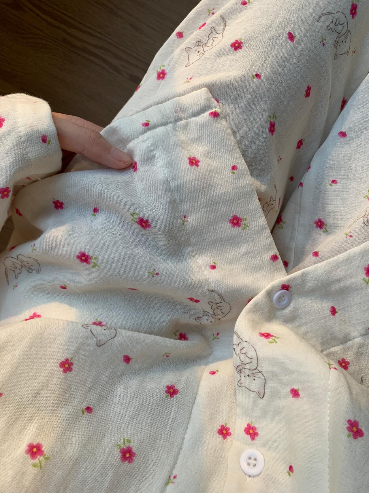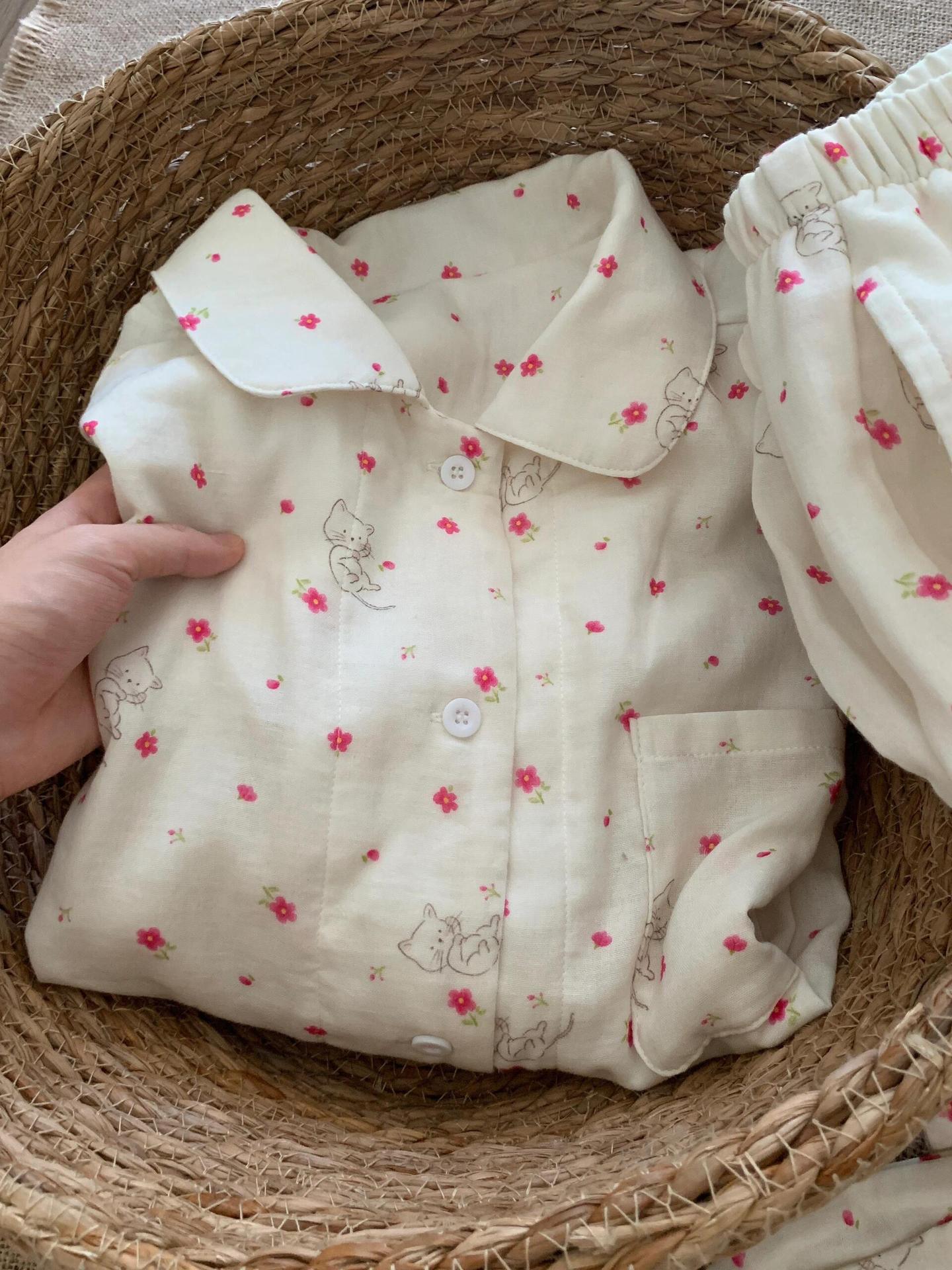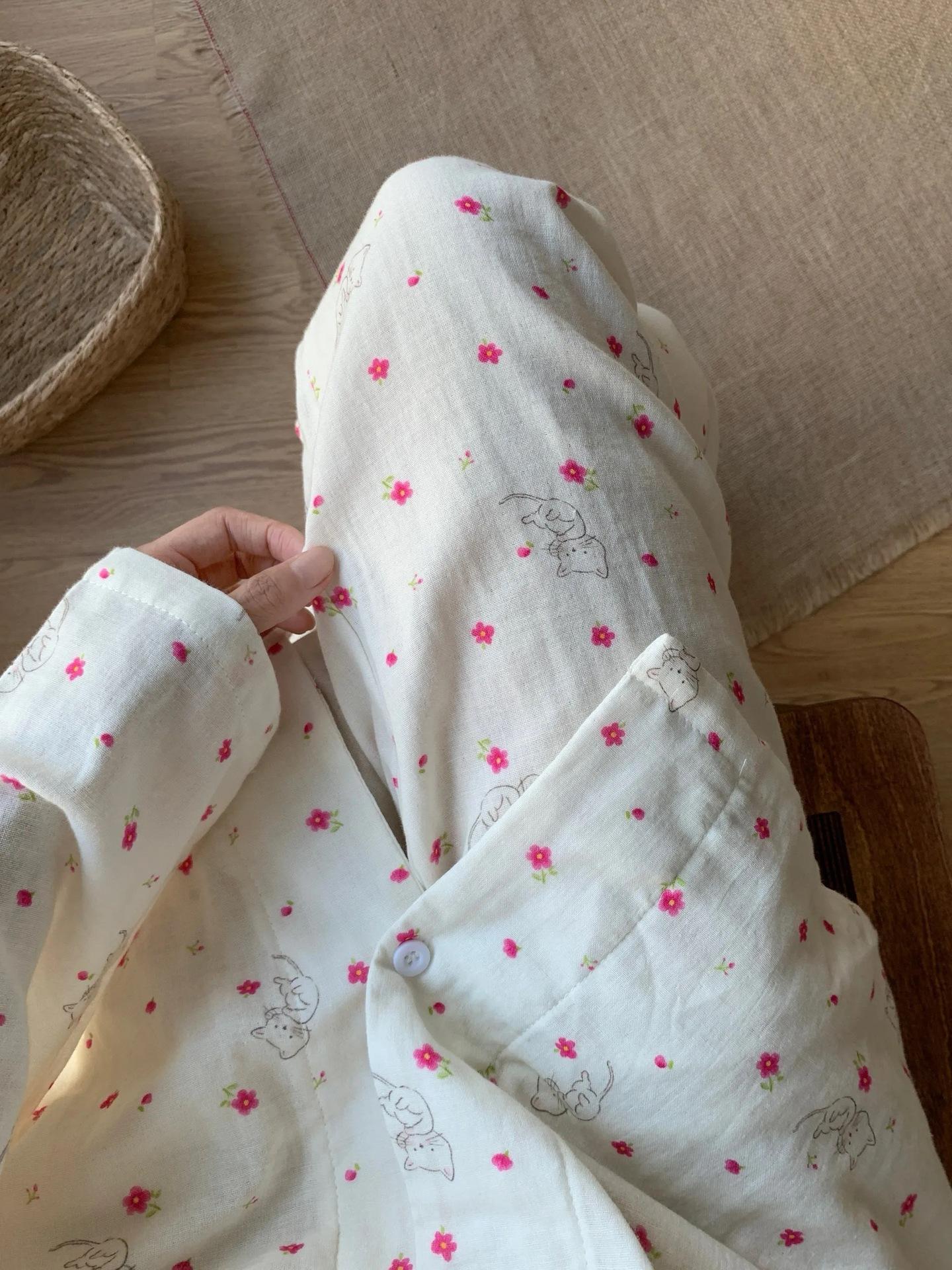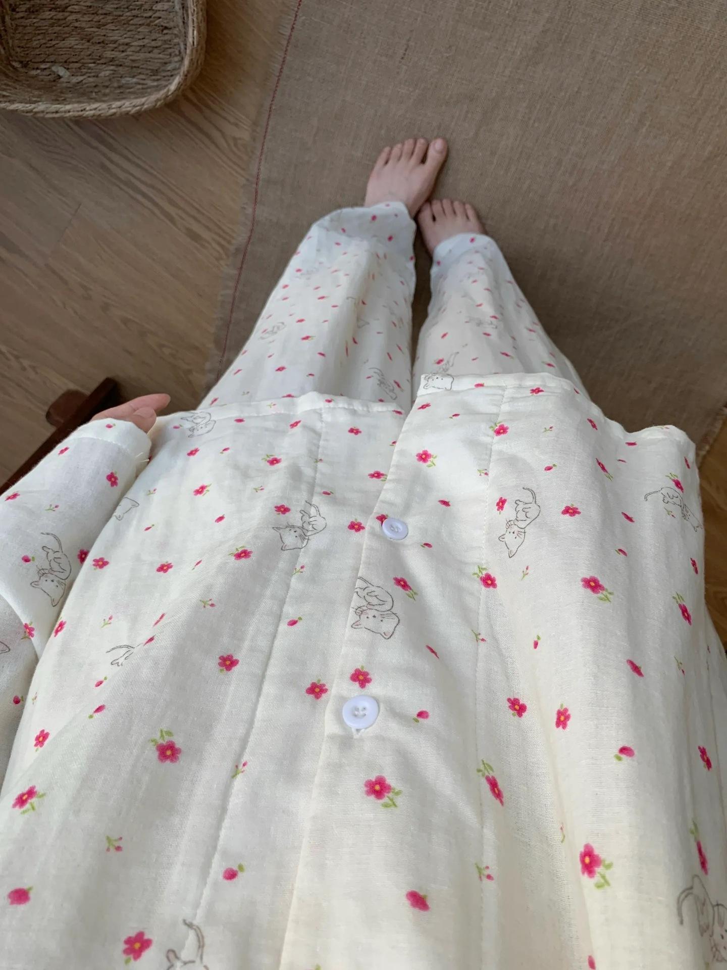 Gatito de flor roja ~ primavera 2025 nueva clase a algodón hilo doble capa manga larga pijama con solapa linda ropa de casa