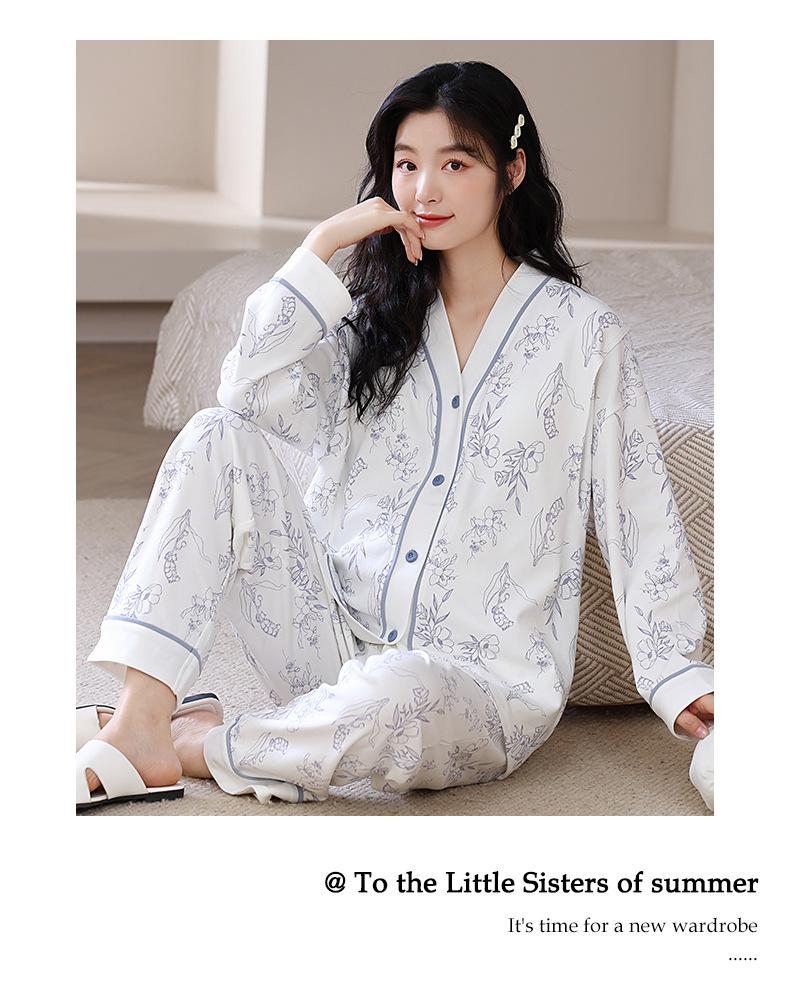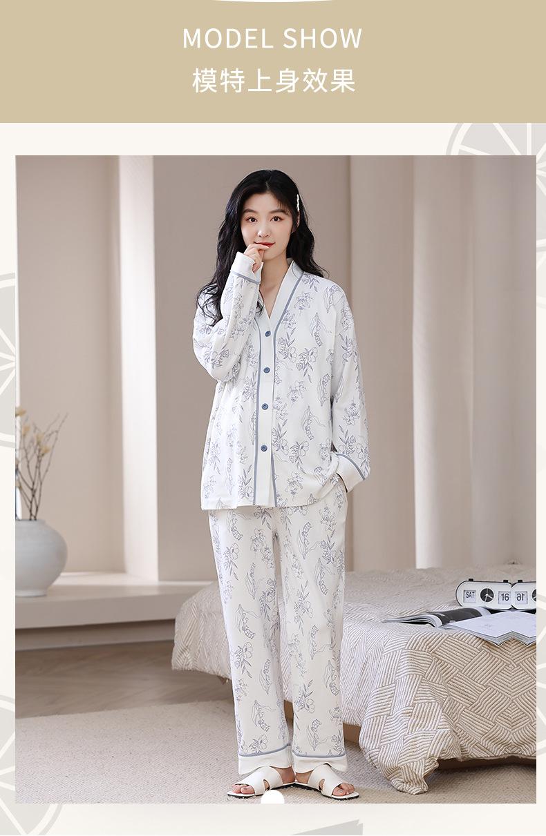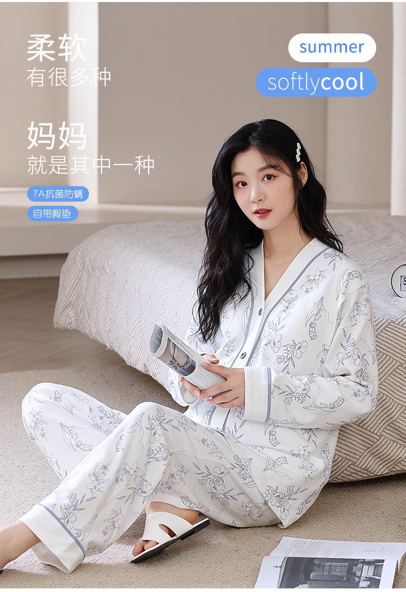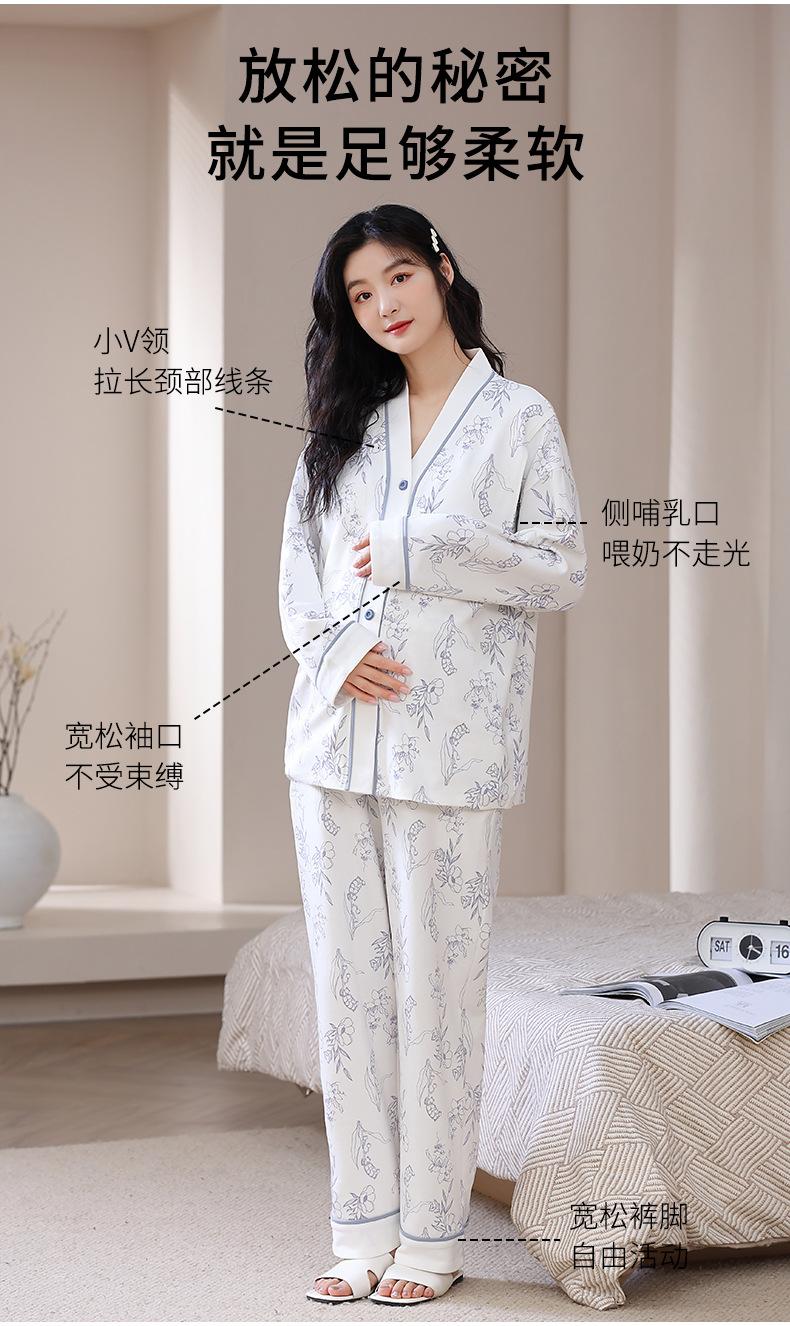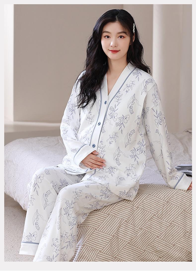2025 Nuevo Primavera Manga Larga con Almohadilla en el Pecho Pijama de Algodón Puro Ropa Mensual para Mujer Traje de Lactancia para Mujeres Embarazadas Postparto