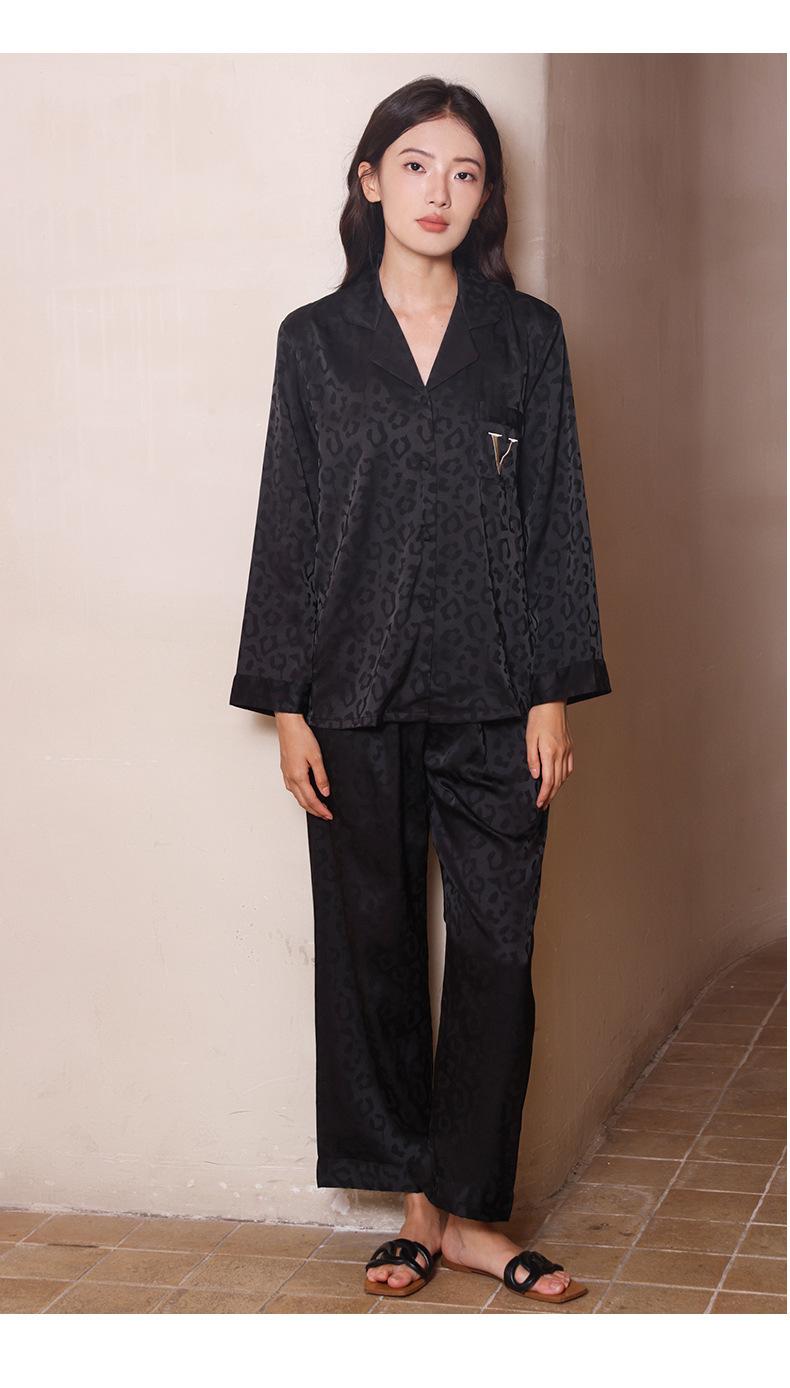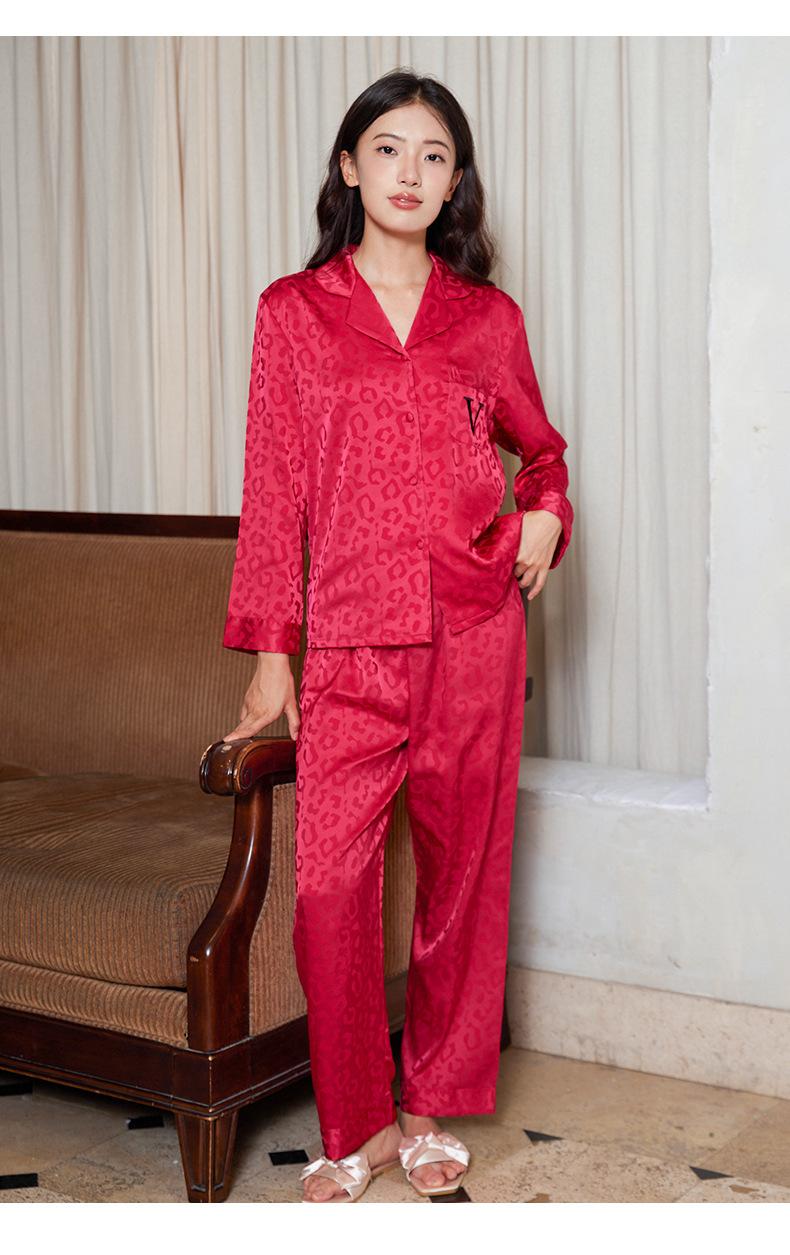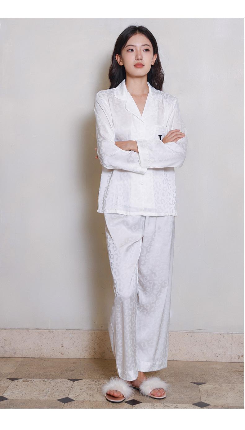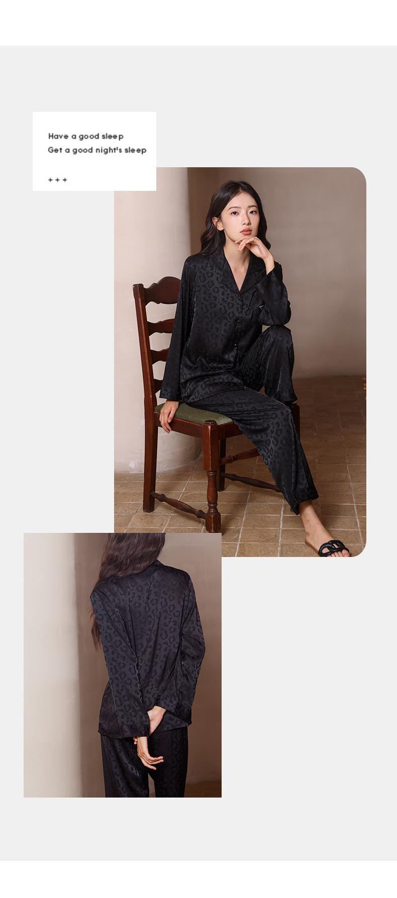 Pijama fino de seda de alta calidad para mujer, estilo simple de verano con estampado de hielo y nieve, traje de manga larga con estampado de leopardo para mujer, primavera y otoño, jacquard