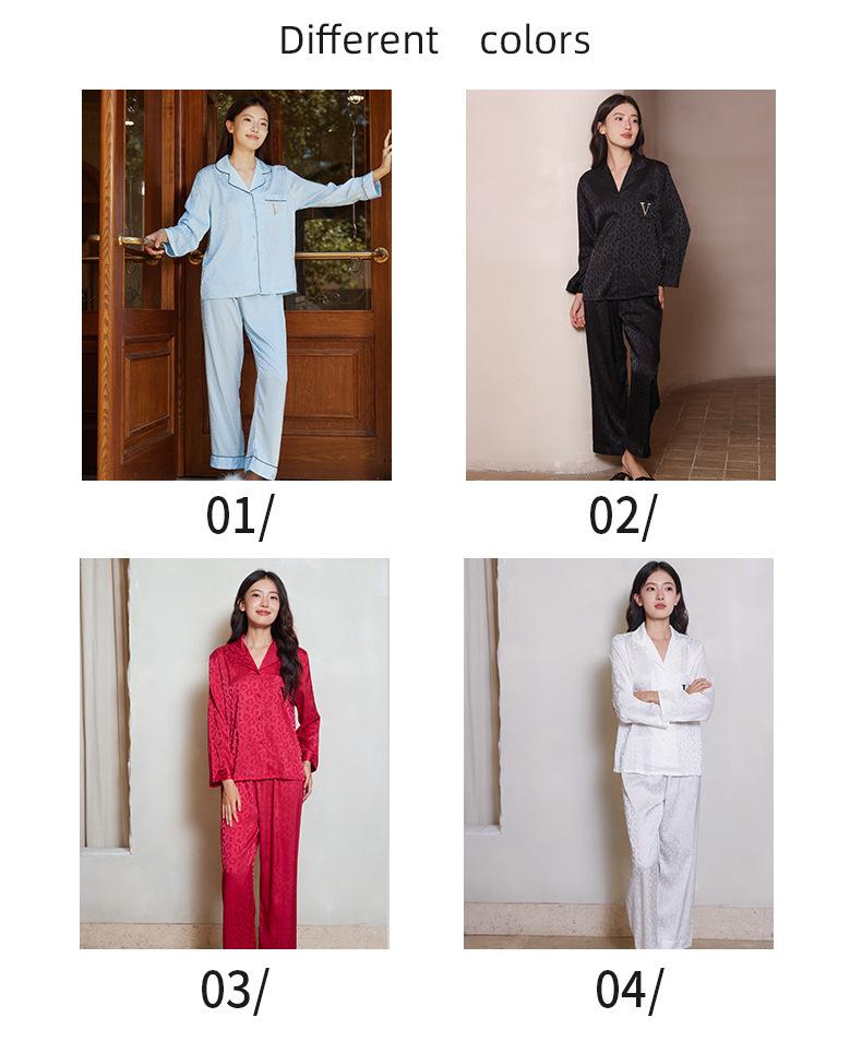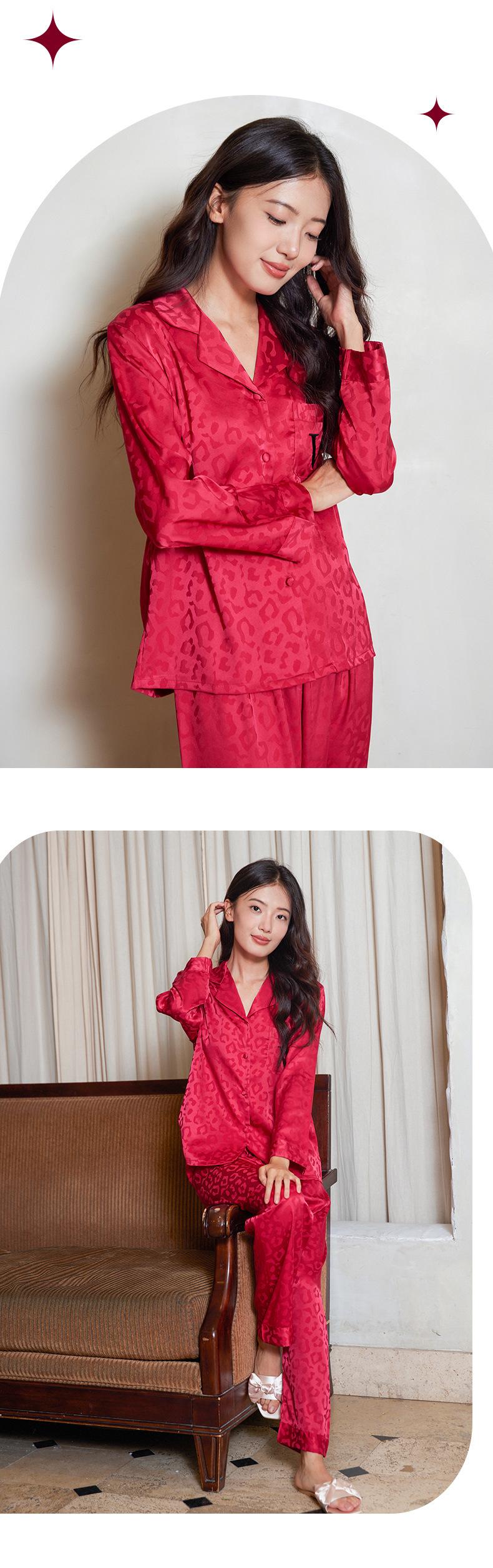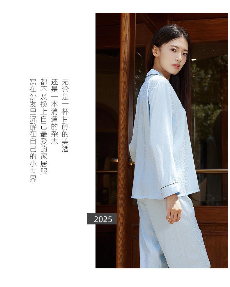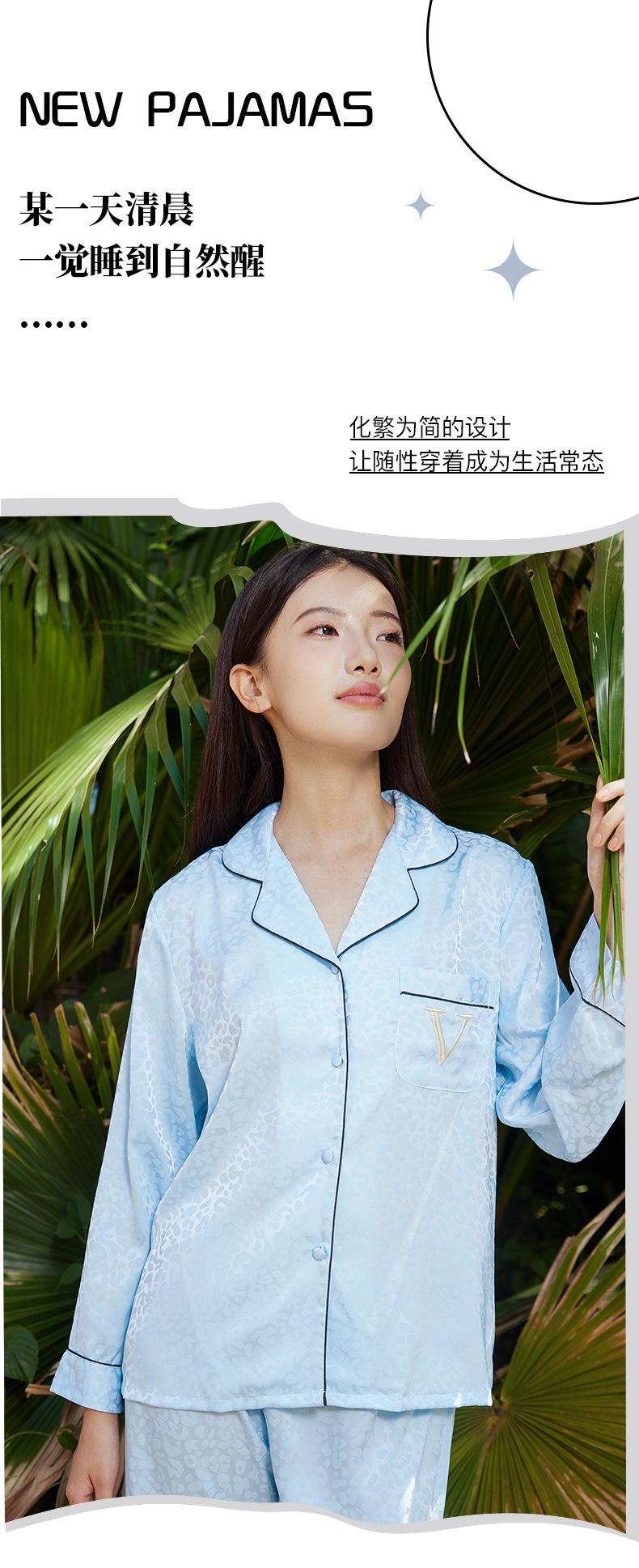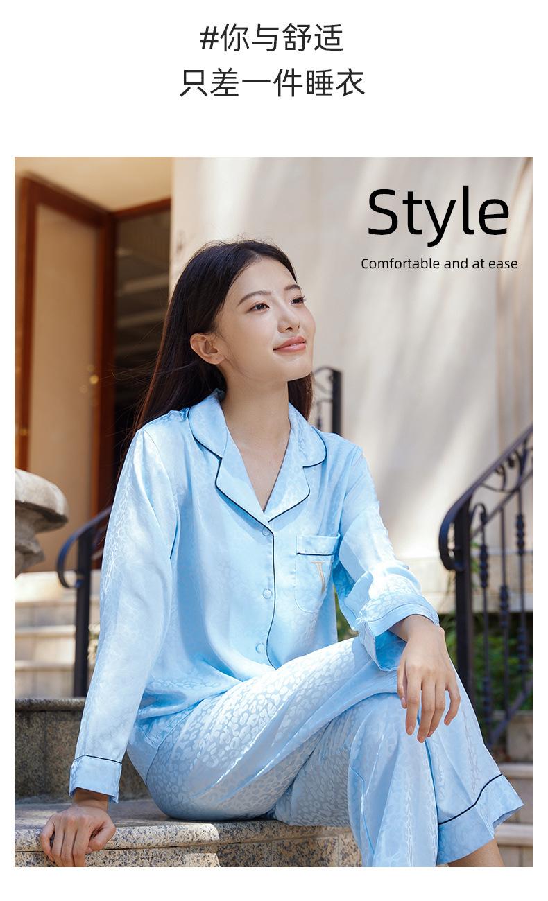 Pijama fino de seda de alta calidad para mujer, estilo simple de verano con estampado de hielo y nieve, traje de manga larga con estampado de leopardo para mujer, primavera y otoño, jacquard