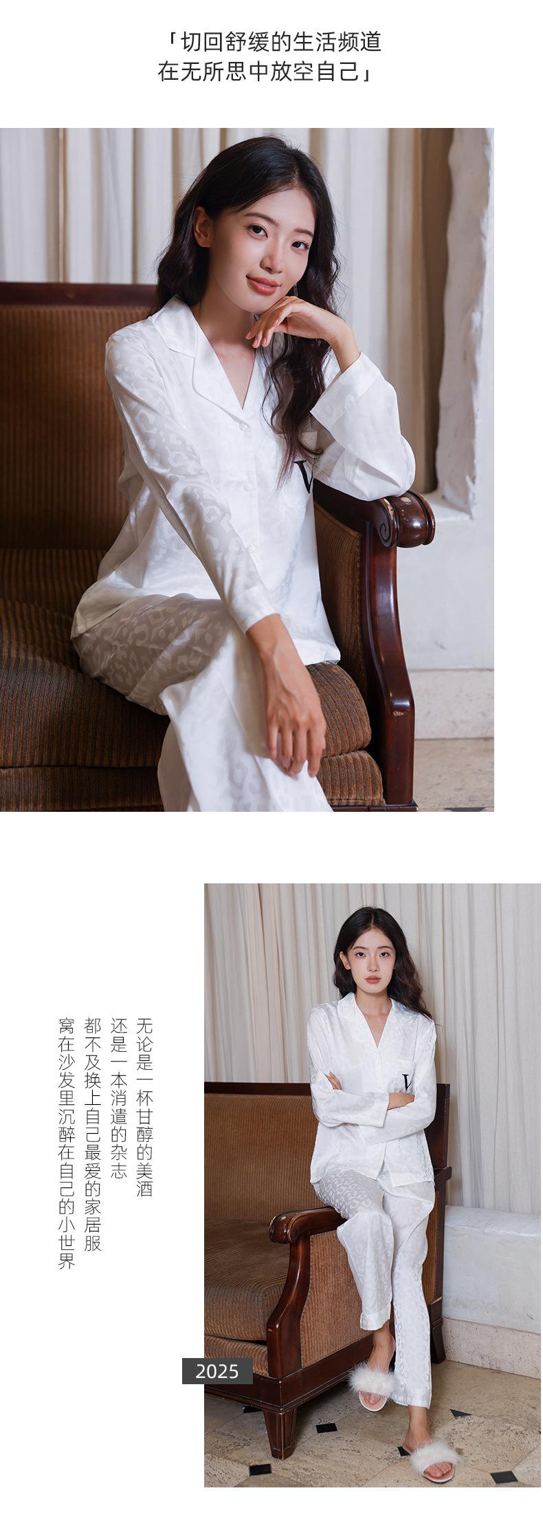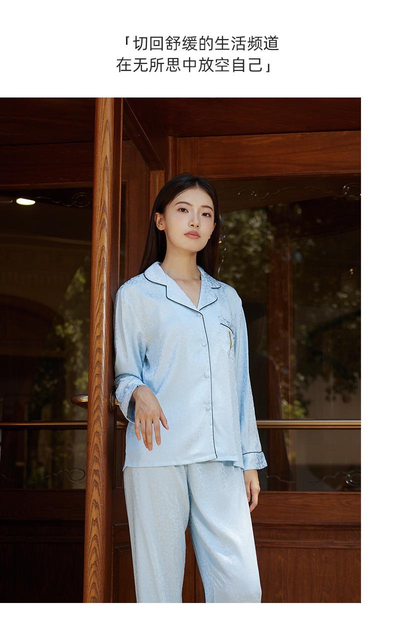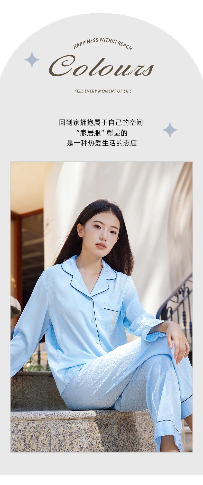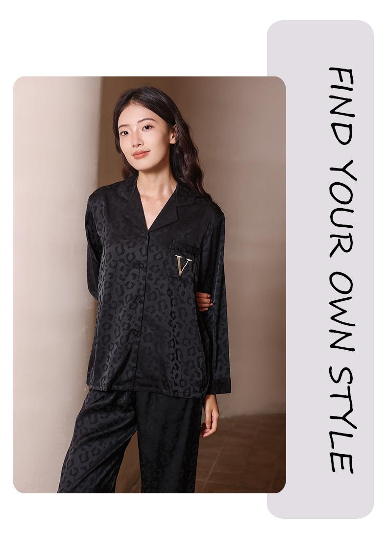 Pijama fino de seda de alta calidad para mujer, estilo simple de verano con estampado de hielo y nieve, traje de manga larga con estampado de leopardo para mujer, primavera y otoño, jacquard