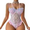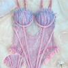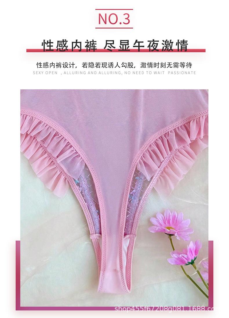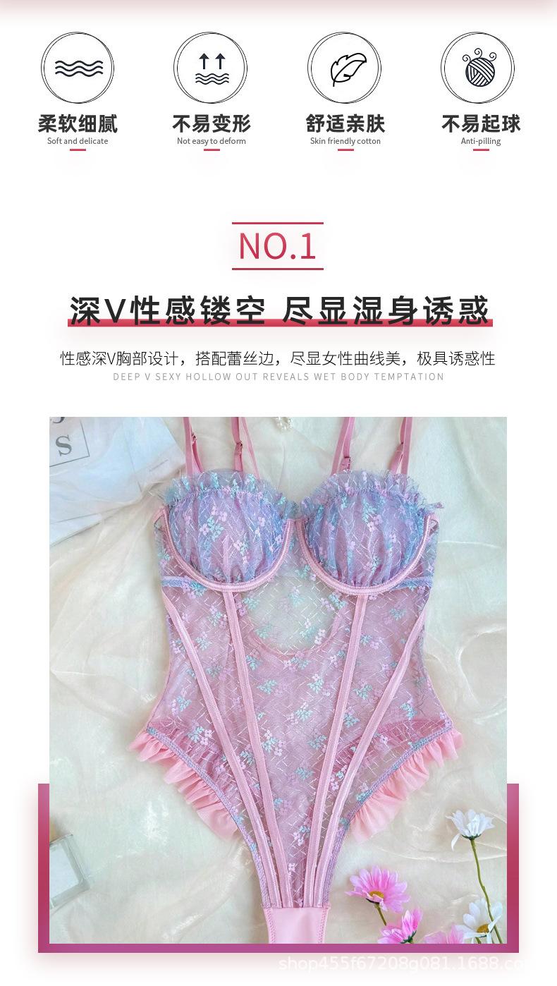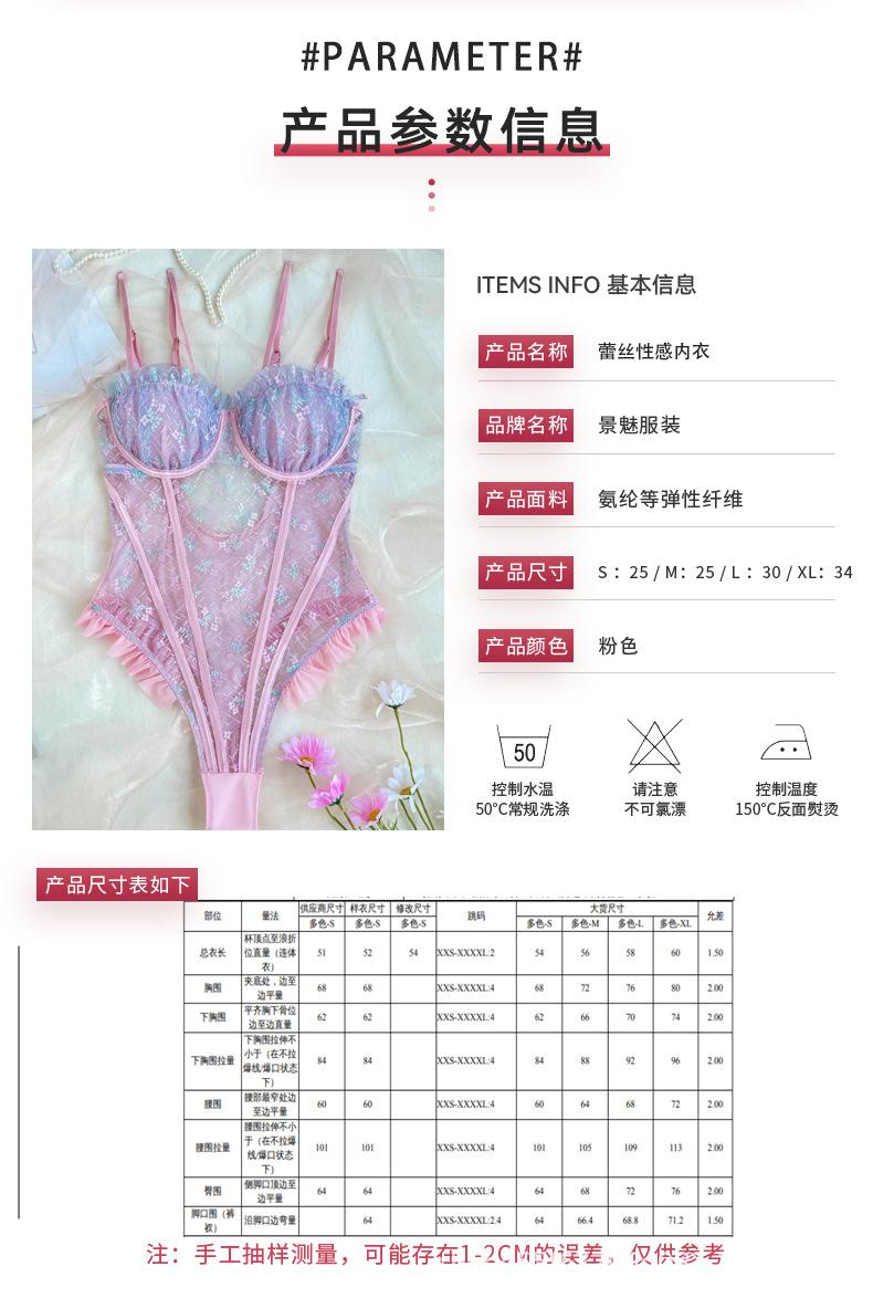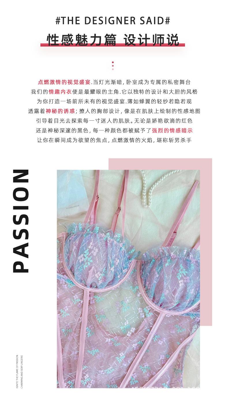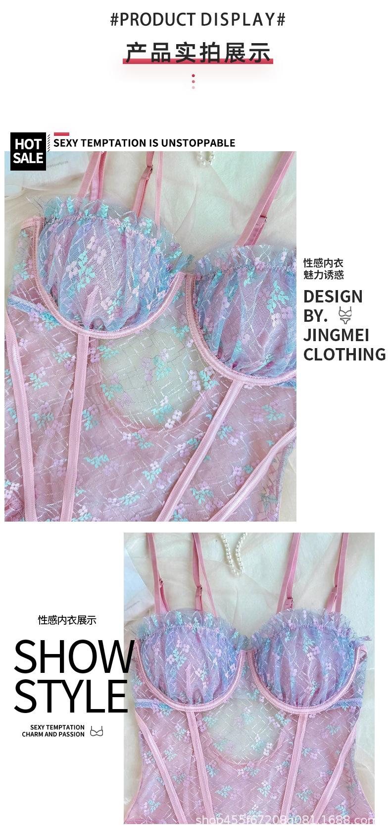 Lencería de Deseo Puro Elegante y Lujosa de Estilo Francés con Aros, Body con Tirantes, Rosa Bordado con Volantes Fruncidos Qqny