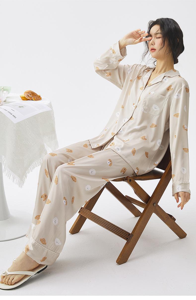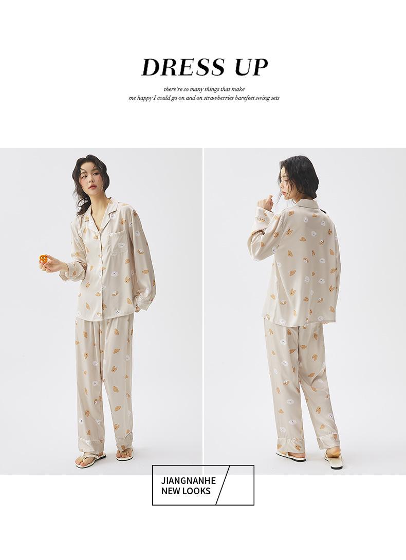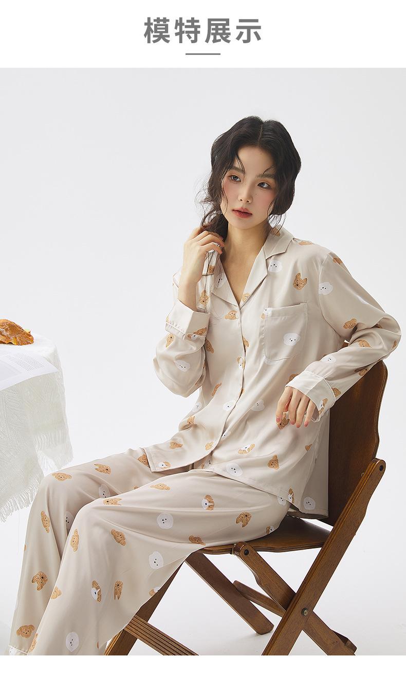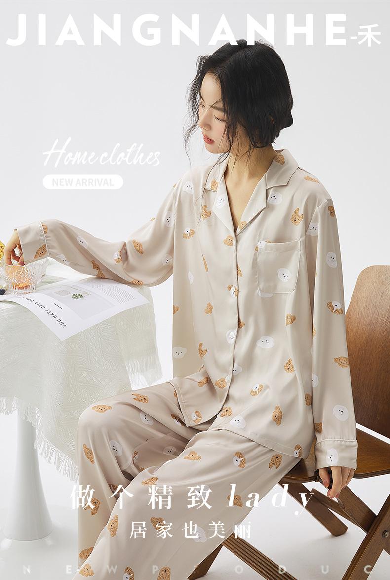 Jiangnan Wo 25 Primavera Nuevo Pijama de Seda de Hielo para Mujer Perro Esponjoso Khachi Ropa de Casa Conjunto para Mujer Verano Comercio Exterior Transfronterizo