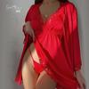 Gui Ruo Pure Desire - Camisón de satén con escote en V profundo y encaje, ropa interior sexy con abertura, traje de casa 245