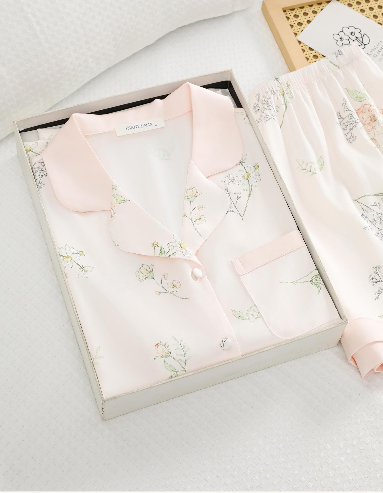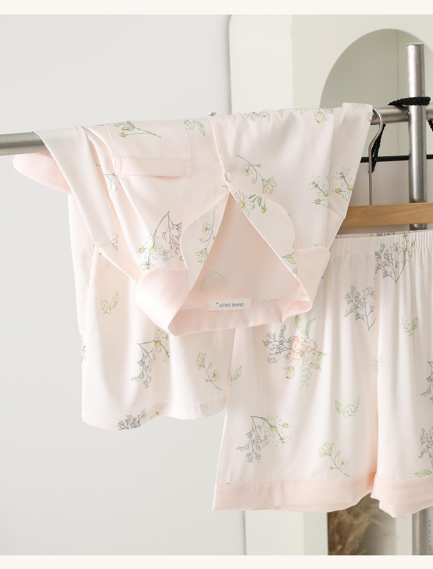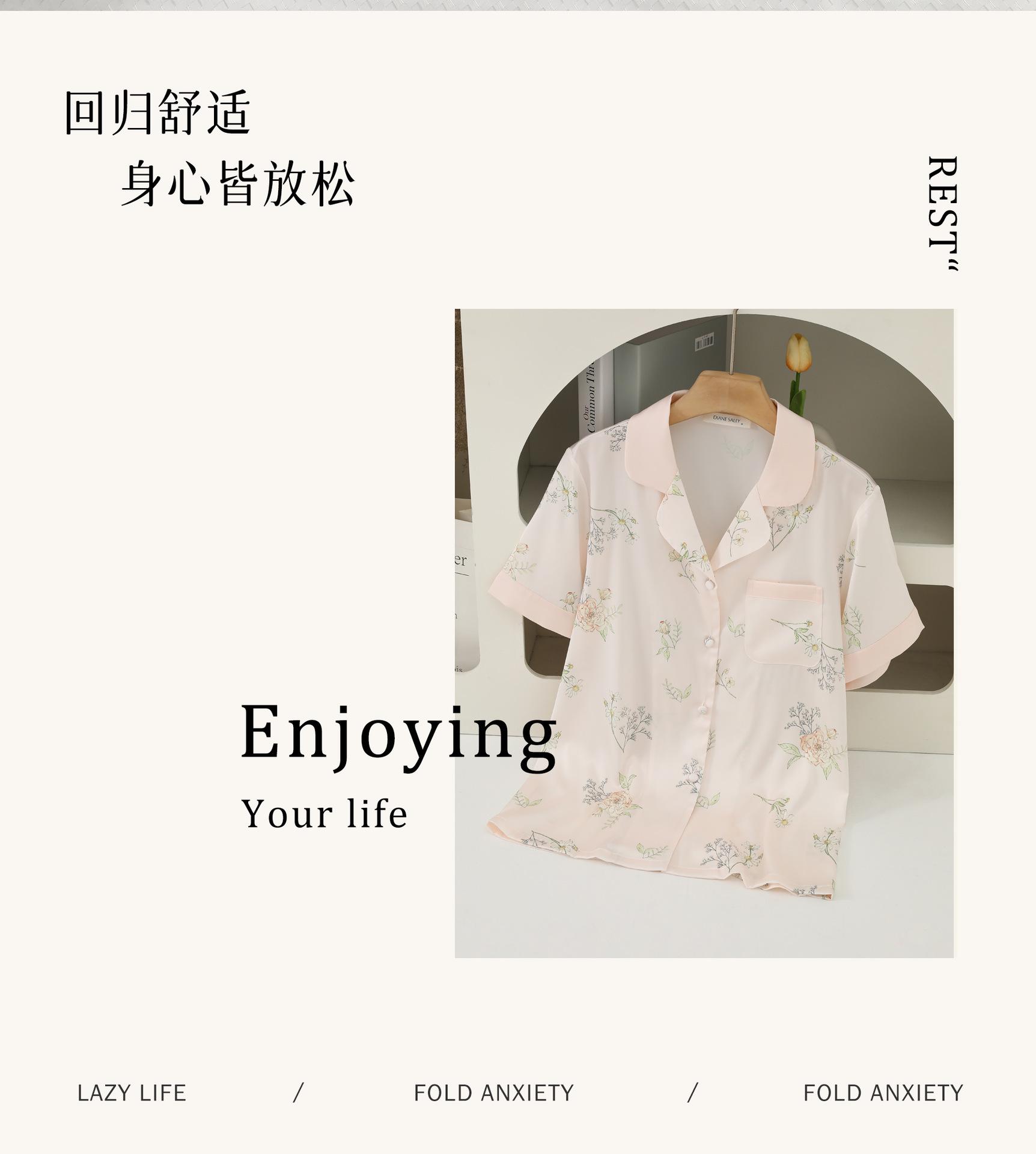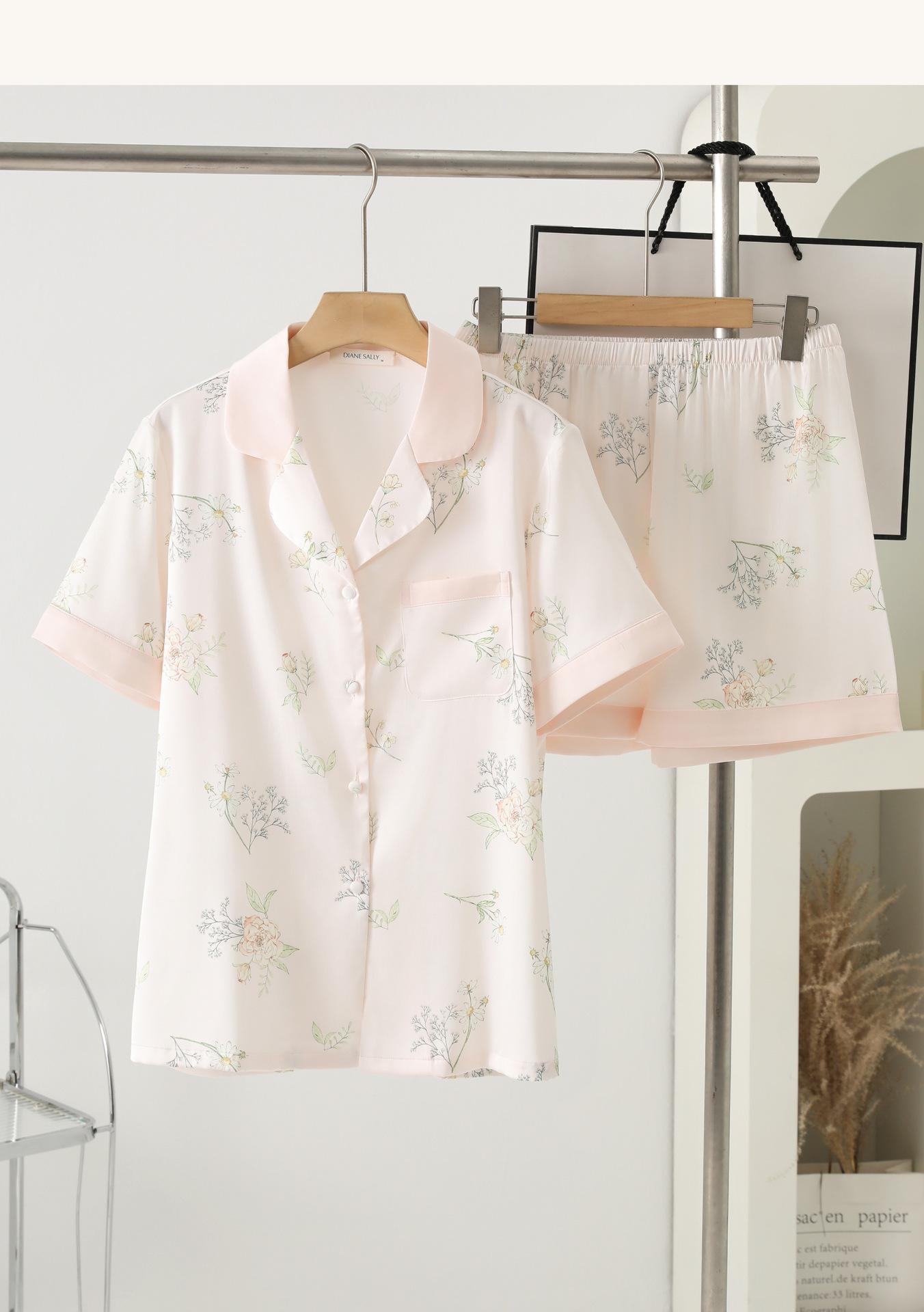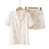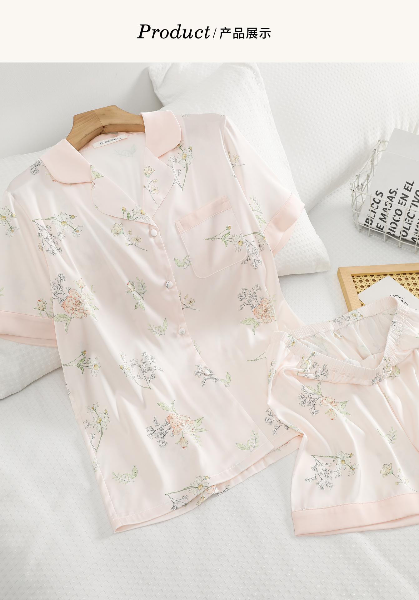 Pijamas de mujer de primavera y verano con estampado fino de seda de hielo, pantalones cortos de manga corta, conjunto de dos piezas, ropa de abrigo informal de moda, ropa para el hogar de verano