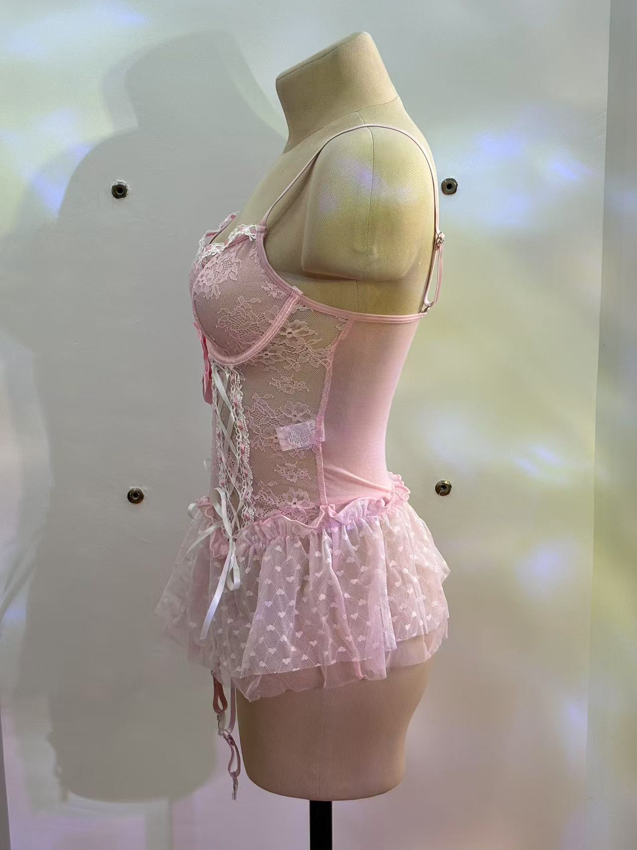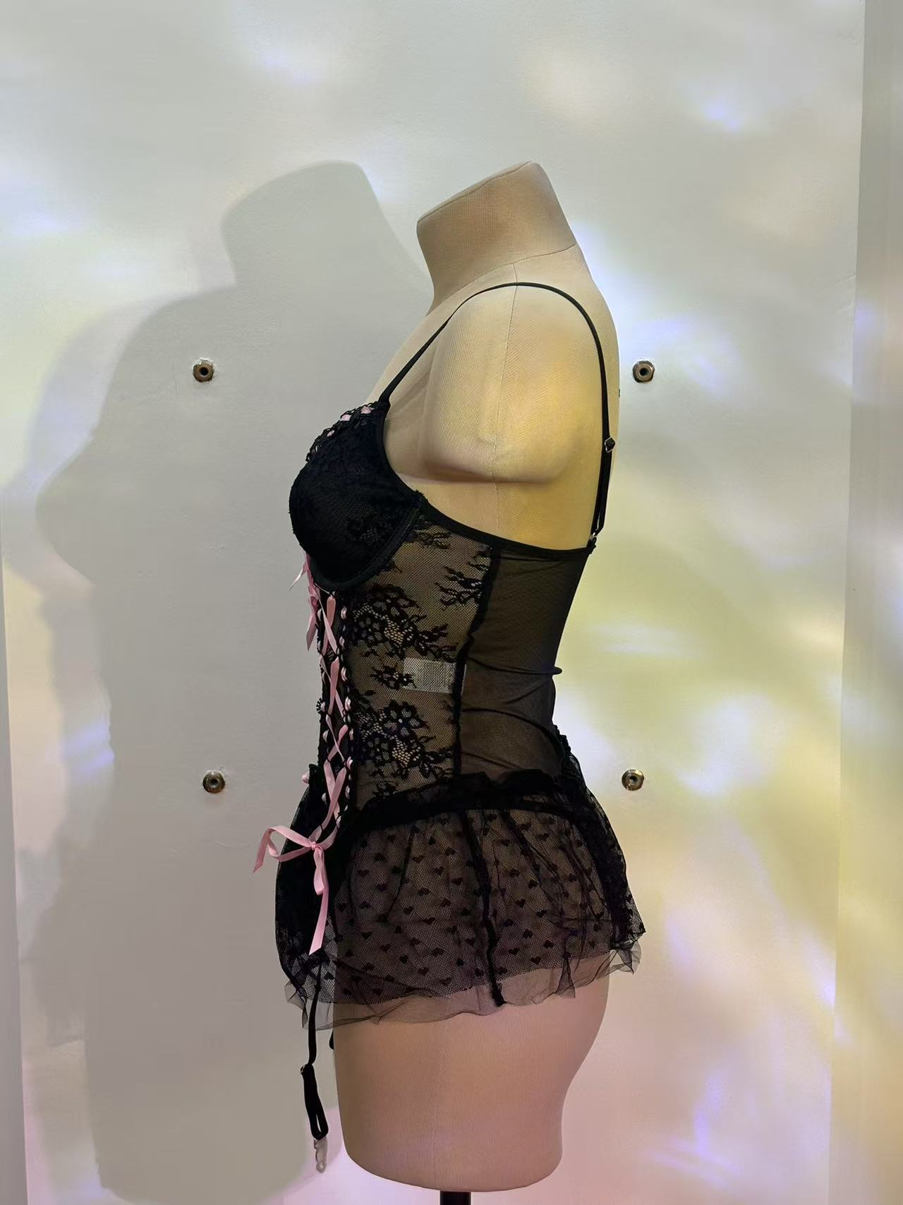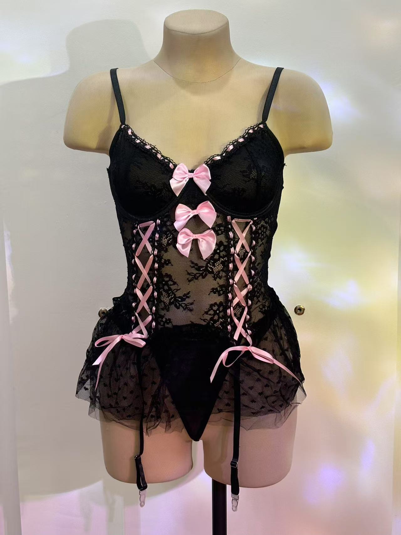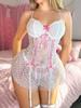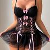 Suministro de comercio exterior europeo y americano, nuevo anillo de acero sexy, tentación, lazo de malla transparente, ropa interior sexy unida