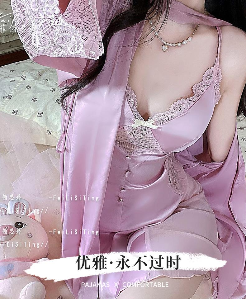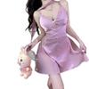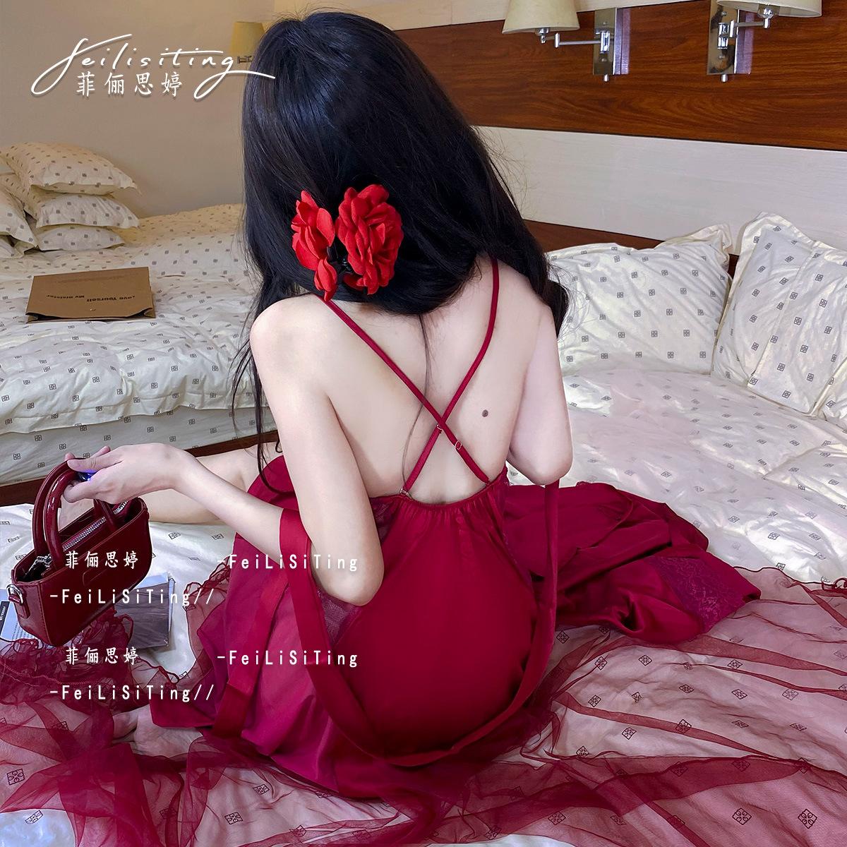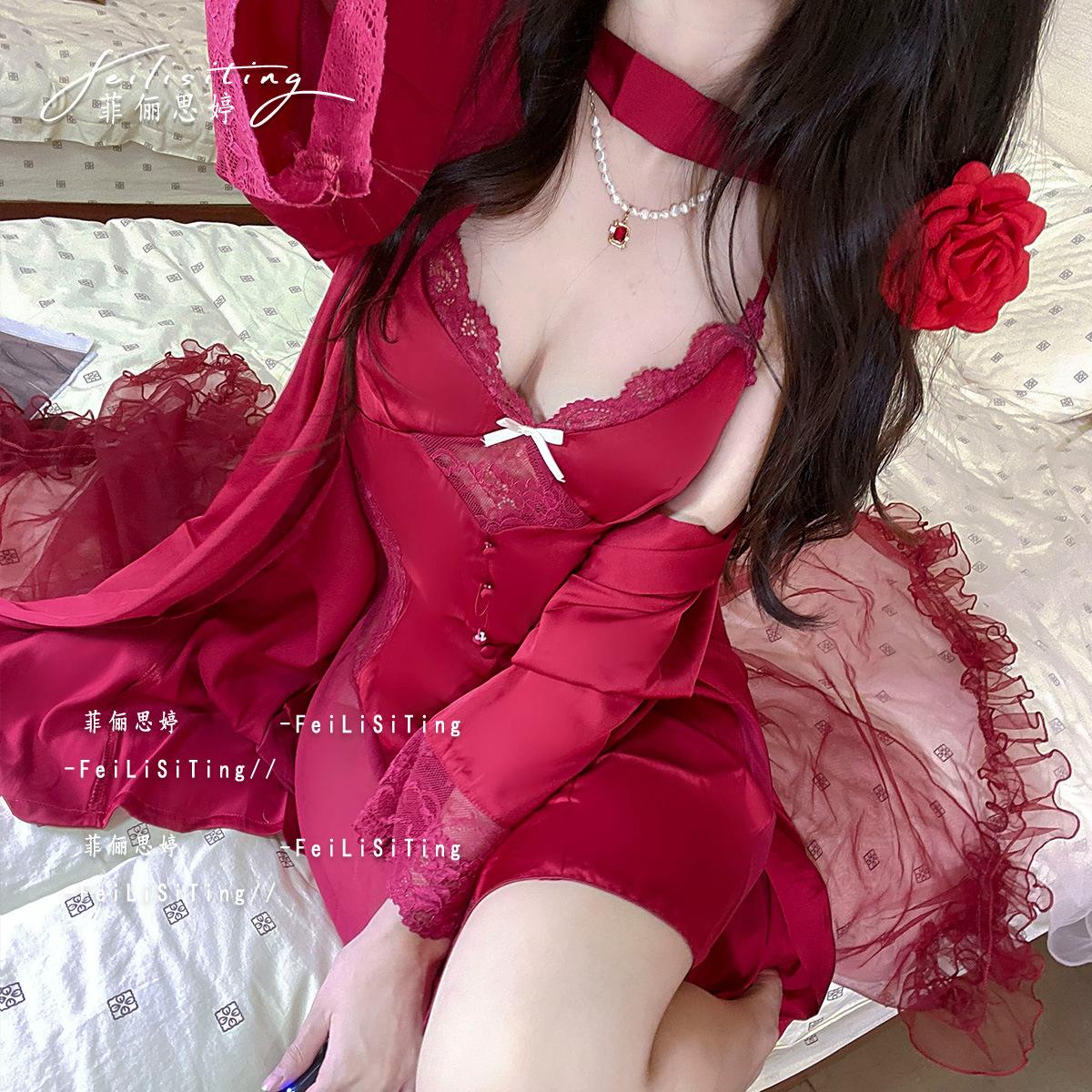 Pijama sexy de mujer con encaje negro y seda helada, camisón con tirantes finos en el pecho, Pure Desire, alta gama, verano 2024, nuevo estilo