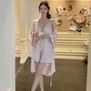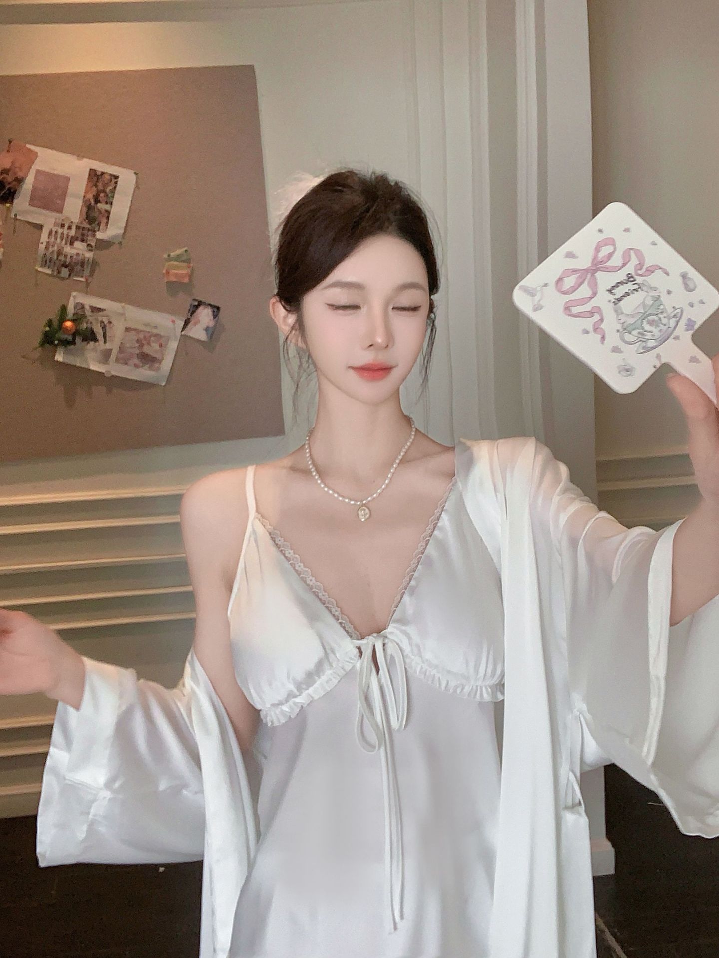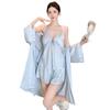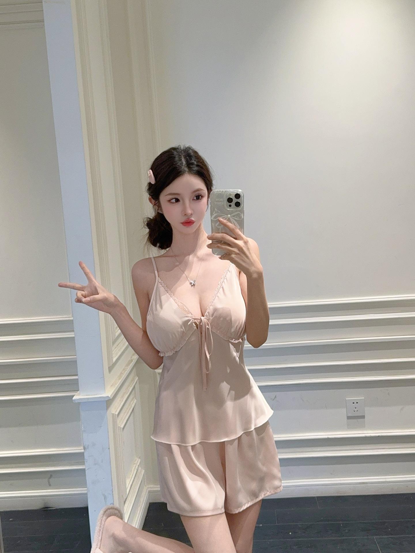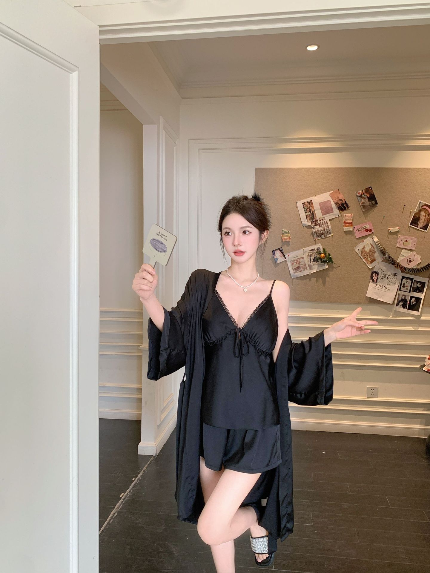 Pijama de verano sexy con escote en V y pantalones cortos con tirantes, conjunto de tres piezas para mujer, ropa de casa fresca de seda helada dulce, estilo Ins