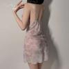 Guiruo Talla Grande Pijama Sexy para Mujer Caliente Deseo Puro Espalda Descubierta Escote Profundo en V con Almohadilla para el Busto Camisón de Gasa Conjunto para el Hogar 4903