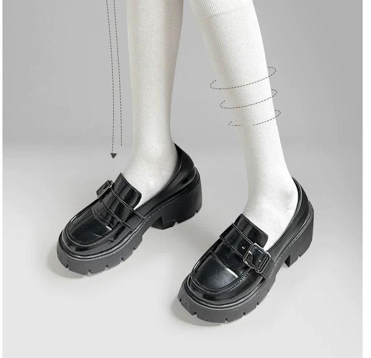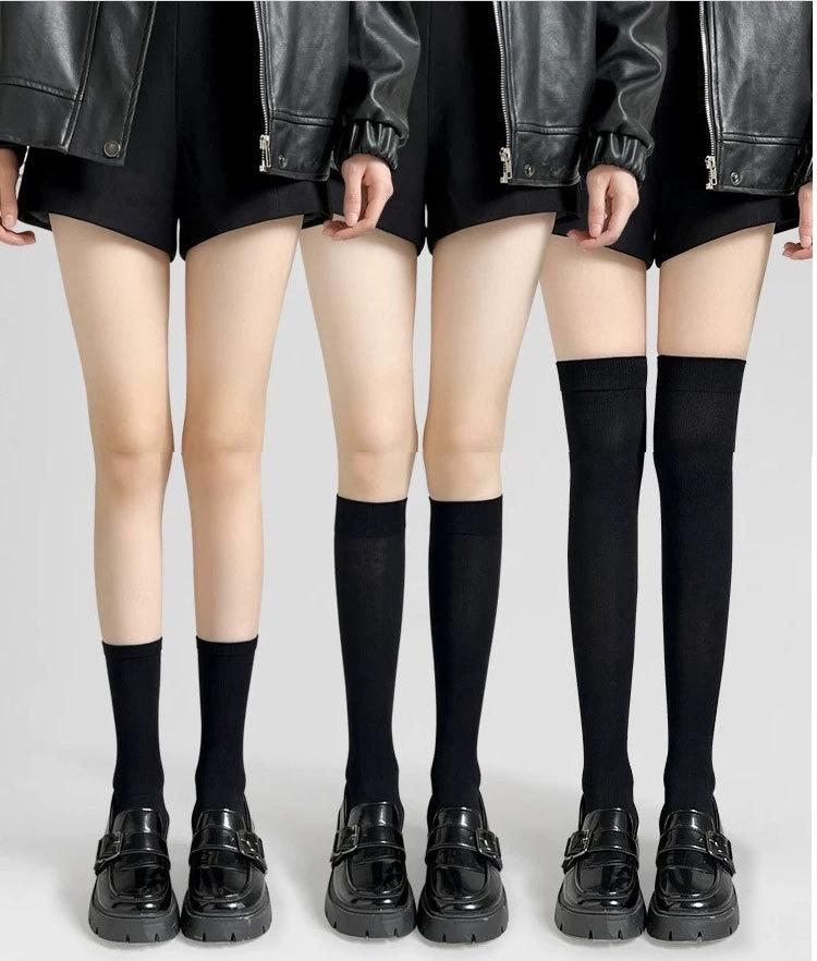 Calcetines de Presión de Pierna Skinny para Niños Primavera y Otoño Calcetines para Zapatos Algodón Negro Medias por Encima de la Rodilla JK Caña Media Alta con Zapatos de Cuero Pequeños