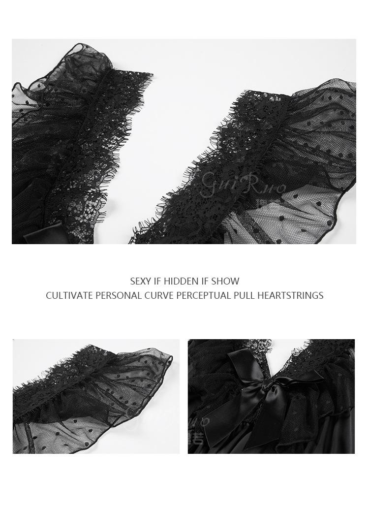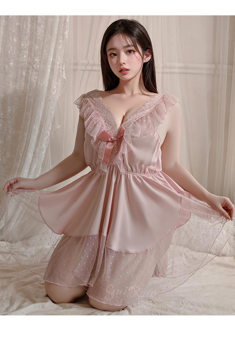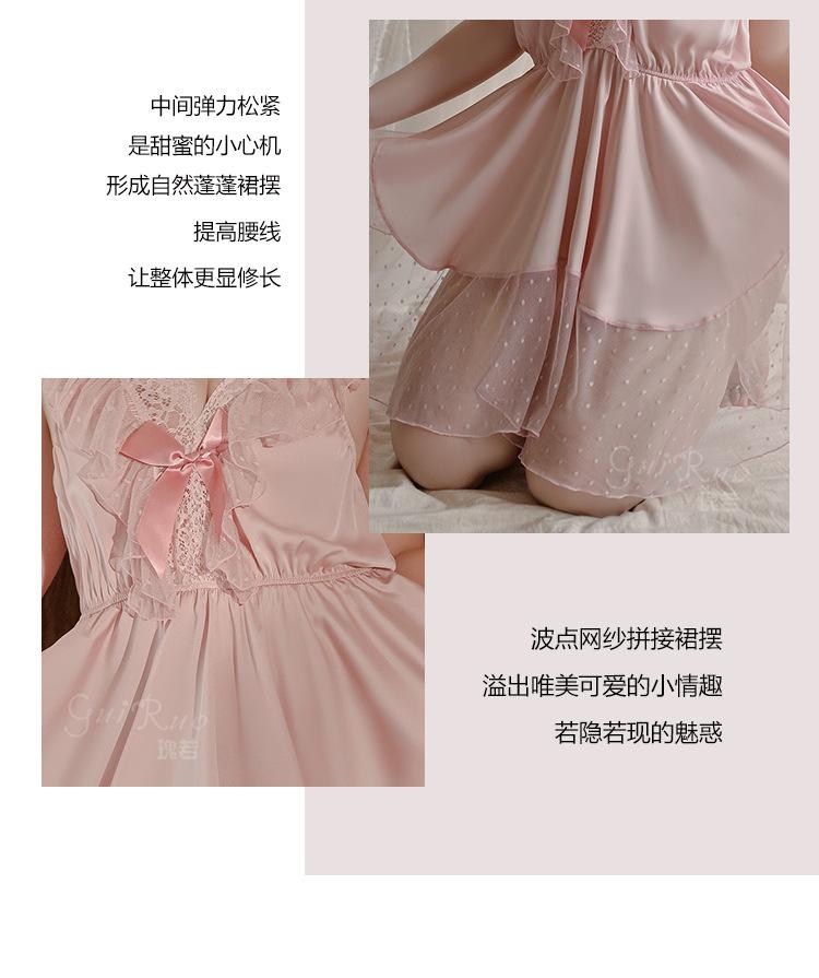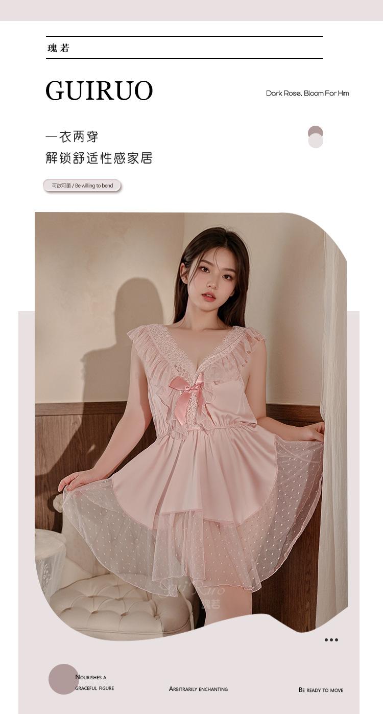 Pijama de talla grande para mujer Guiruo, puro deseo, dulce perspectiva, encaje, sexy, escote en V profundo, satén, ropa de casa, traje 730