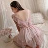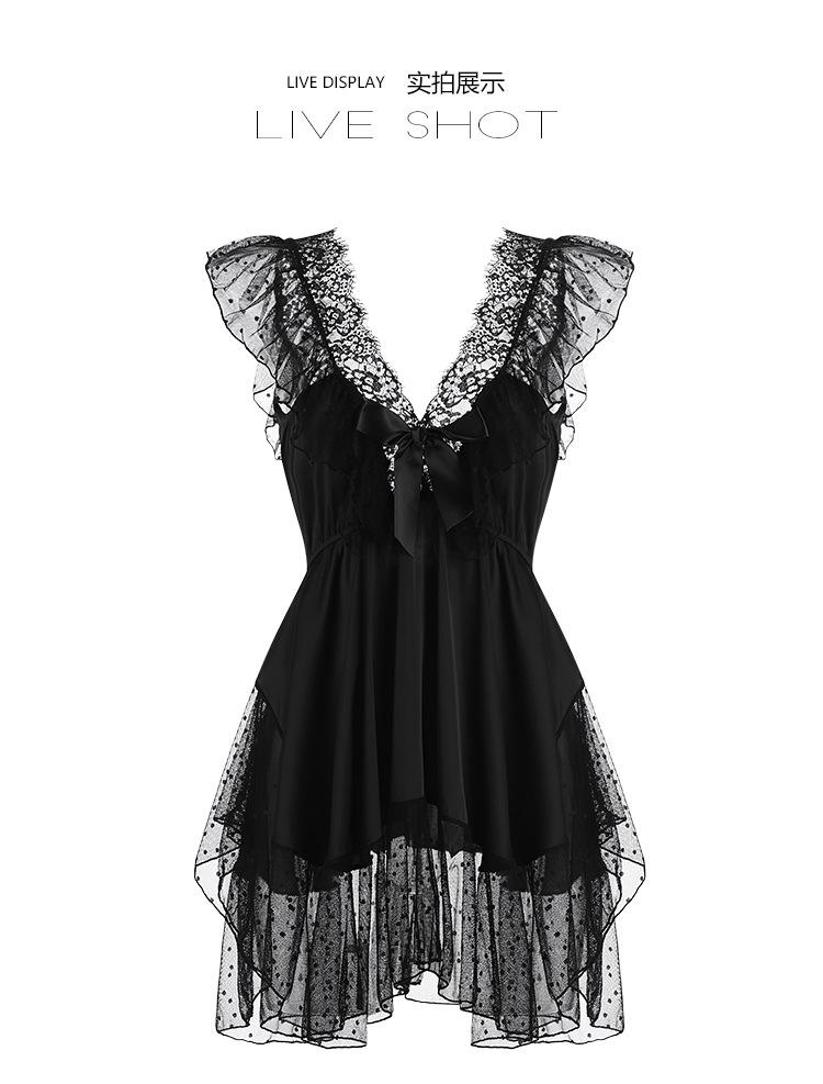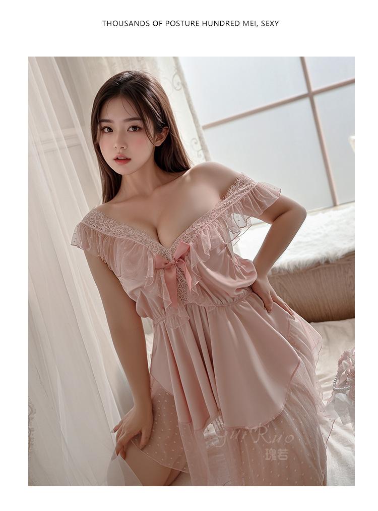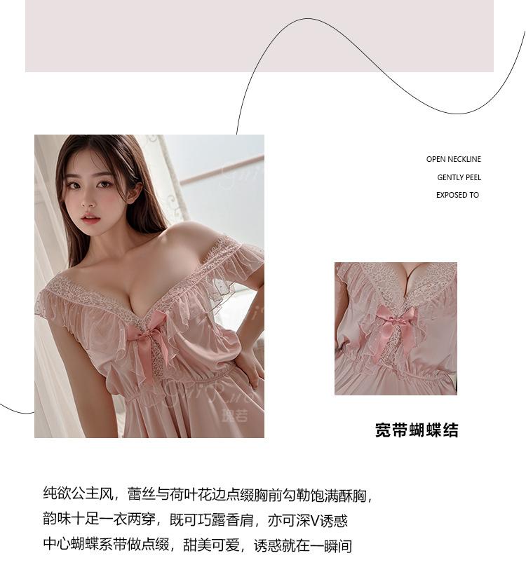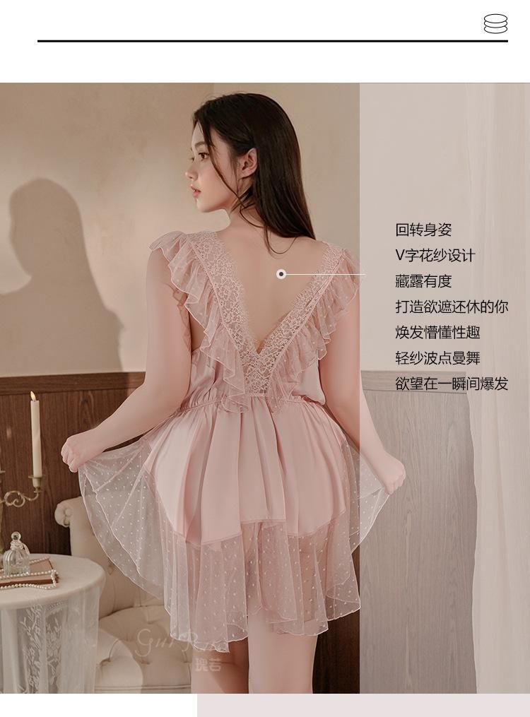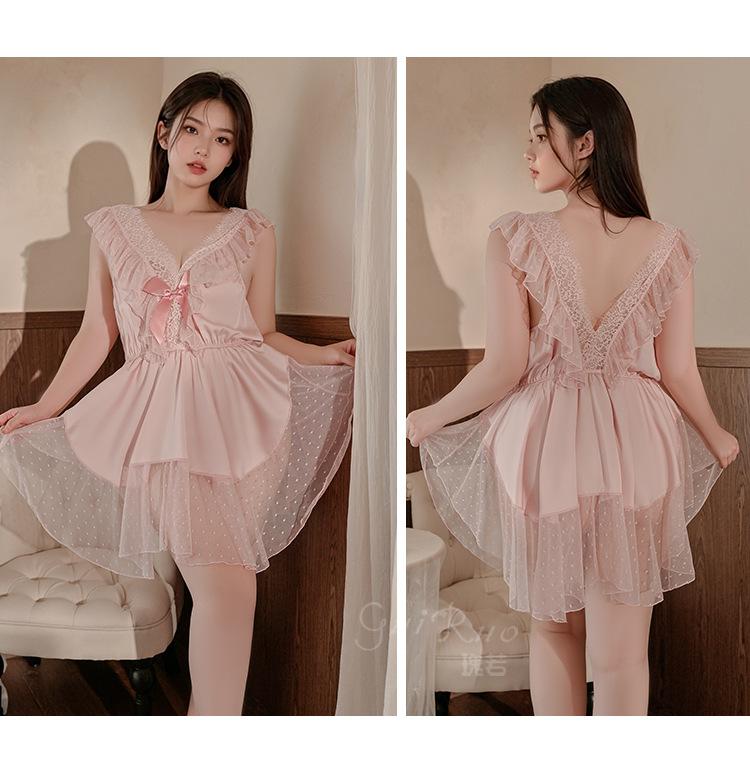 Pijama de talla grande para mujer Guiruo, puro deseo, dulce perspectiva, encaje, sexy, escote en V profundo, satén, ropa de casa, traje 730