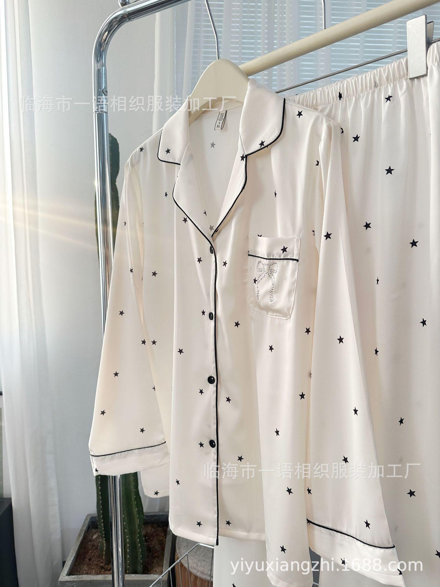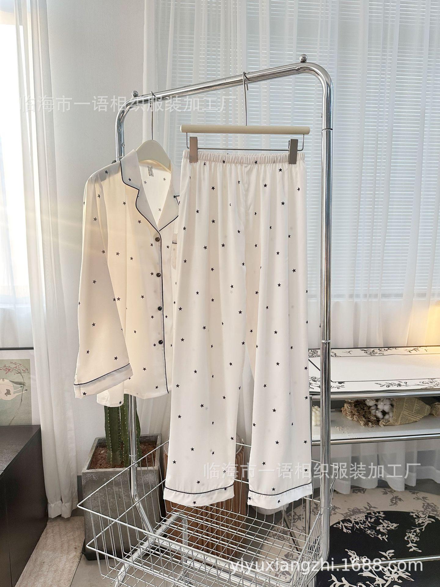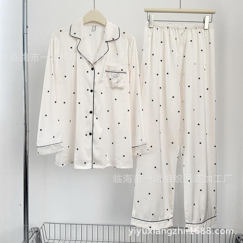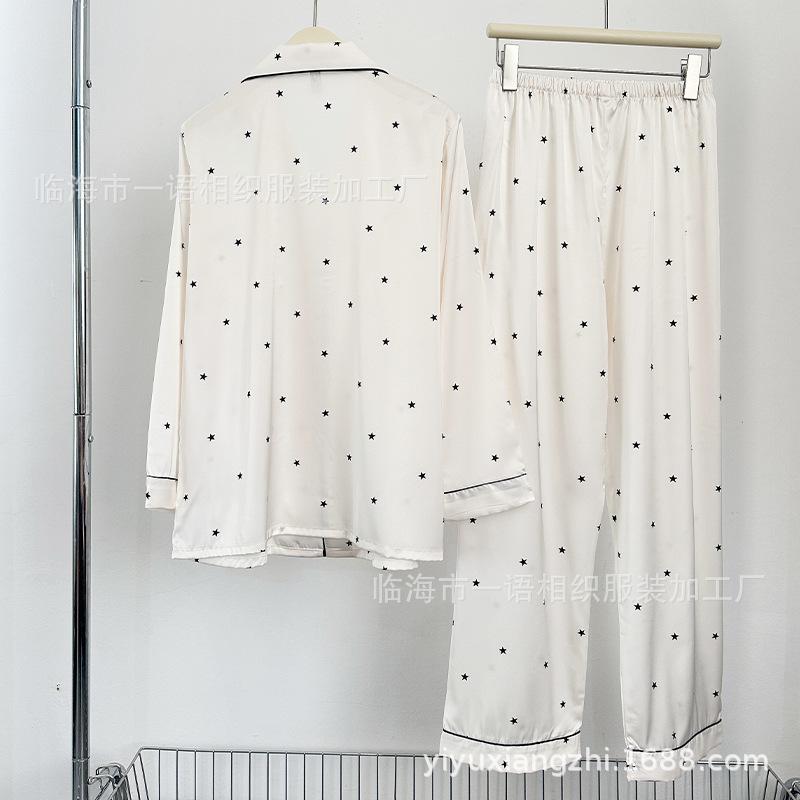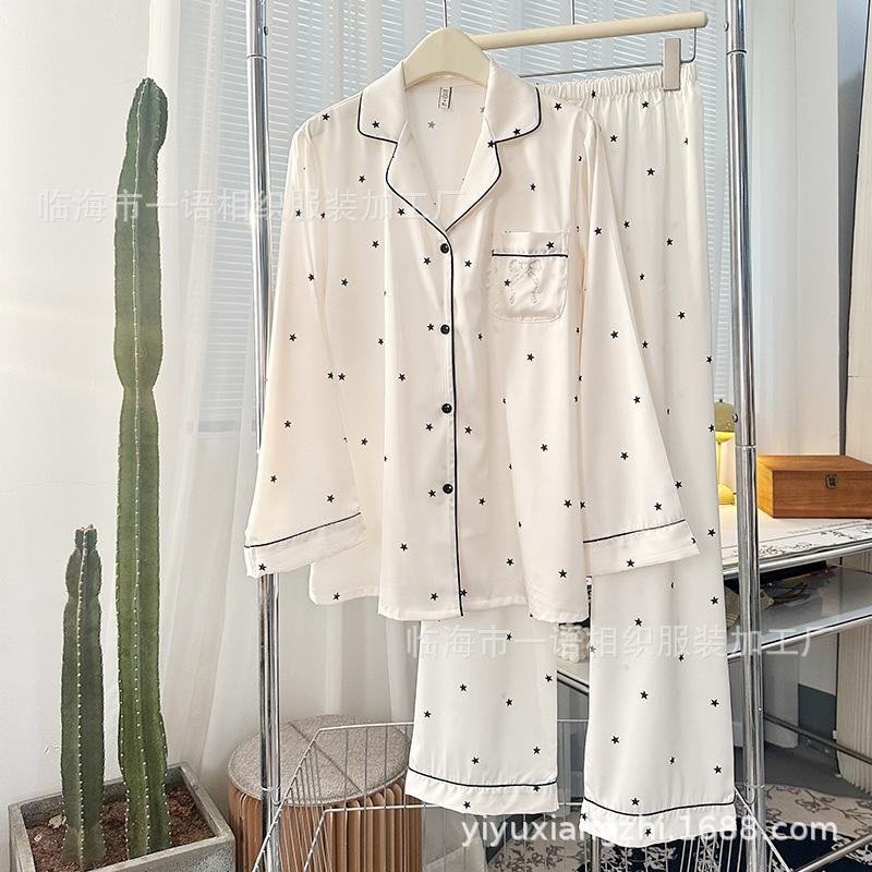 Pijamas de seda helada con estampado de estrellas de diamantes para primavera y otoño, ropa de casa fina para mujer
