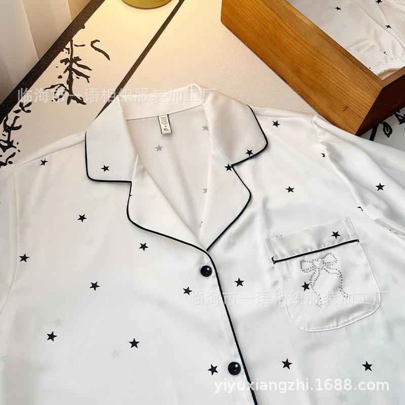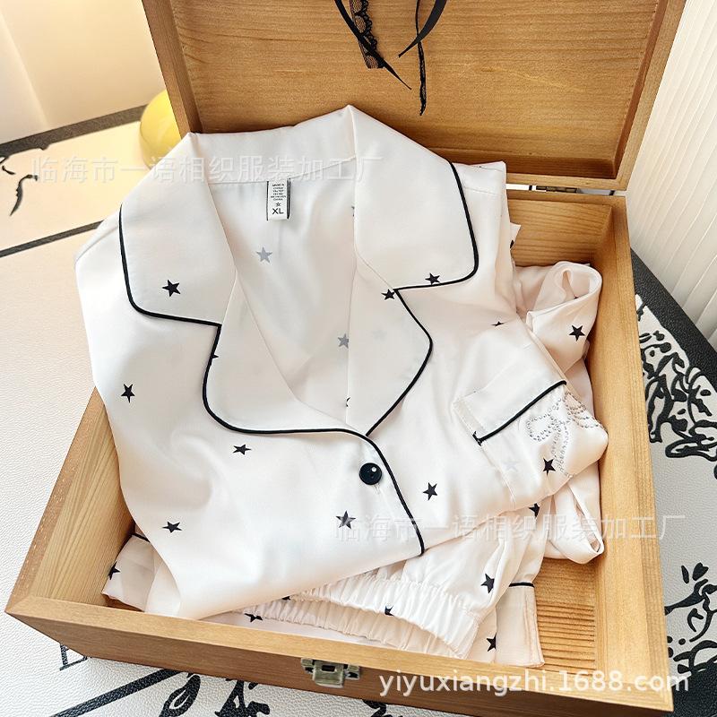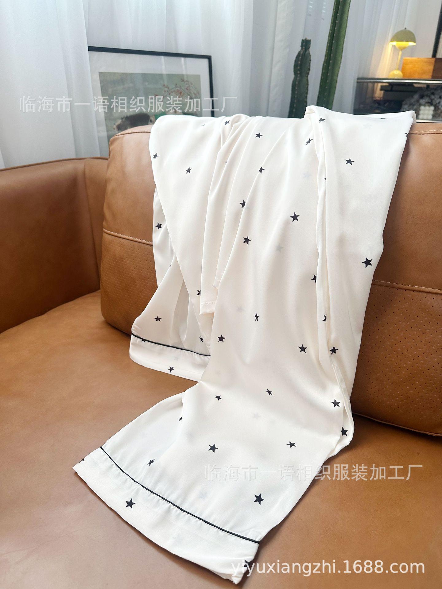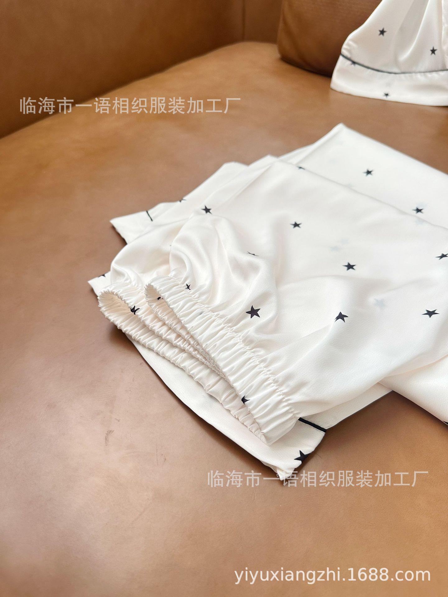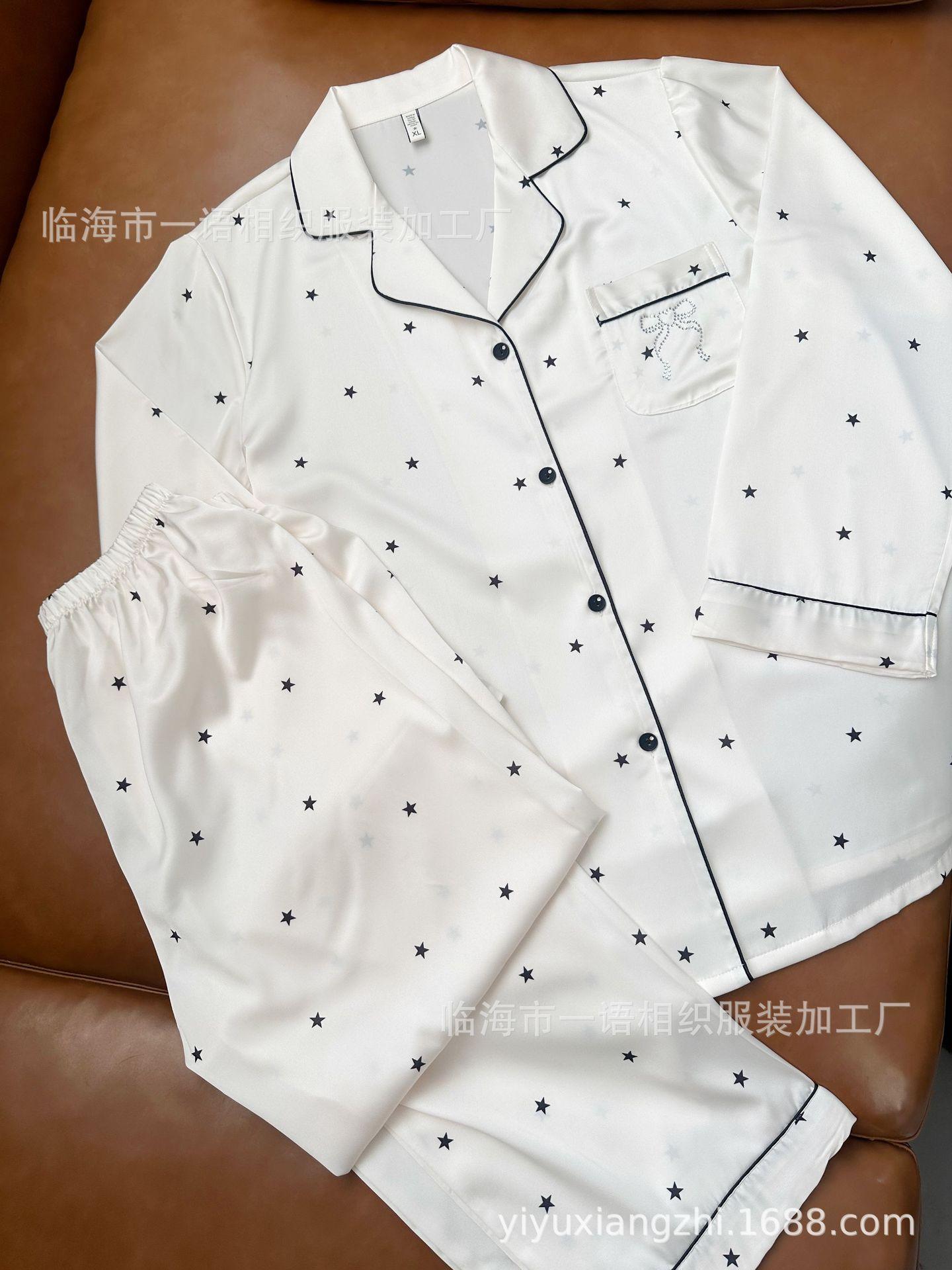 Pijamas de seda helada con estampado de estrellas de diamantes para primavera y otoño, ropa de casa fina para mujer