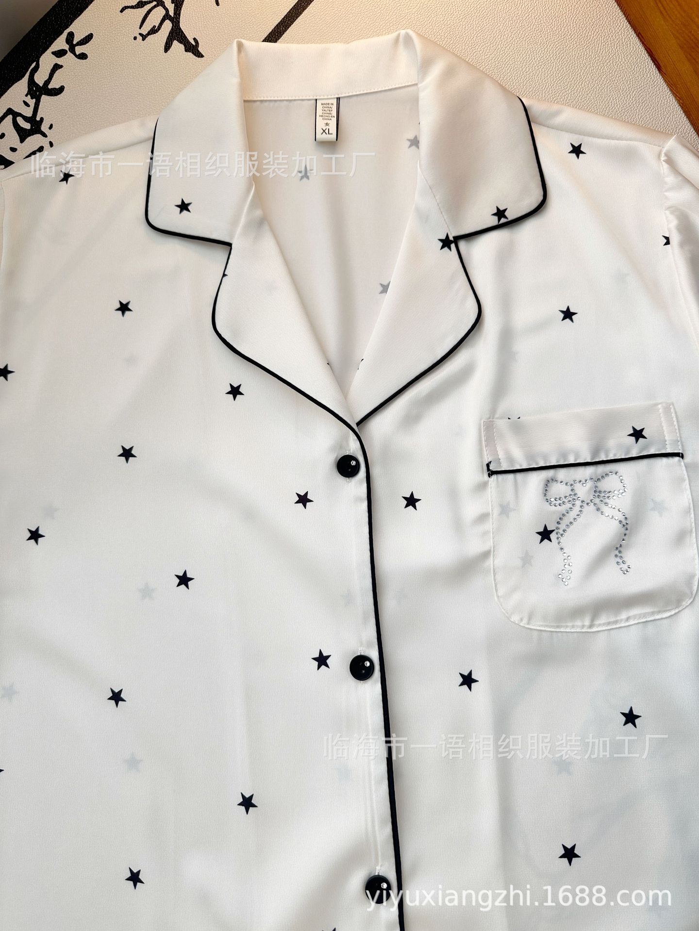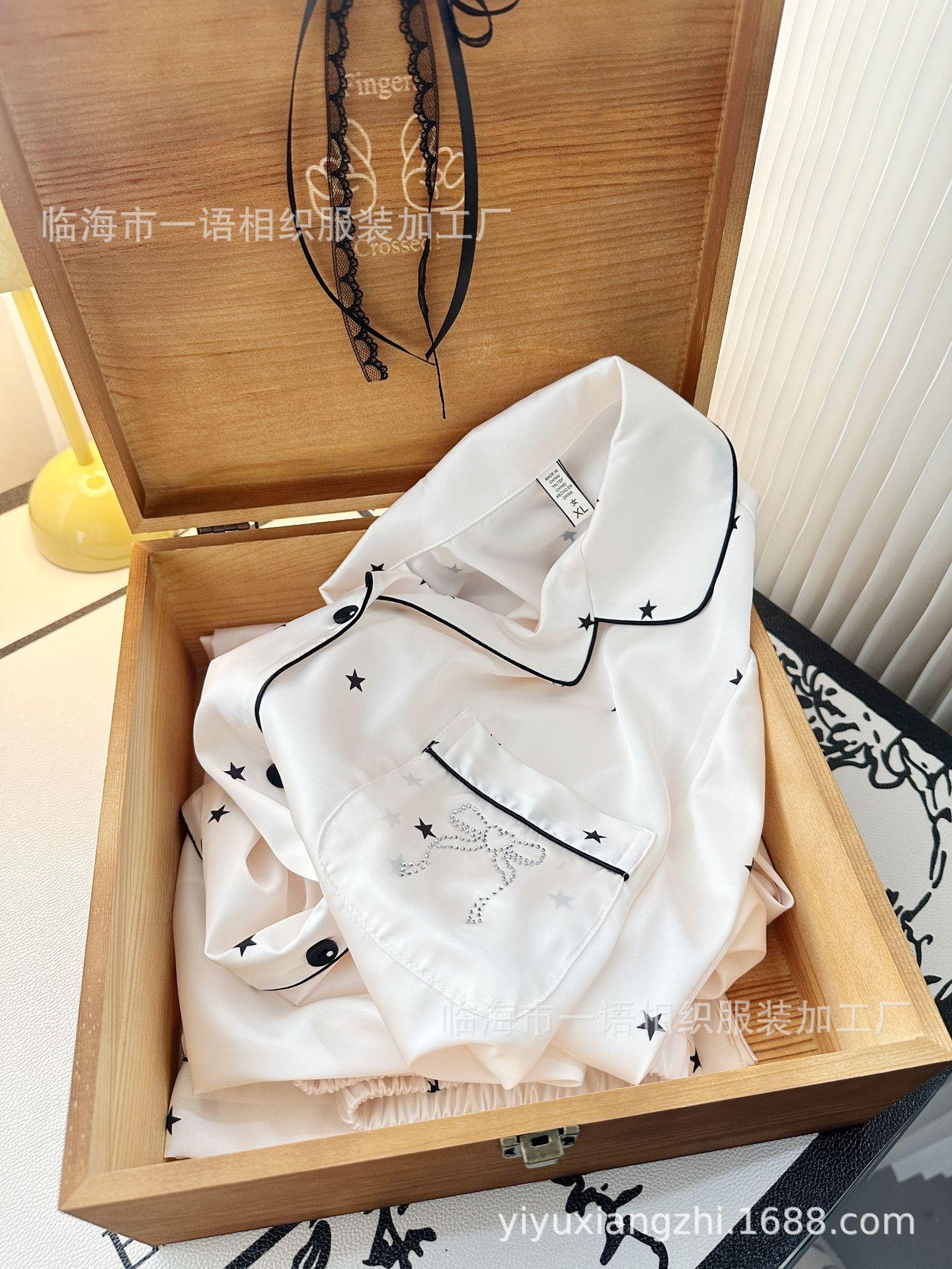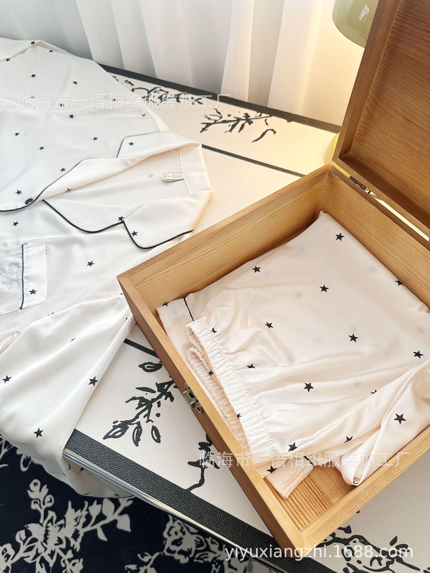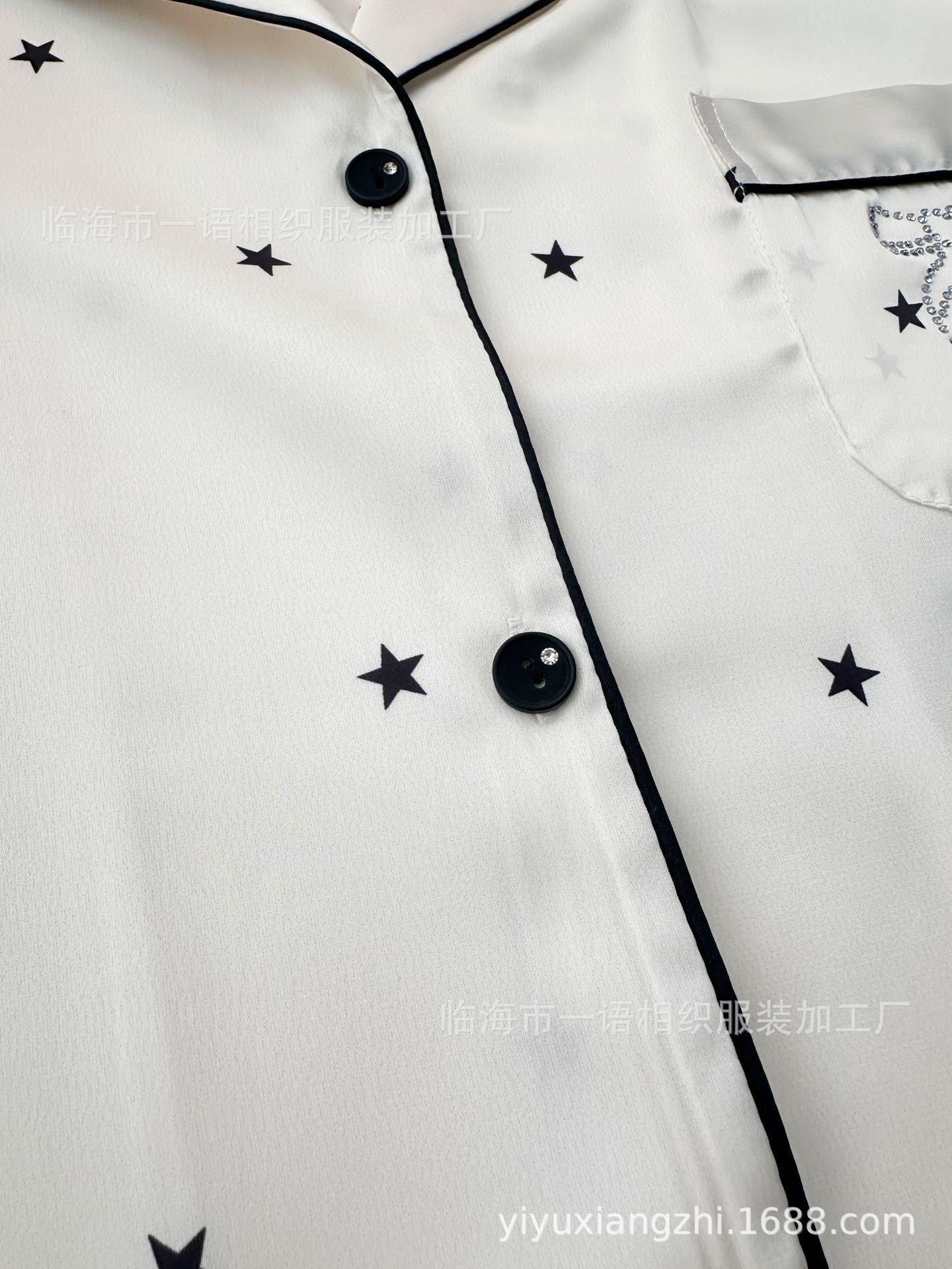 Pijamas de seda helada con estampado de estrellas de diamantes para primavera y otoño, ropa de casa fina para mujer