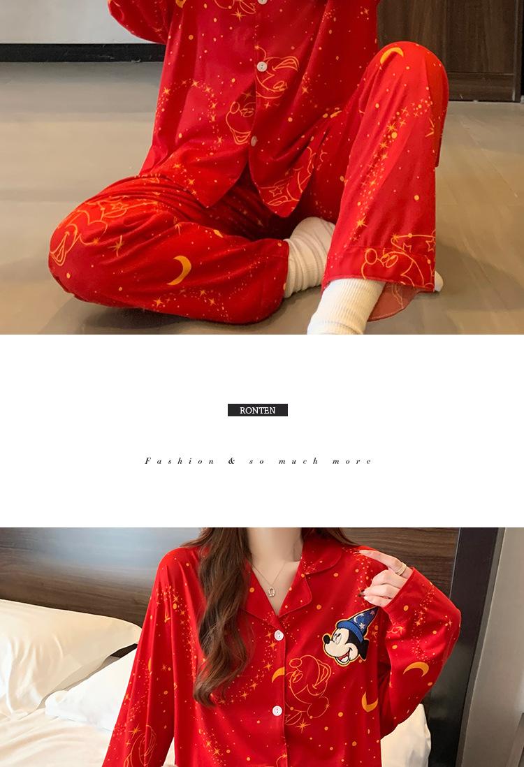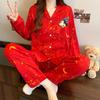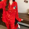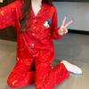 Pijama Japonés Cielo Estrellado Rojo Lindo Imitación Algodón para Mujer Primavera Traje Manga Larga Año Nuevo Año del Animal Ropa de Casa Venta al Mayoreo