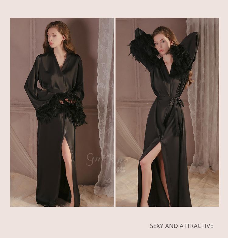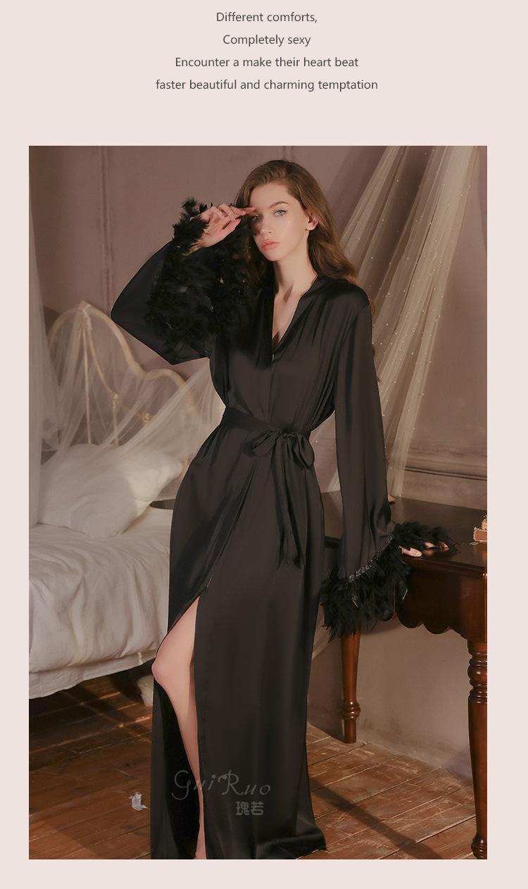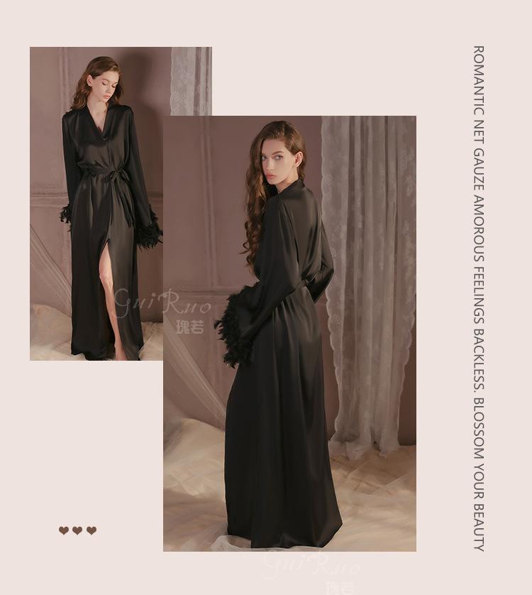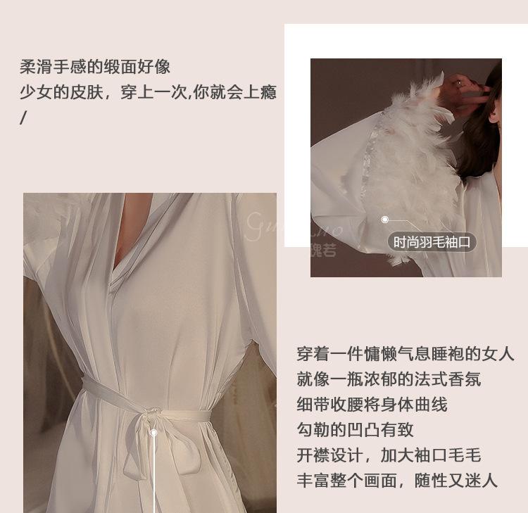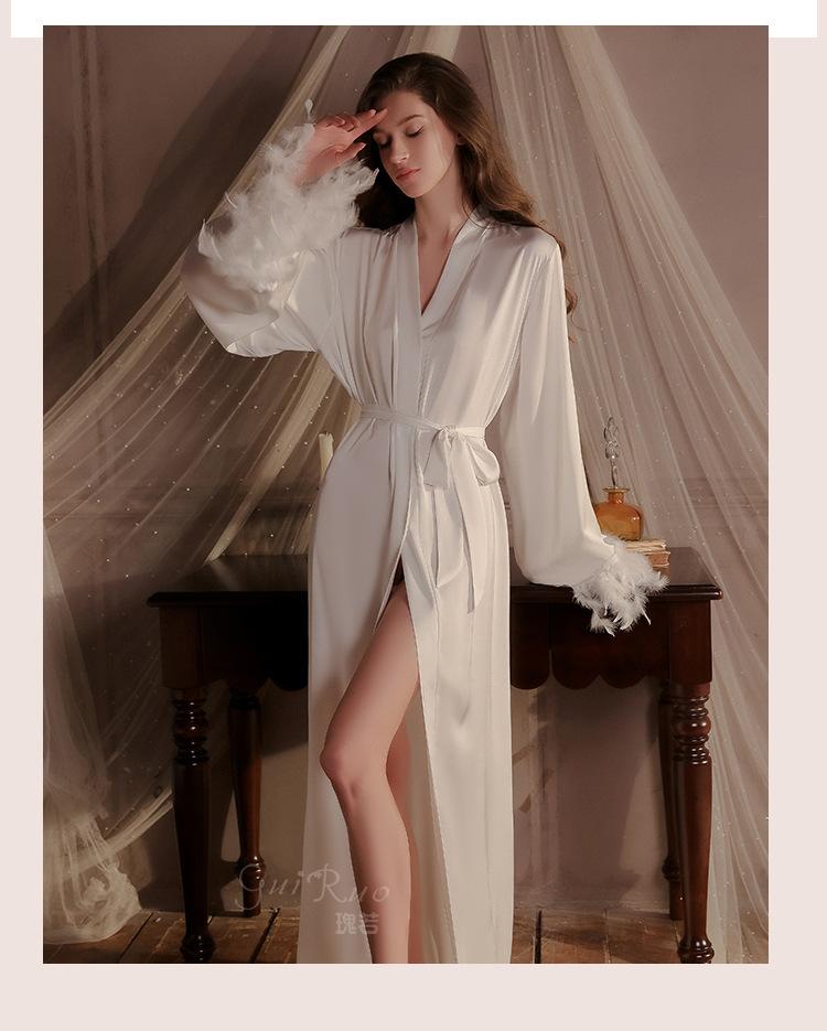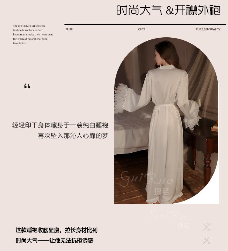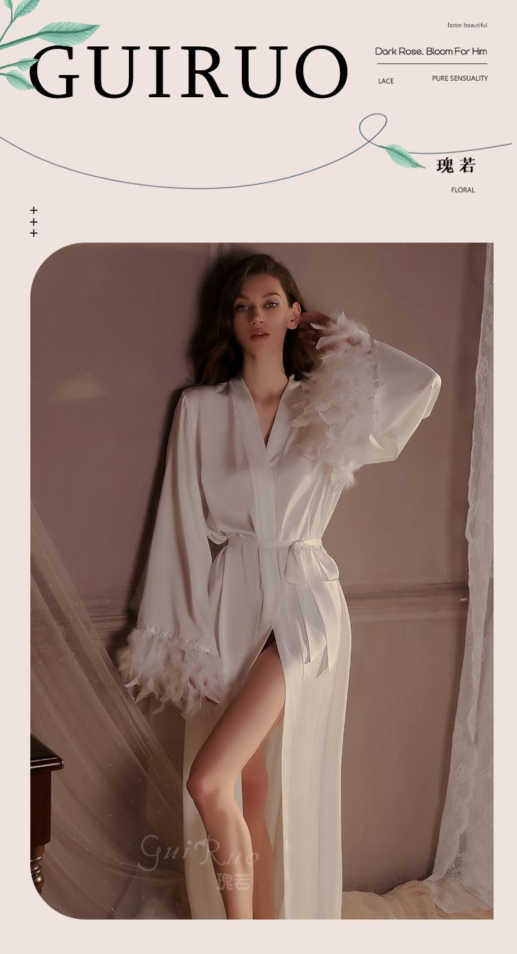 Ropa interior de la marca Guiruo pura tentación sexy cárdigan simple encaje bata larga traje de casa para damas 4991