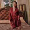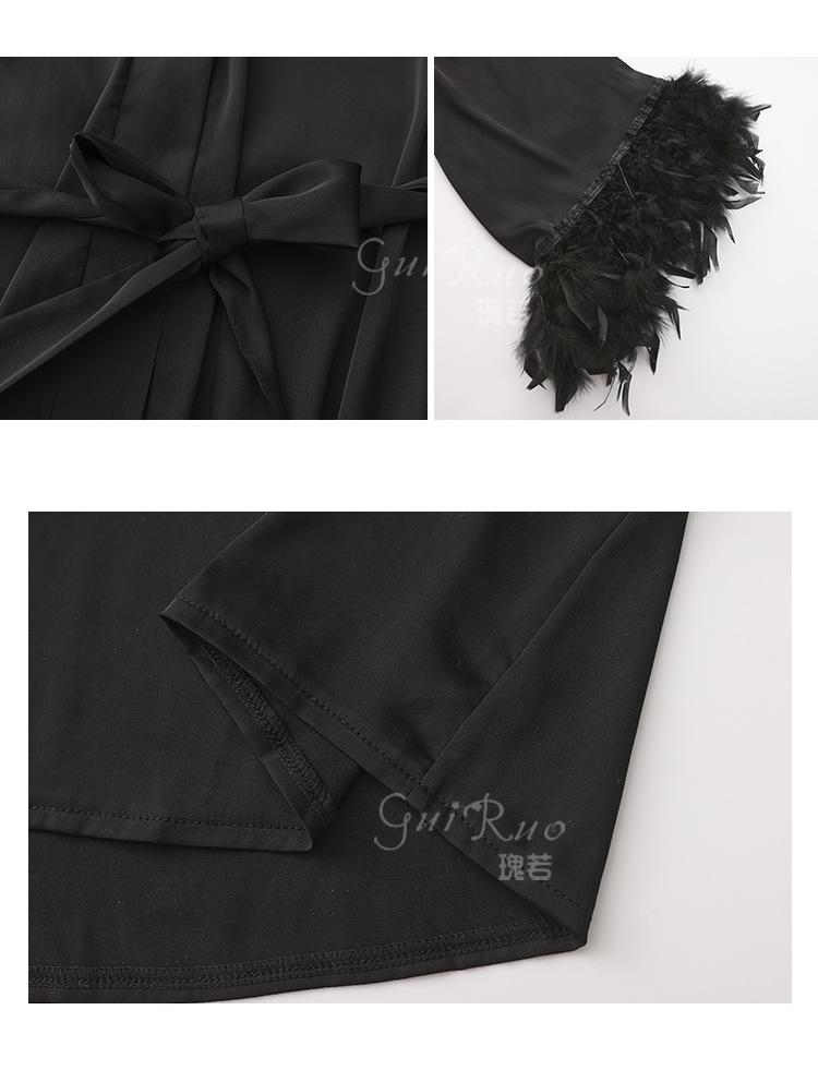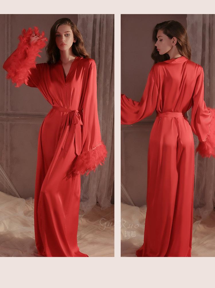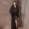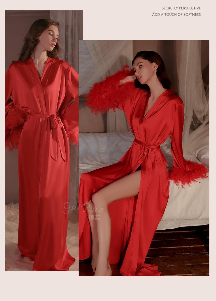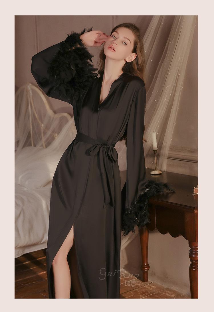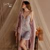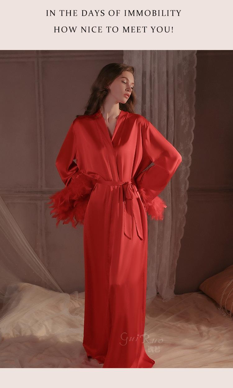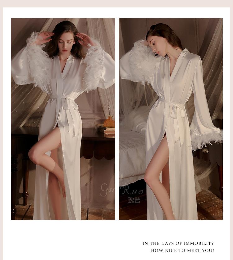 Ropa interior de la marca Guiruo pura tentación sexy cárdigan simple encaje bata larga traje de casa para damas 4991