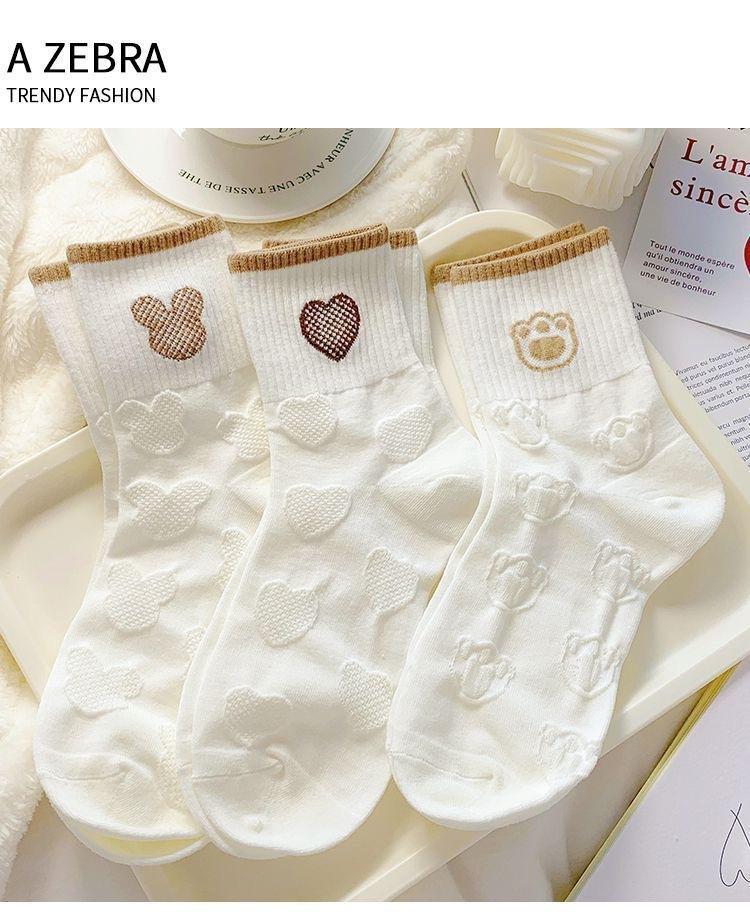 Calcetines Blancos Finos de Verano para Mujer Calcetines de Media Caña de Dibujos Animados Ins Trendy de Alto Valor Estilo Universitario Coreano Combinan con Todo Transpirables