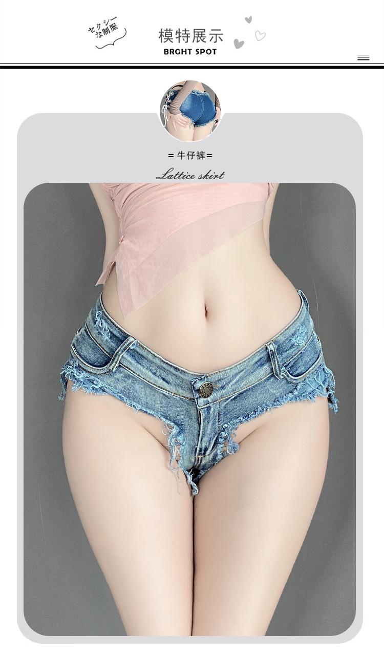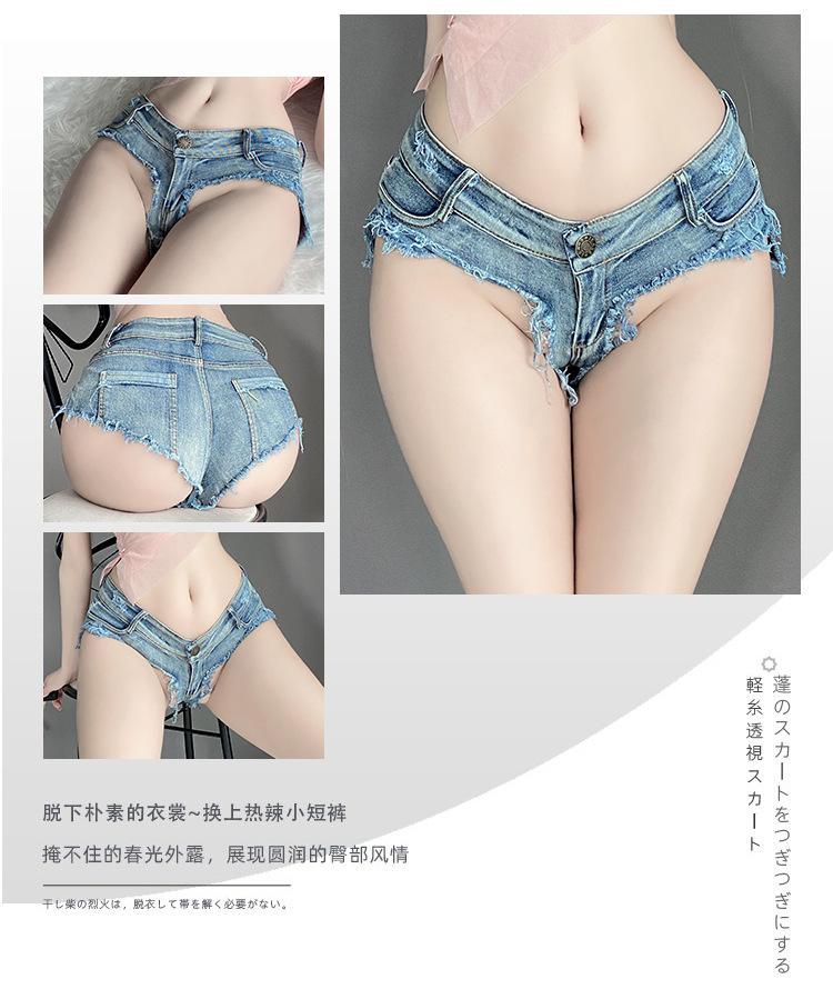 Sexy Jeans de Mezclilla Rotos de Cintura Baja con Entrepierna Abierta Pantalones Cortos Hot para Club Nocturno Chica Caliente Cita Tentación Shorts Dropshipping 8028