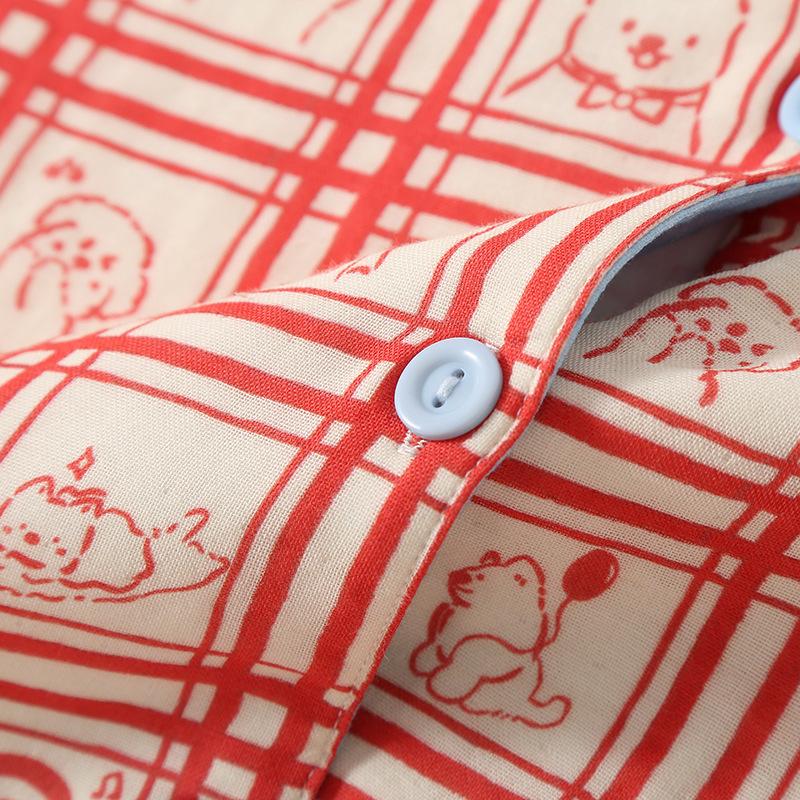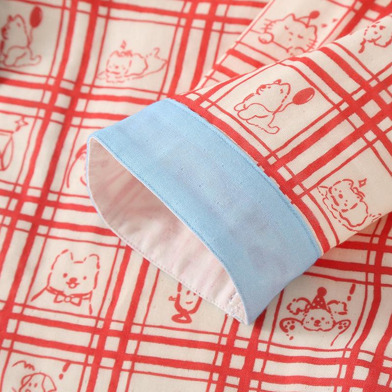 Pijama de gasa de algodón de tres capas de animales de línea nueva para mujer de primavera y otoño e invierno de manga larga de algodón se puede usar fuera ropa de casa