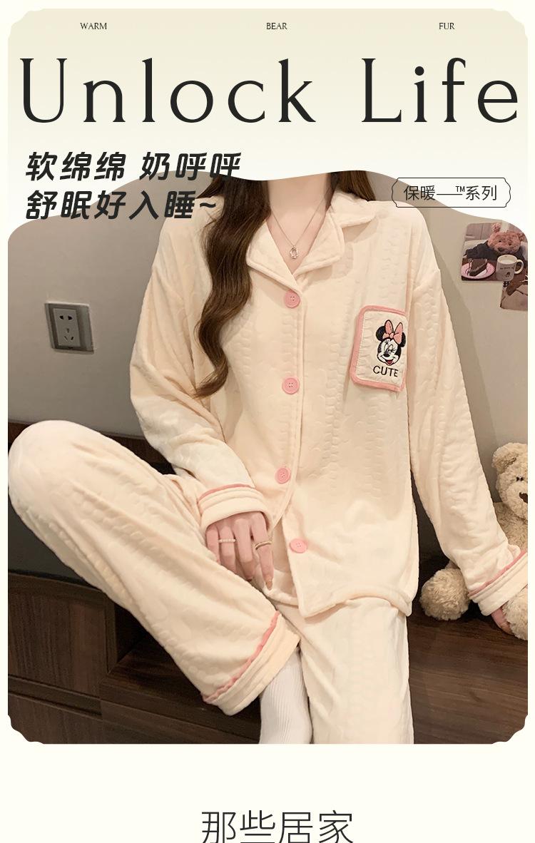 Pijamas de terciopelo de isla para otoño e invierno, bonitos dibujos de Minnie para niñas, conjunto de invierno grueso, ropa para el hogar, traje al por mayor