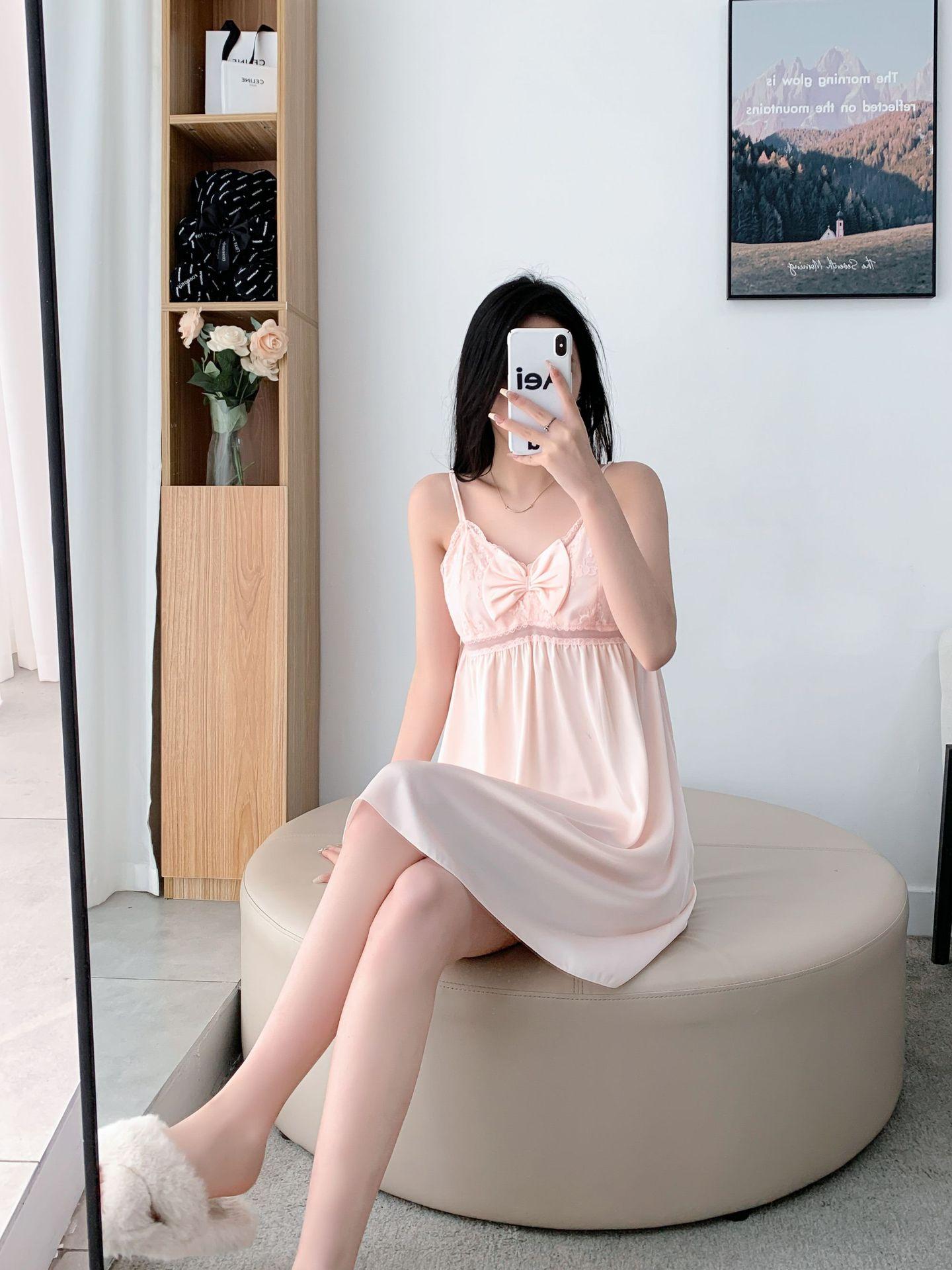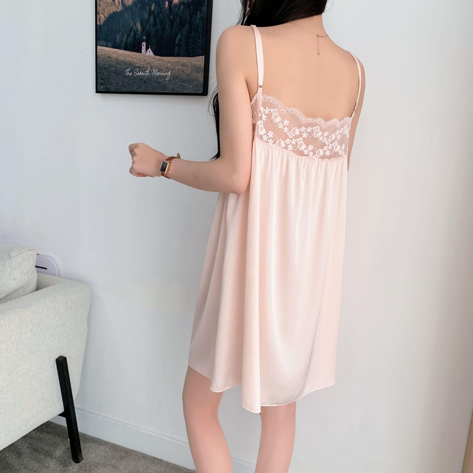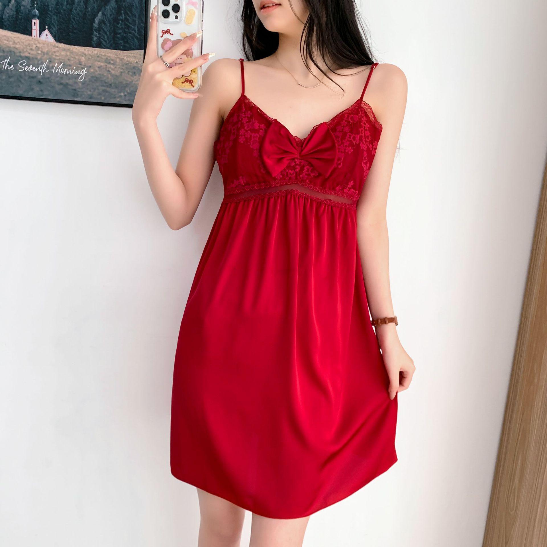 Nuevo estilo Pure Desire, camisón sexy con cinturón y almohadilla para el pecho, pijama de verano para mujer con lazo de encaje