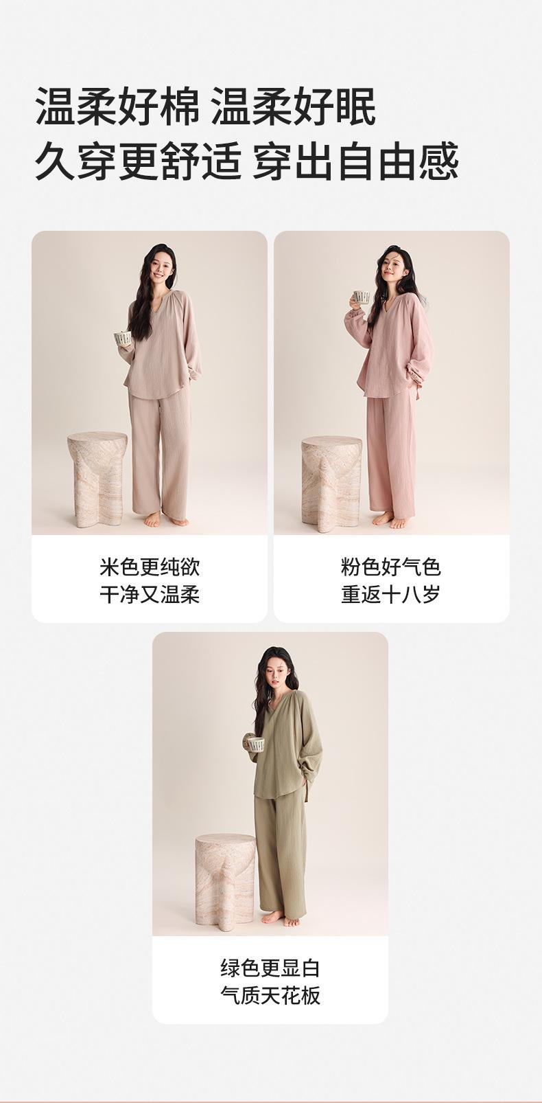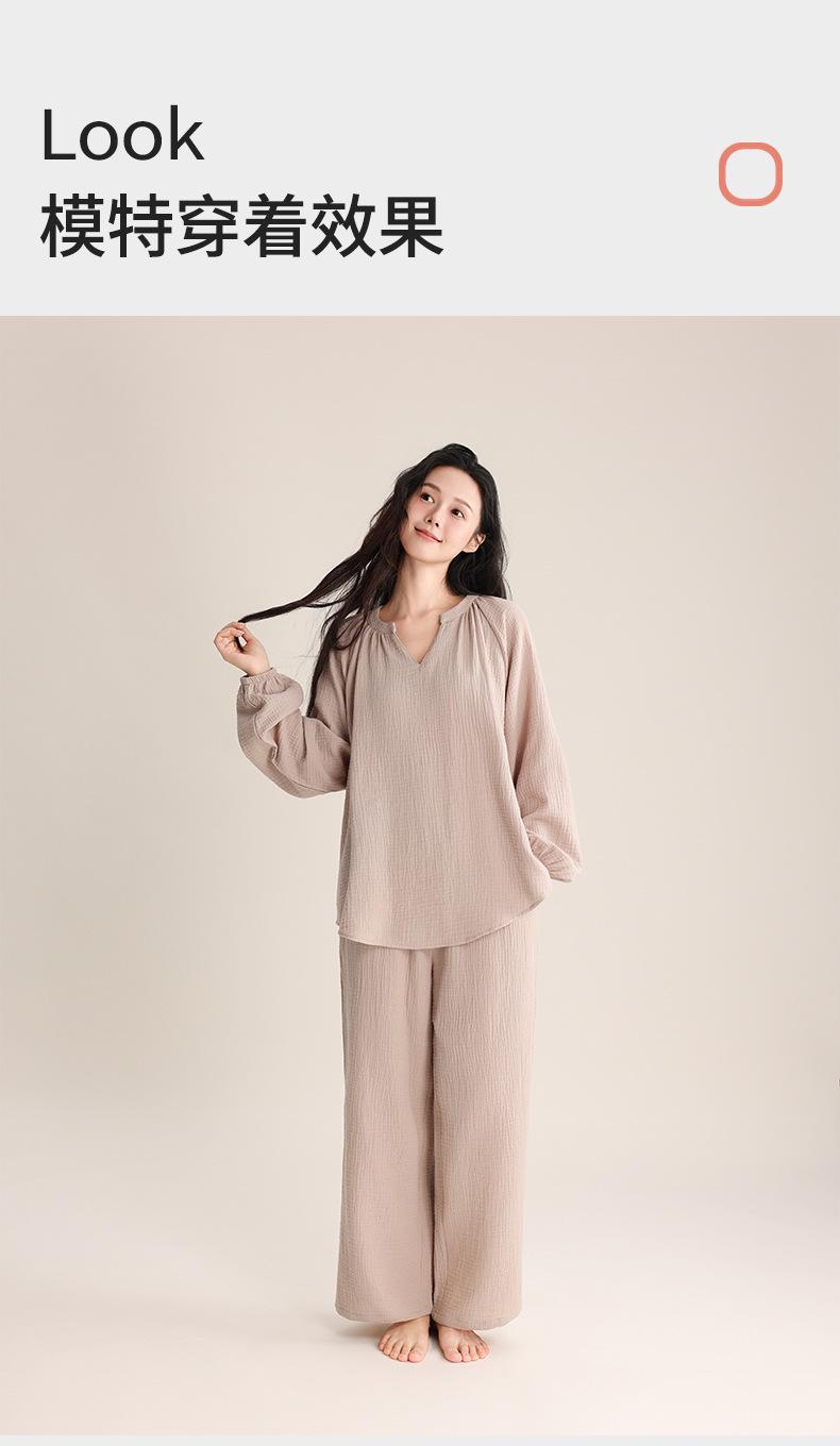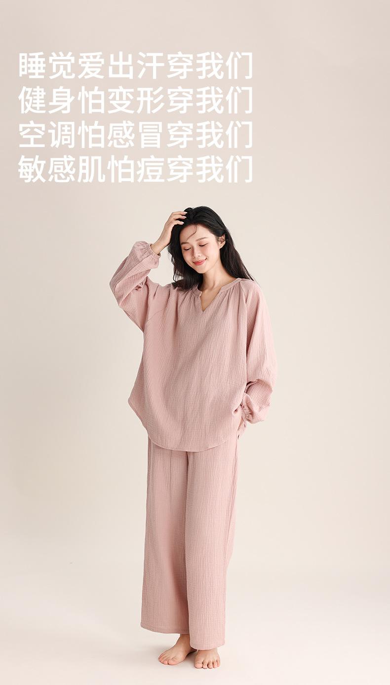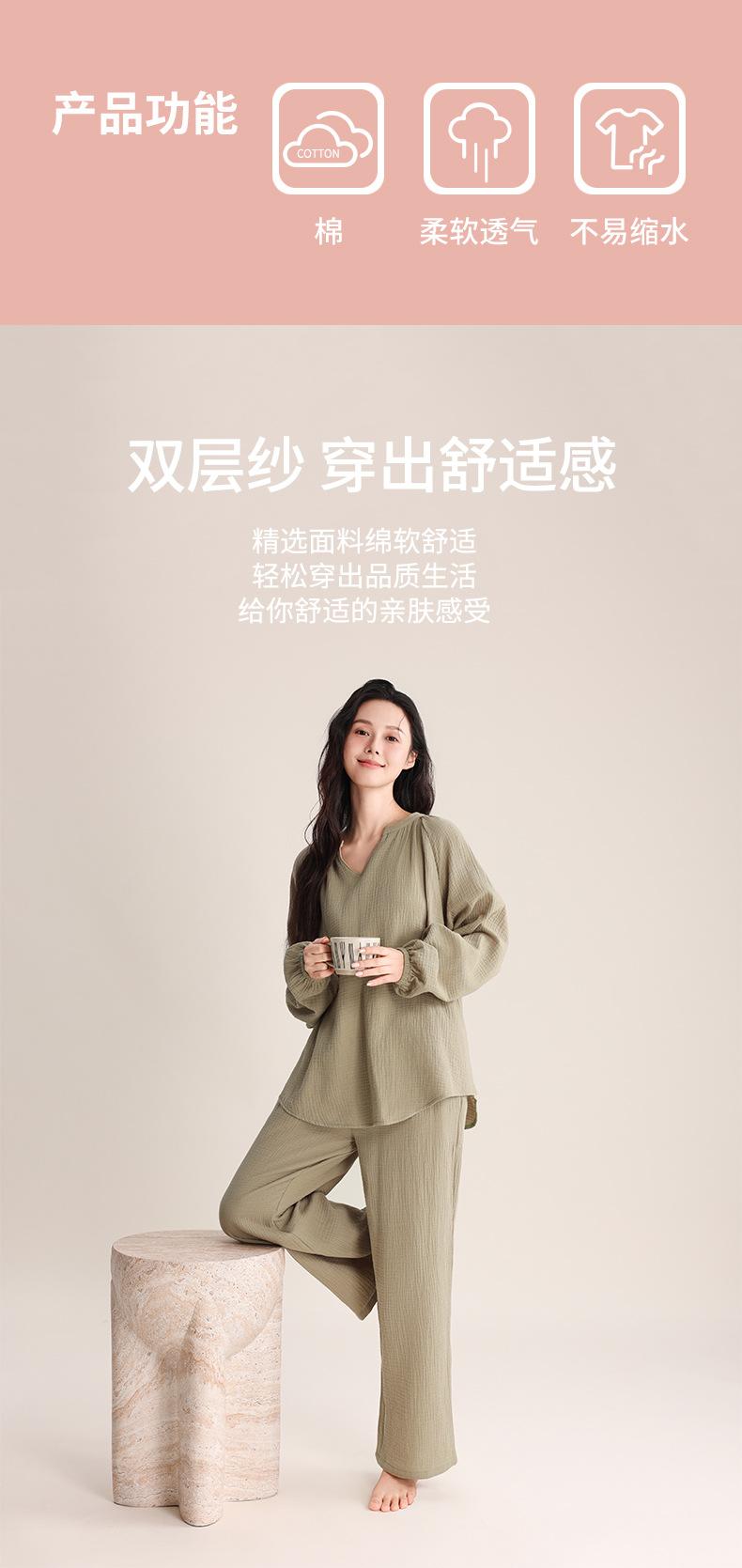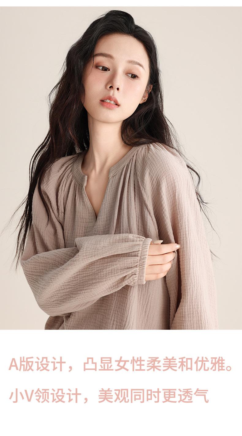 Pijama de Hilo de Doble Capa para Mujer de Primavera y Verano, Delgado, Cuello en V, Jersey, Sencillo, Elegante, Suelto, Algodón, Ropa para el Hogar, Traje