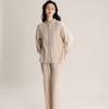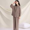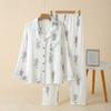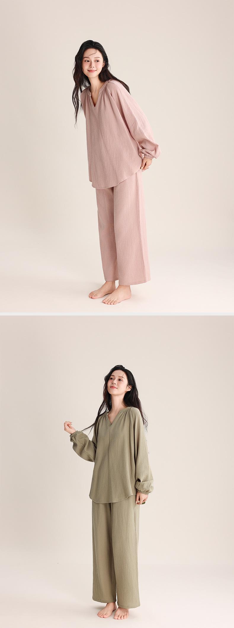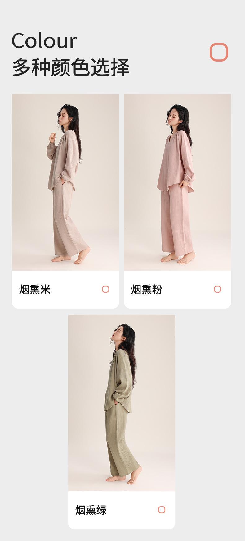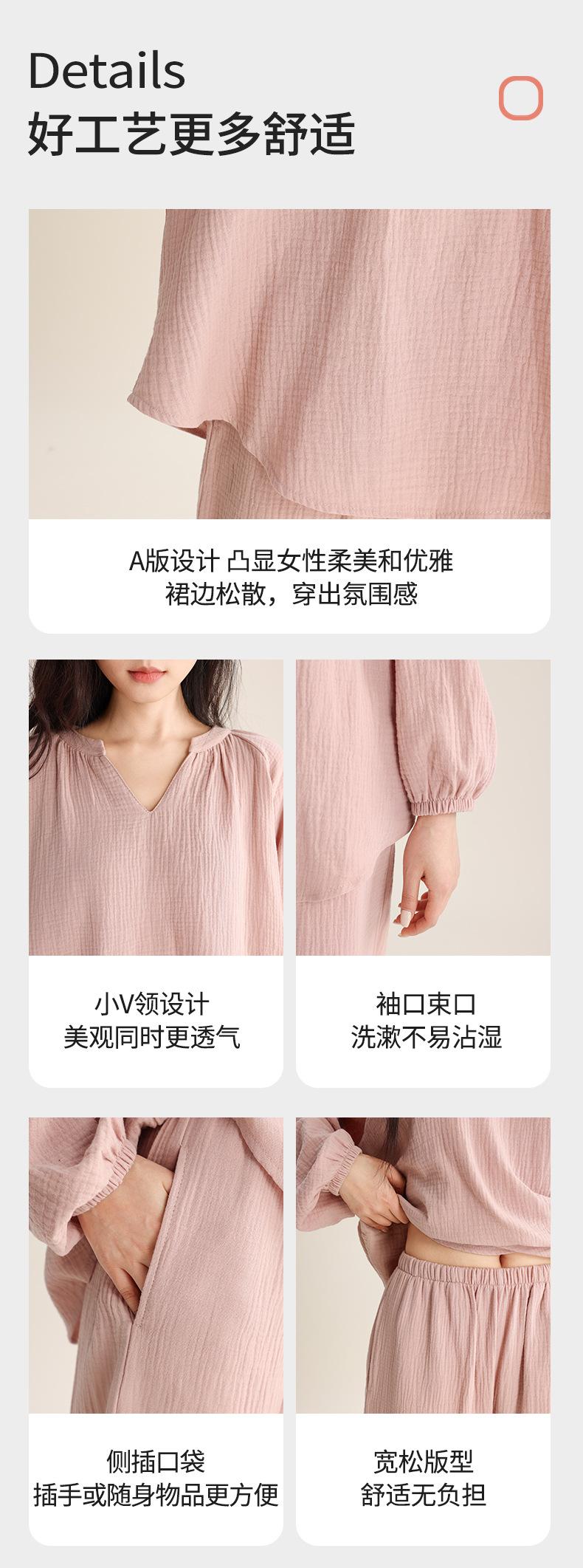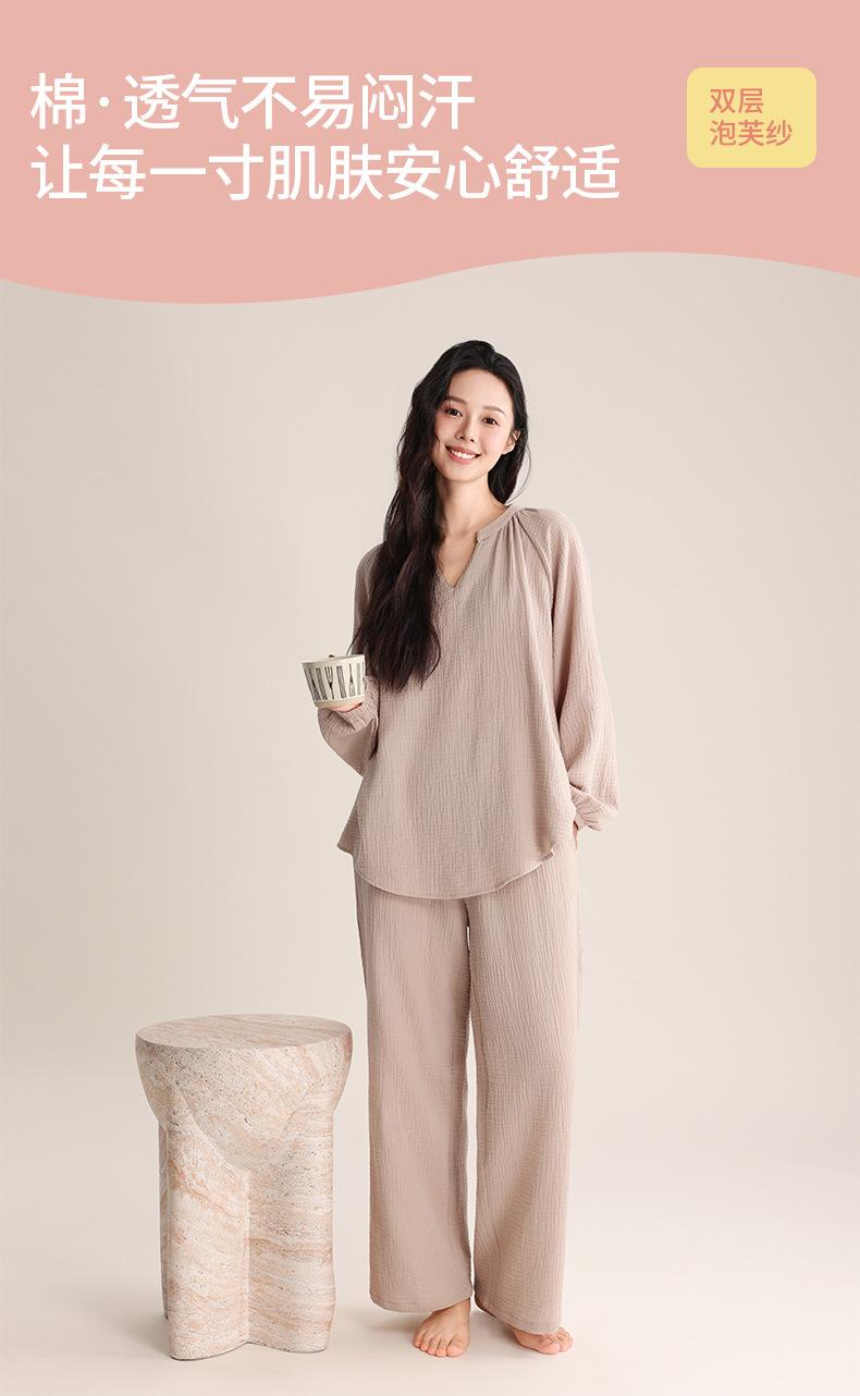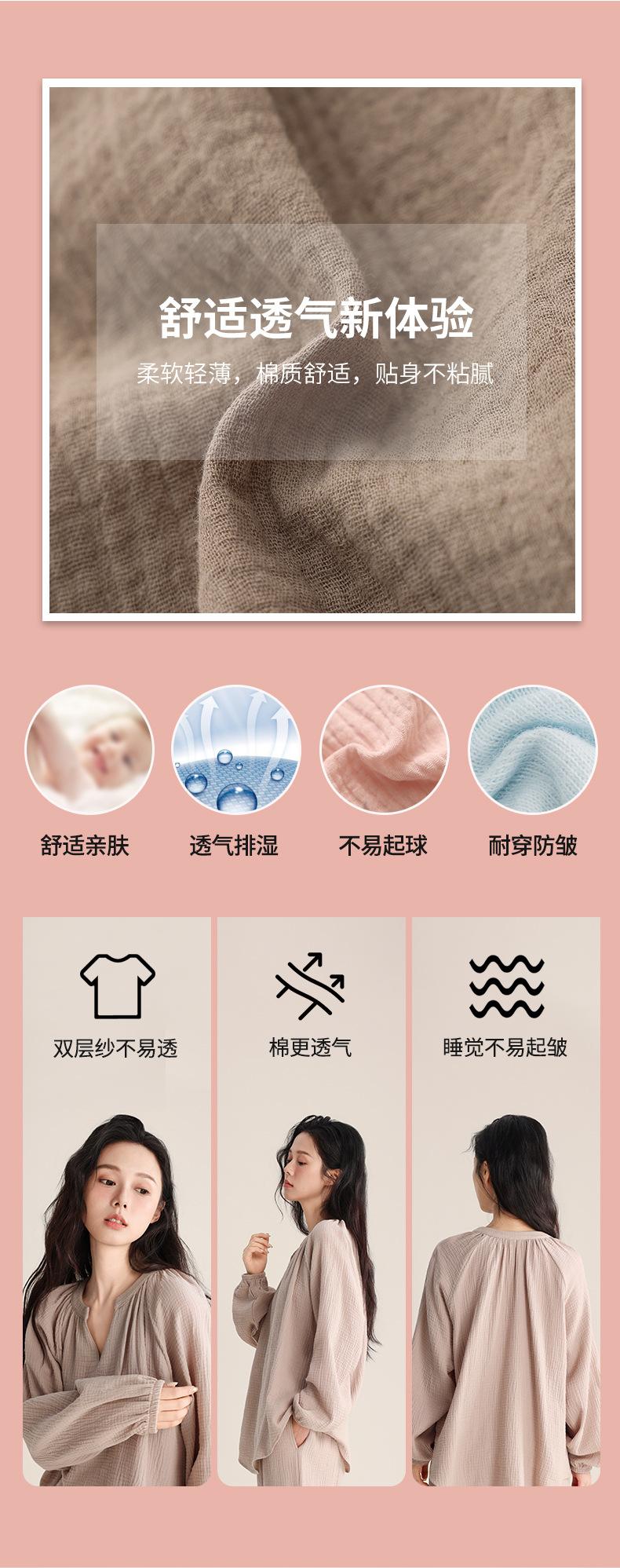 Pijama de Hilo de Doble Capa para Mujer de Primavera y Verano, Delgado, Cuello en V, Jersey, Sencillo, Elegante, Suelto, Algodón, Ropa para el Hogar, Traje