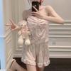 Pijama sexy de seda de hielo, nuevo estilo de verano para niñas, pantalones cortos holgados con tirantes y almohadilla para el pecho, pijama de seda estilo japonés.