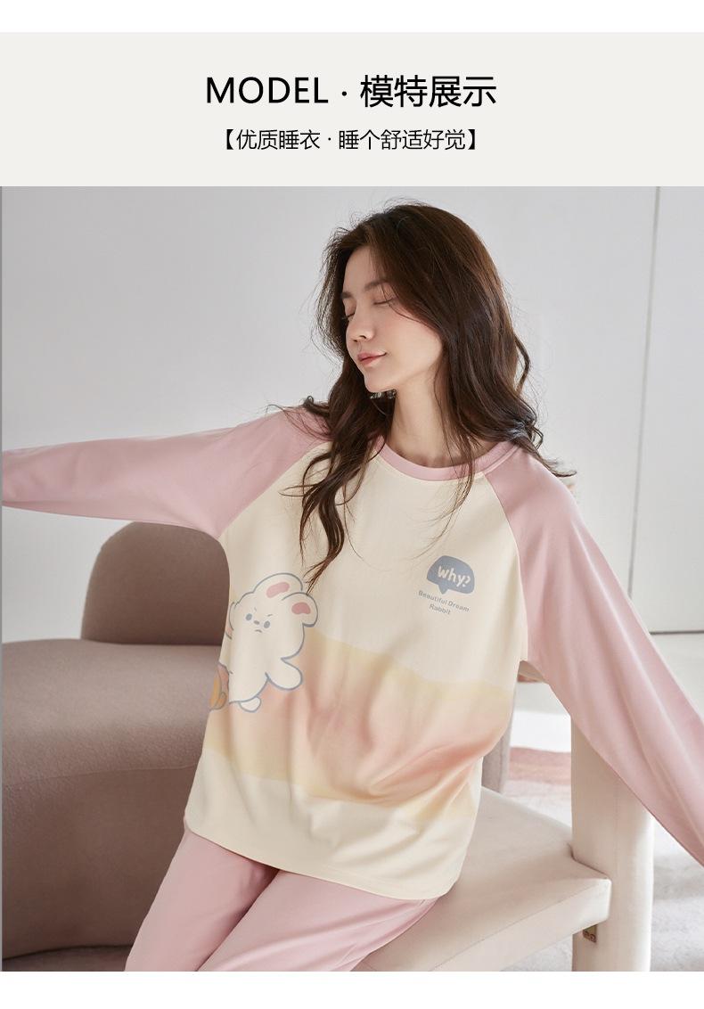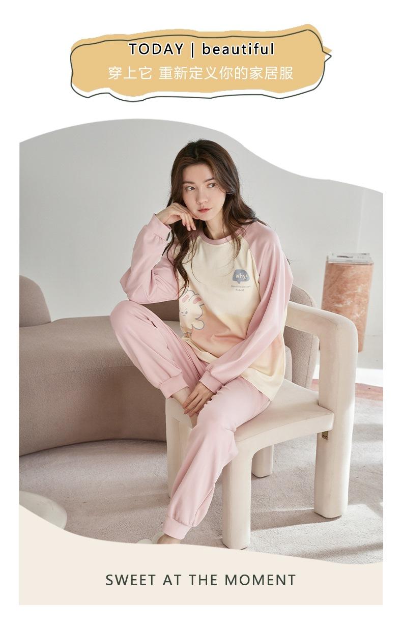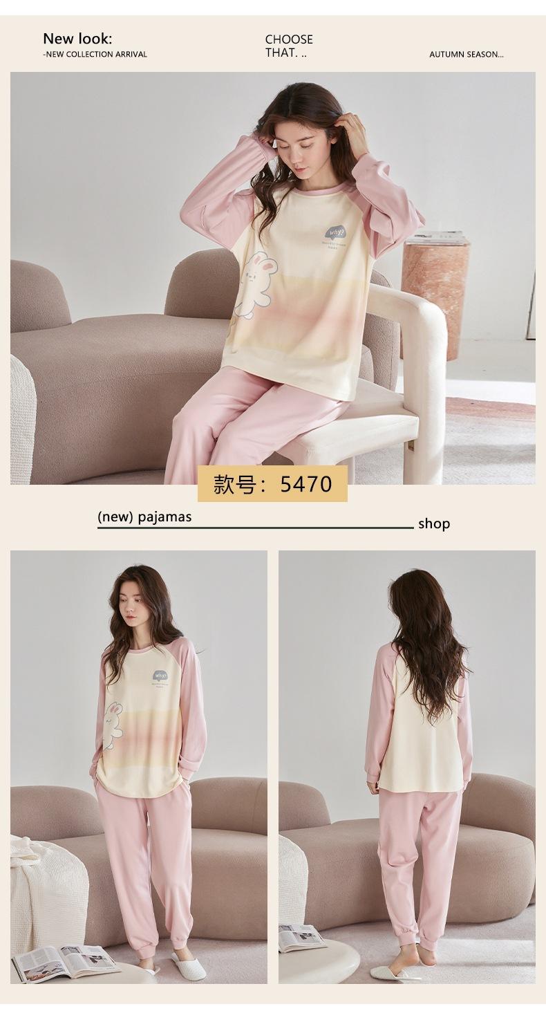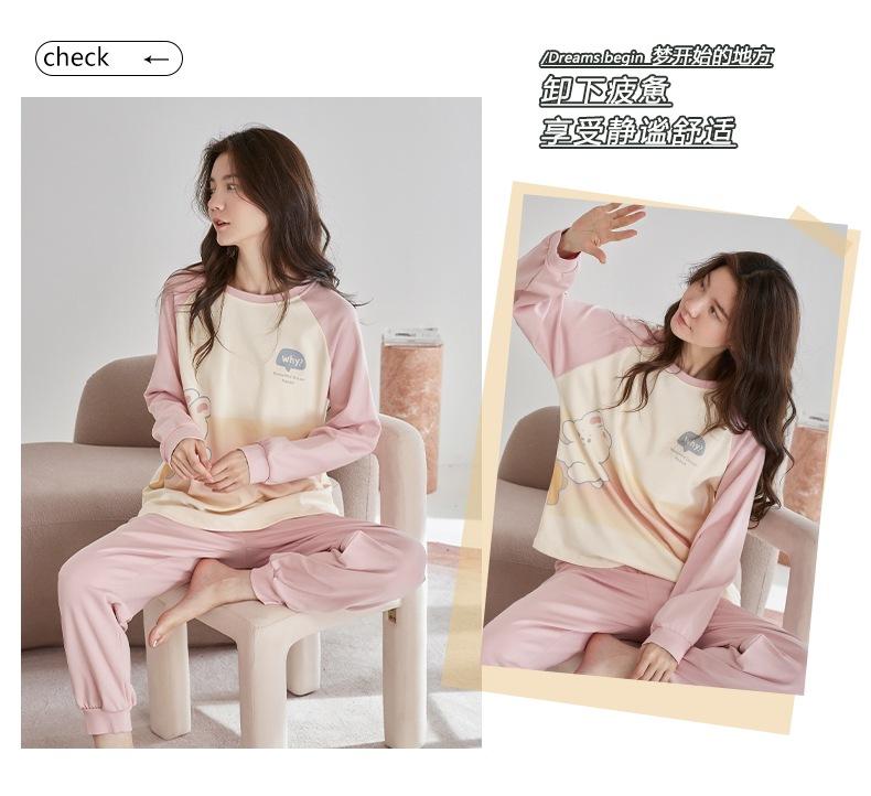 Tienda física Pijamas Mujer Primavera y Otoño Algodón Manga Larga Pantalones Sencillo Casual Cuello Redondo Recién Llegado Transmisión Ropa para el Hogar Traje