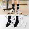 Calcetines blancos para mujer con expresión de dibujos animados japoneses, calcetines hasta media pantorrilla, calcetines deportivos de moda, calcetines de algodón para uso exterior, calcetines Zhuji
