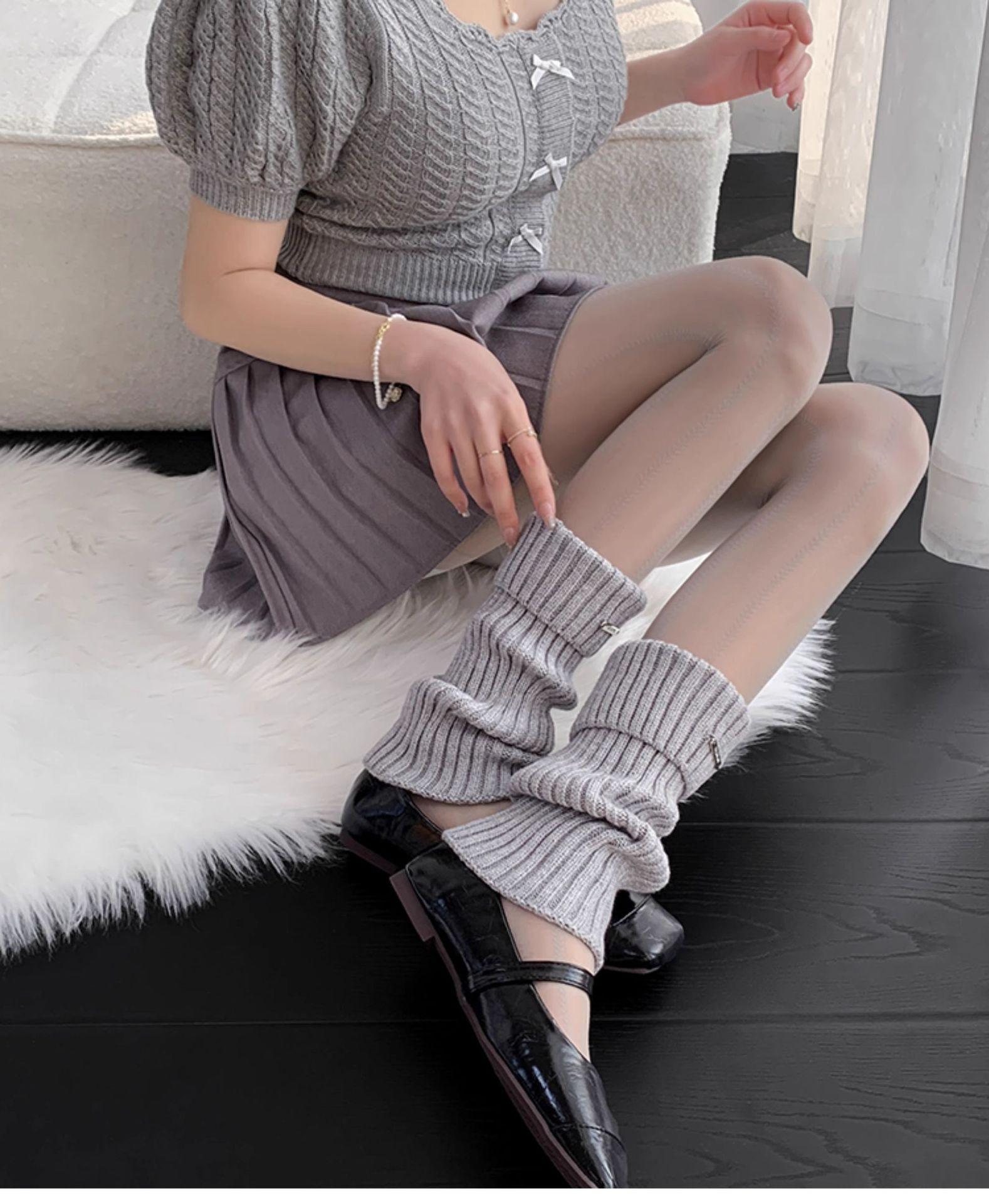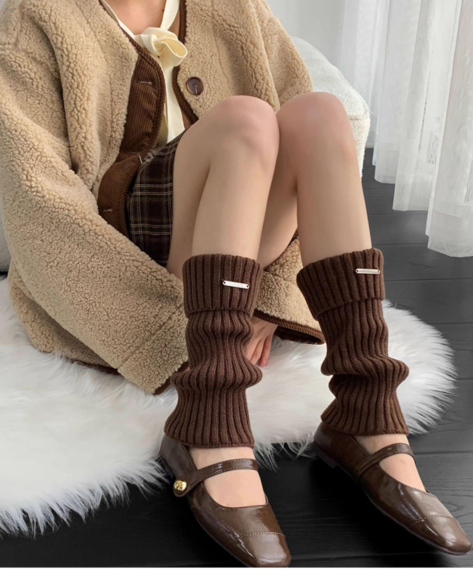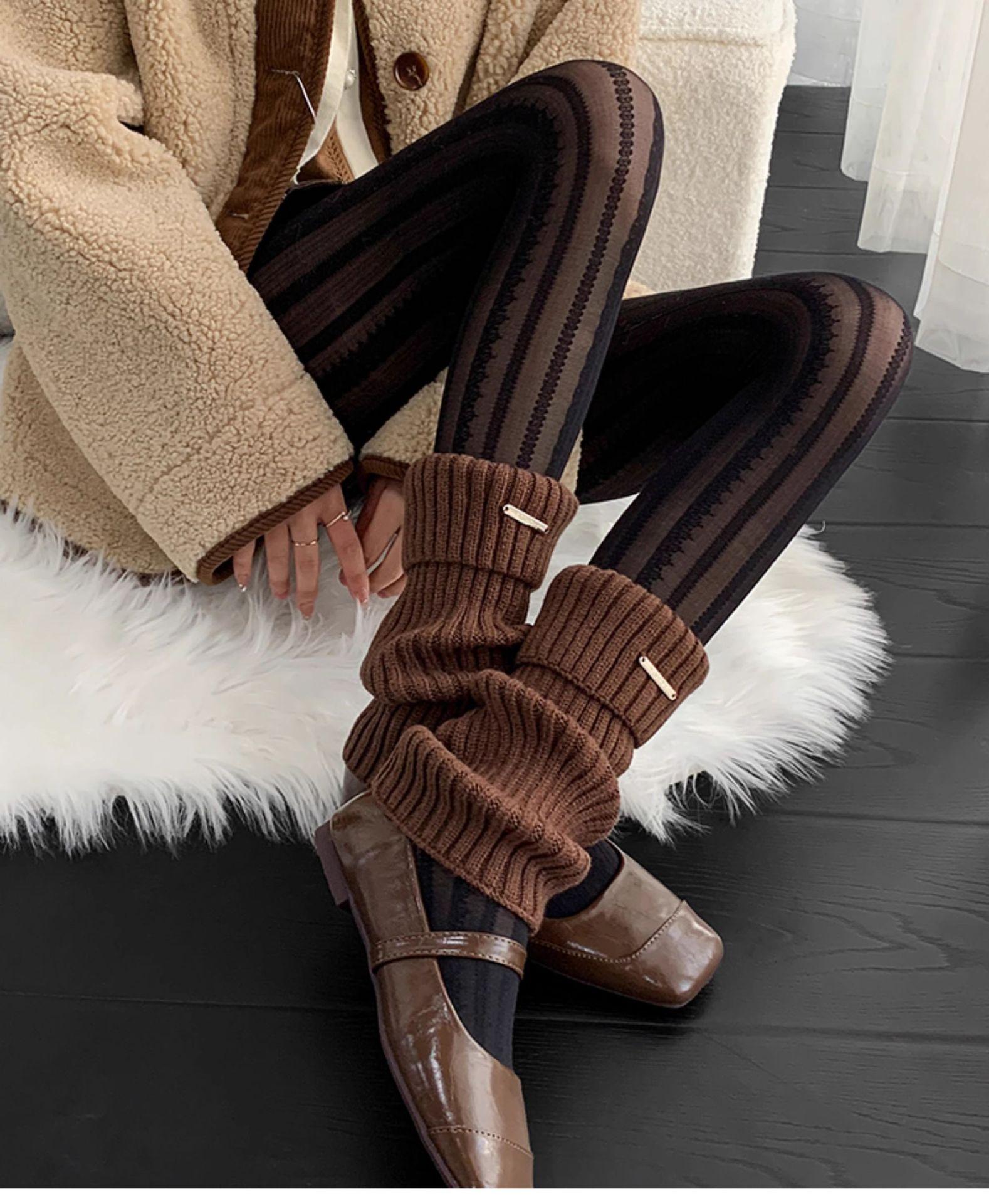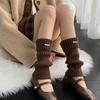 Calcetines Grises Botas de Nieve de Mujer Otoño e Invierno Cálidos Y2K Cubrepiernas Calcetines Apilados de Punto Calcetines de Lana Calcetines Shlet Blancos