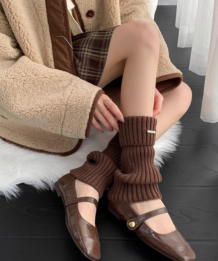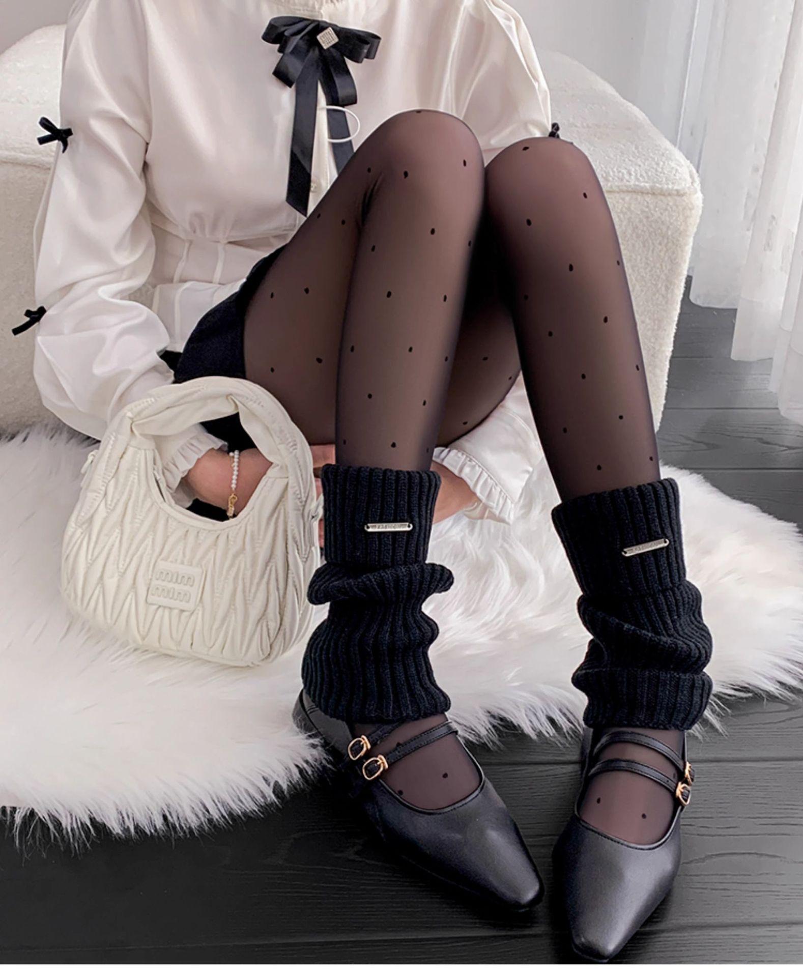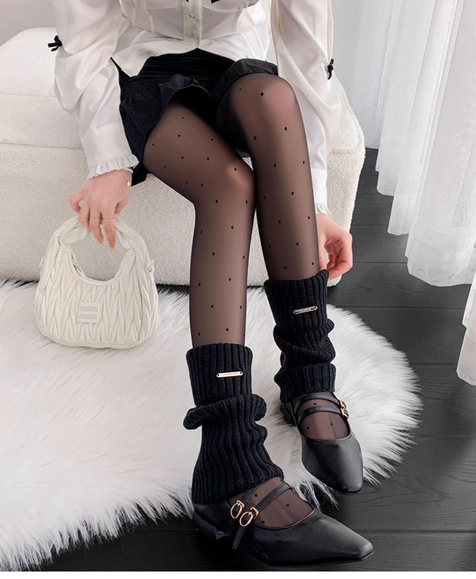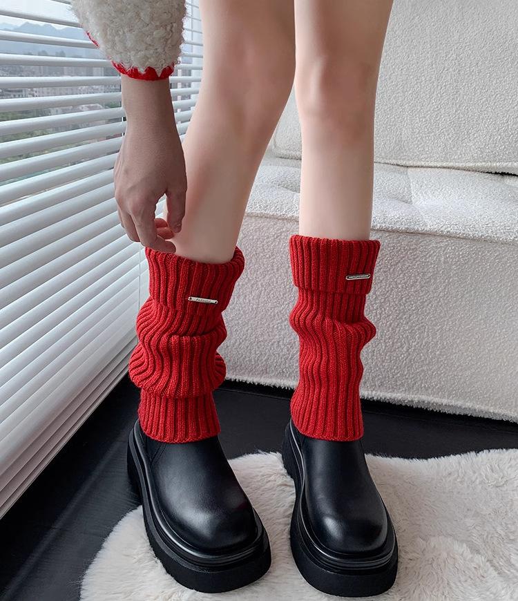 Calcetines Grises Botas de Nieve de Mujer Otoño e Invierno Cálidos Y2K Cubrepiernas Calcetines Apilados de Punto Calcetines de Lana Calcetines Shlet Blancos