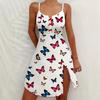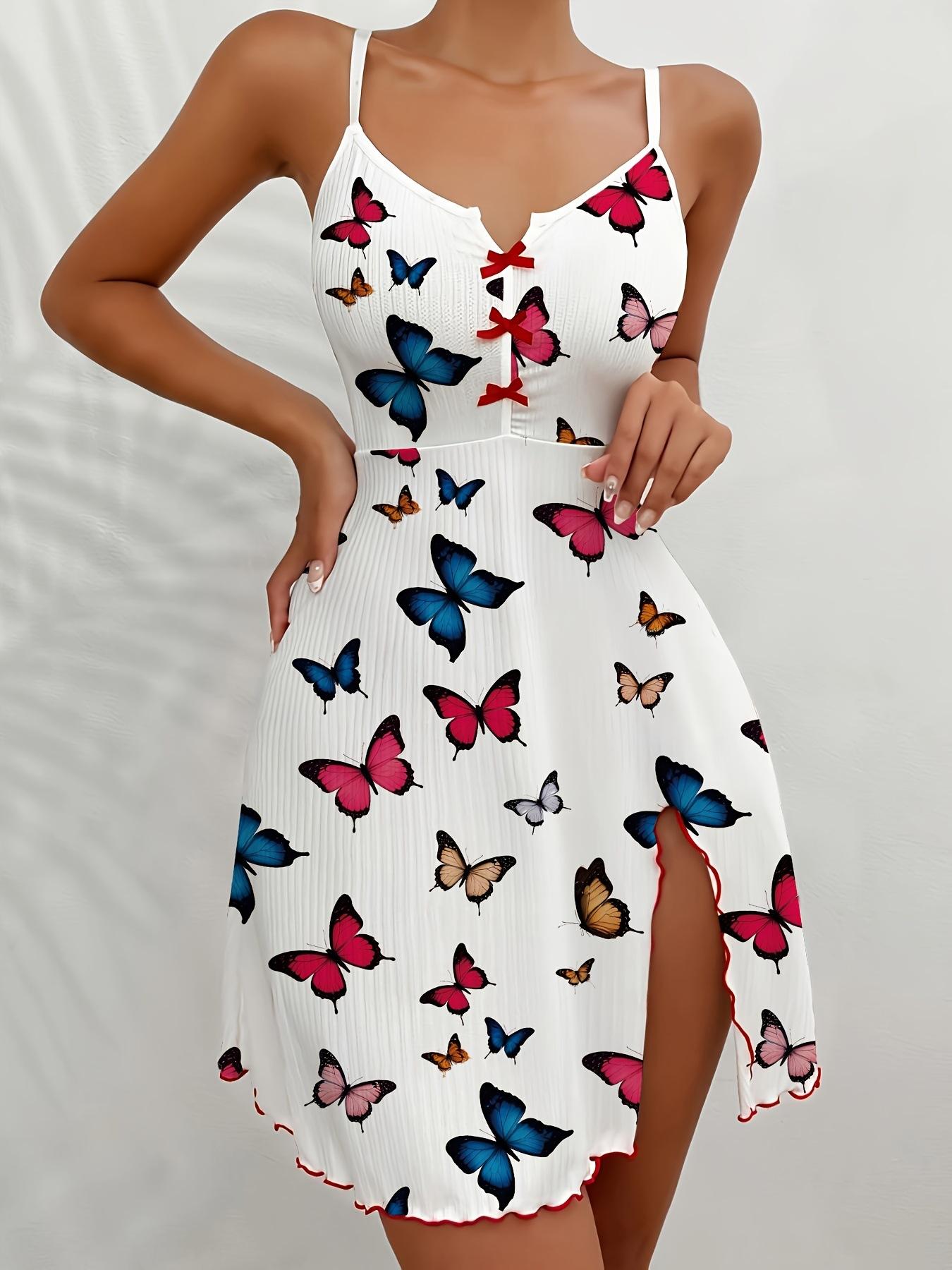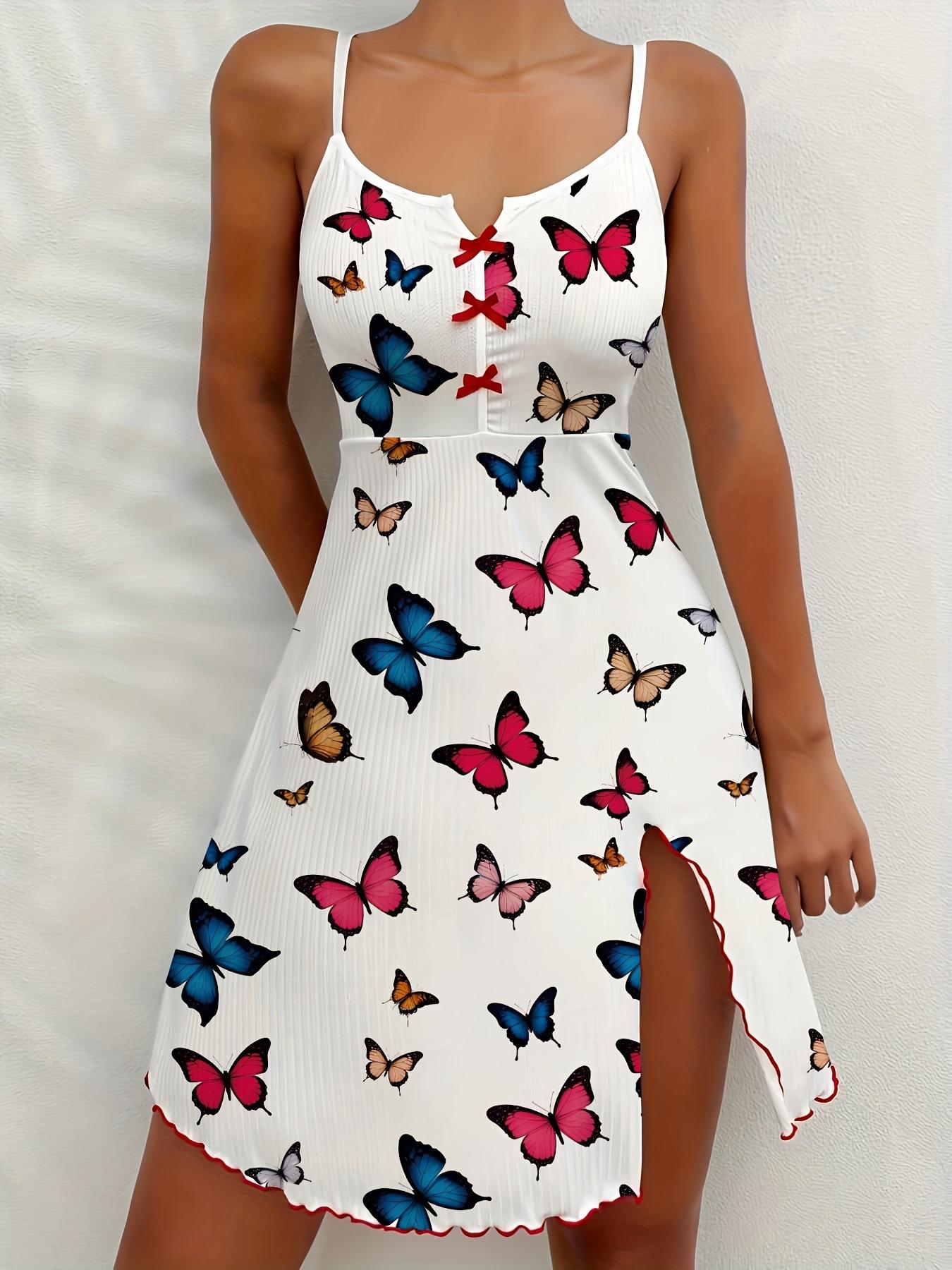 TEMU para camisón con tirantes color mariposa estampado falda dividida transfronterizo Europa y Estados Unidos sexy Amazon ropa nueva para el hogar