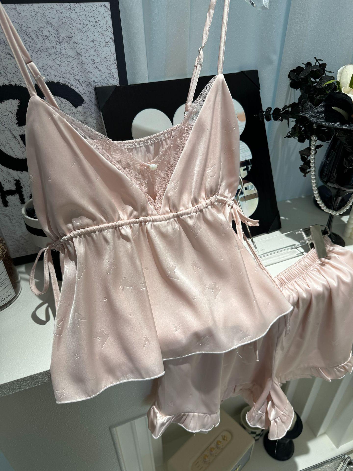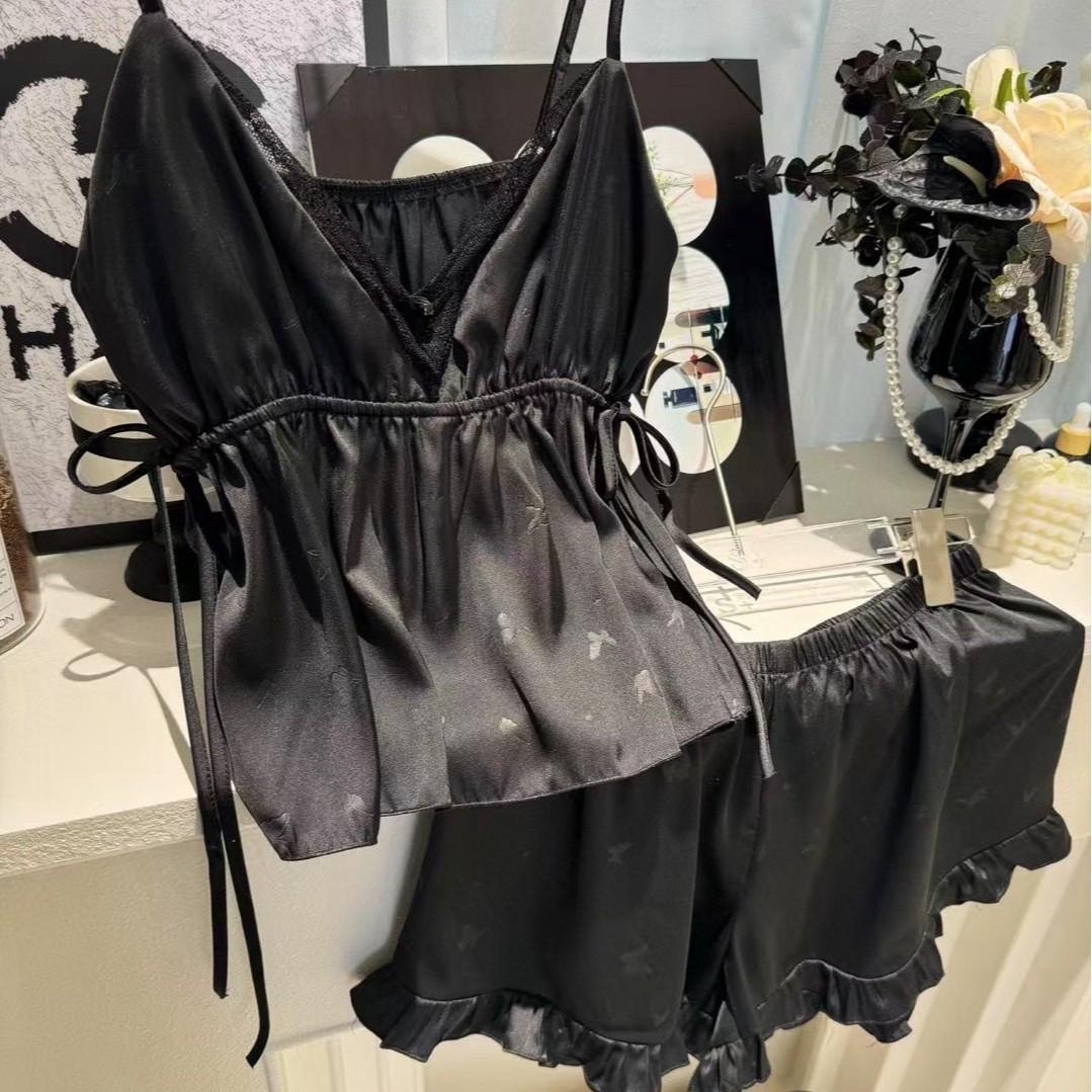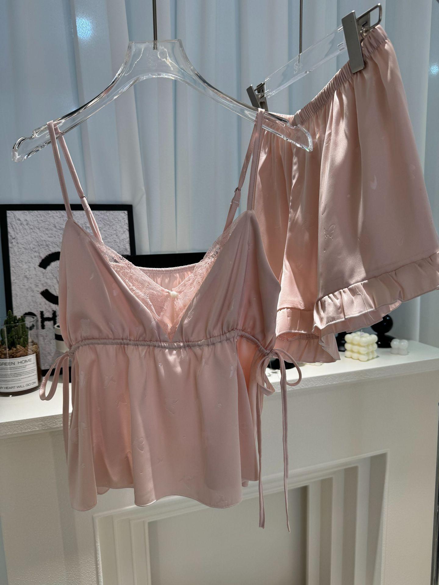 Pijamas de seda de hielo para mujer, verano, niñas, Pure Desire, pantalones cortos con tirantes, ropa para el hogar, traje, pijamas para mujer, rosa, sexy, Pure Desire