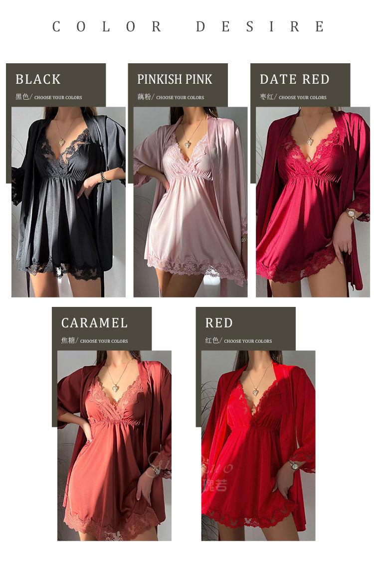 Black (clothes + underwear), Black (robe + belt), Red (clothes + underwear), Red (robe + belt), Caramel color ...