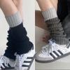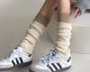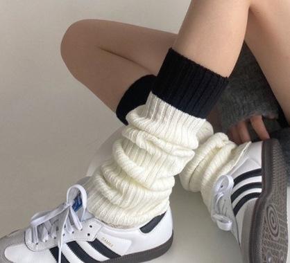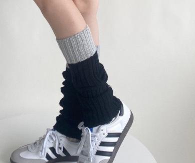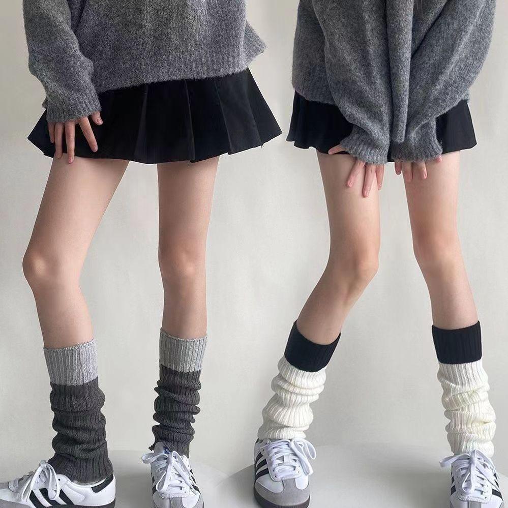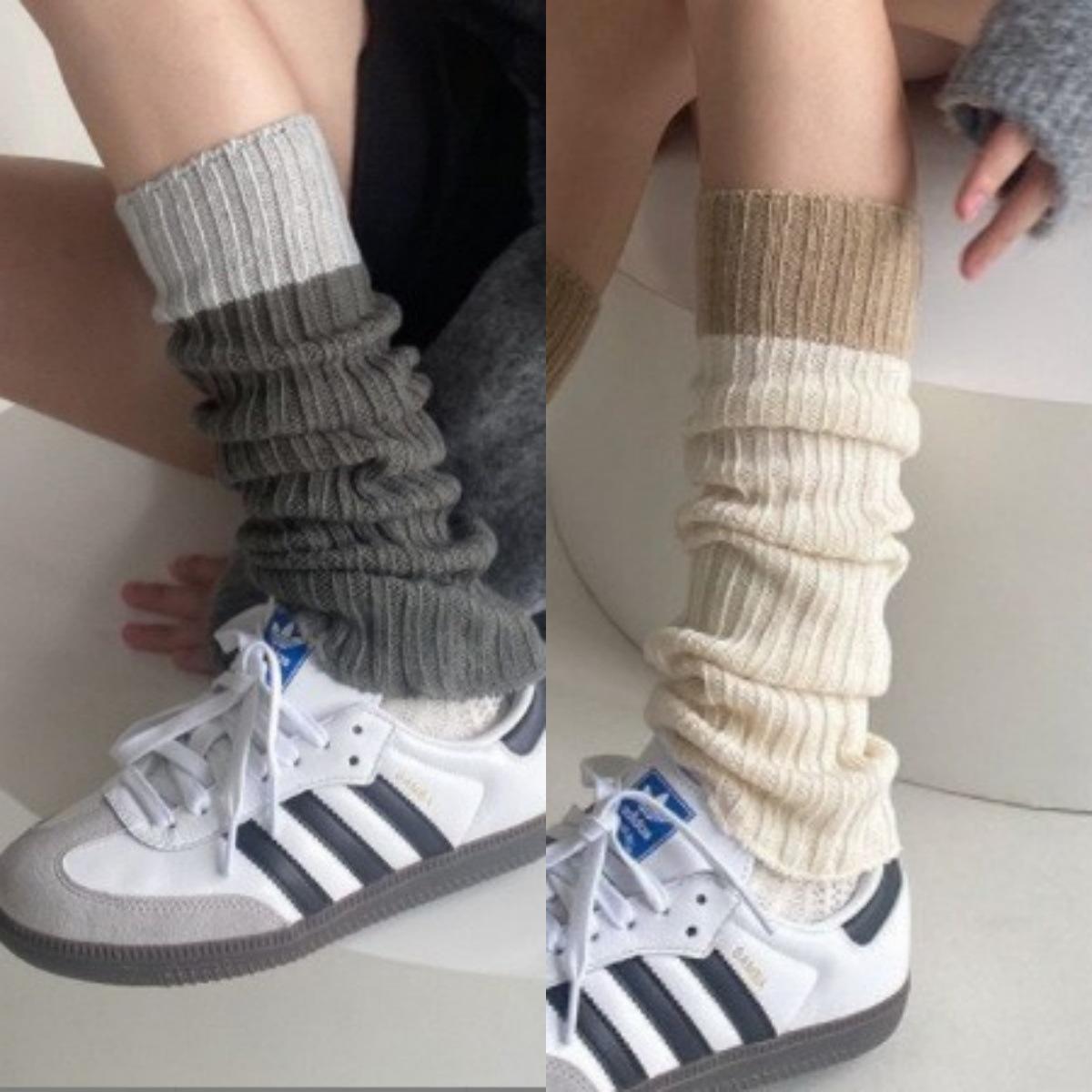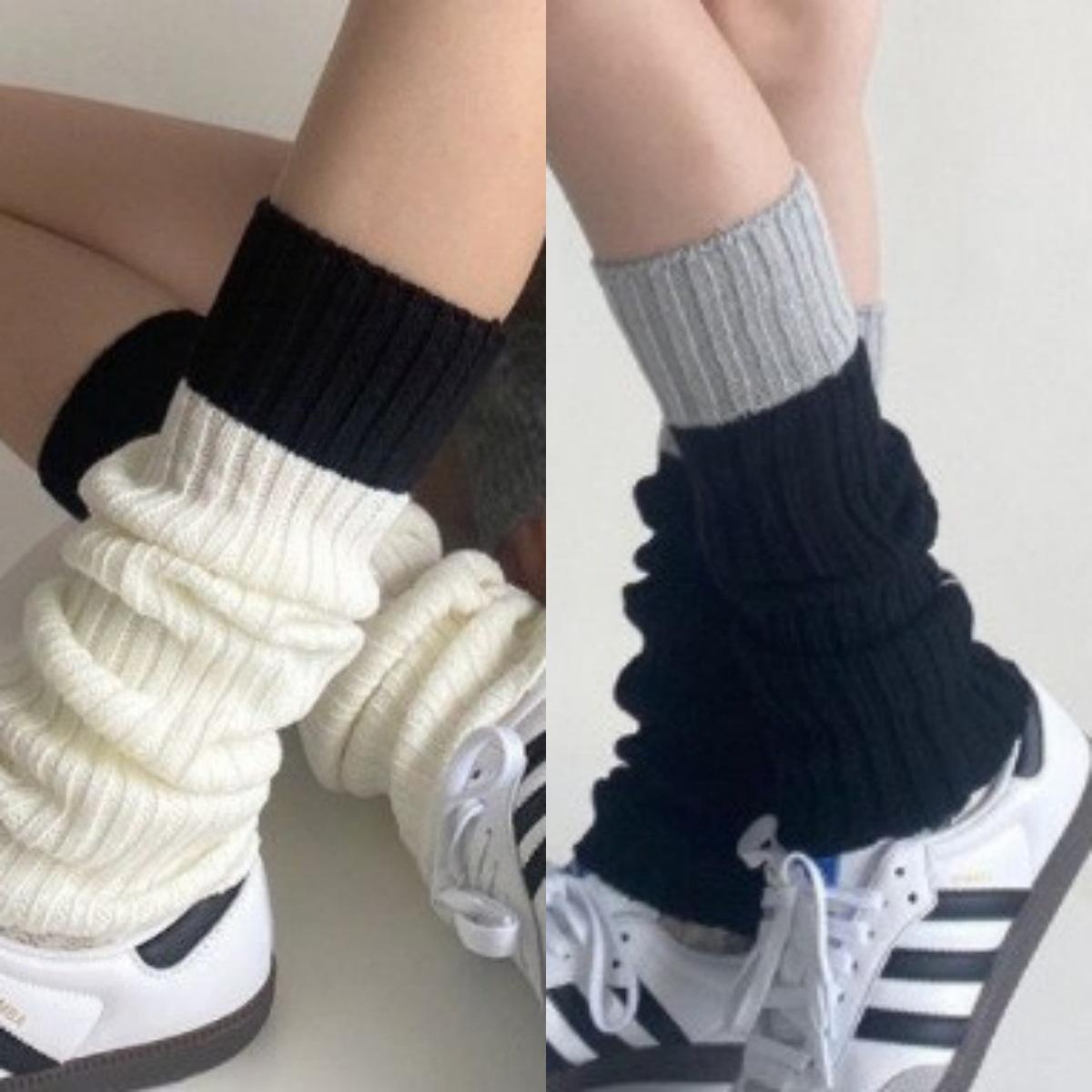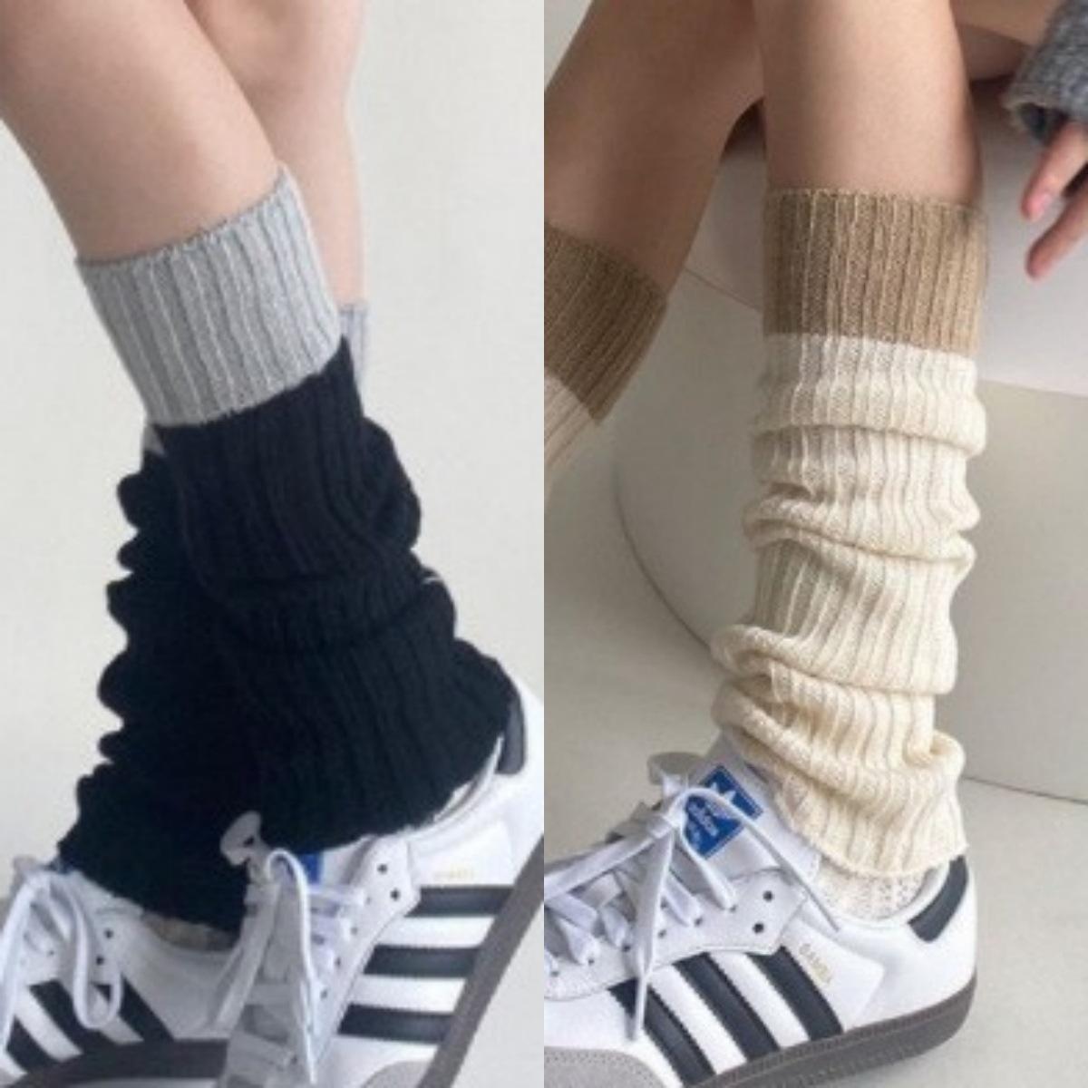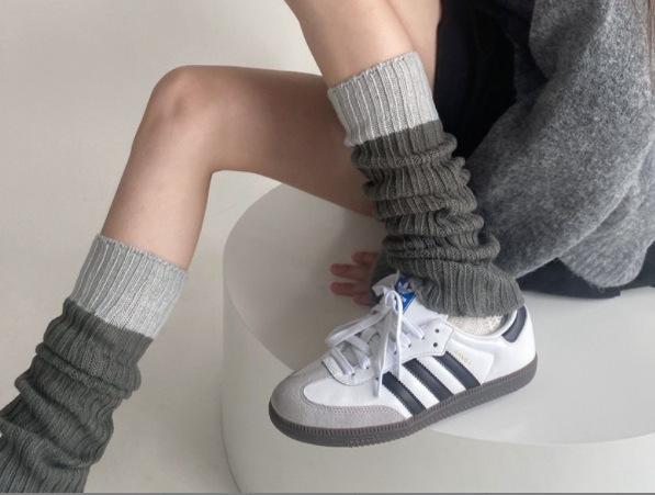 Calcetines de punto de lana de primavera y otoño con costuras en contraste de colores, conjunto de piernas, calcetines de pelo sencillos que combinan con todo, calcetines grises cálidos, calcetines con puños.