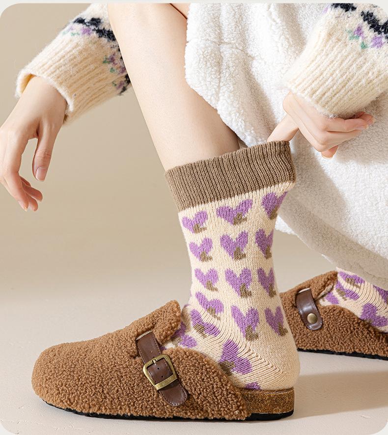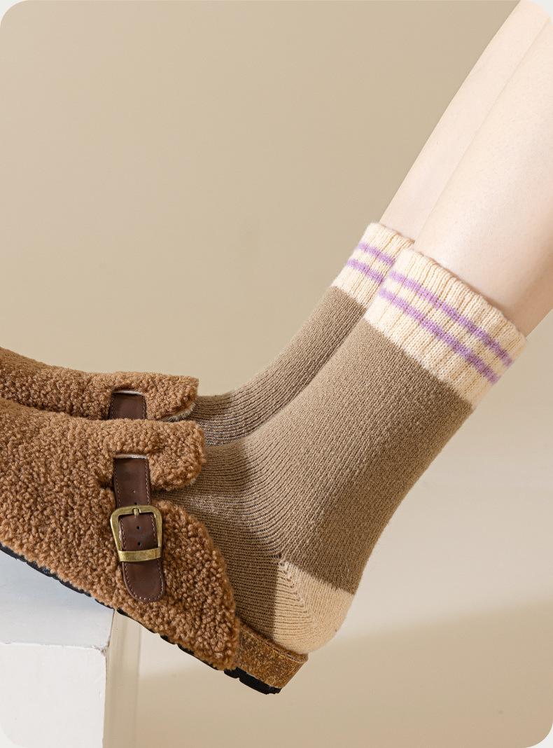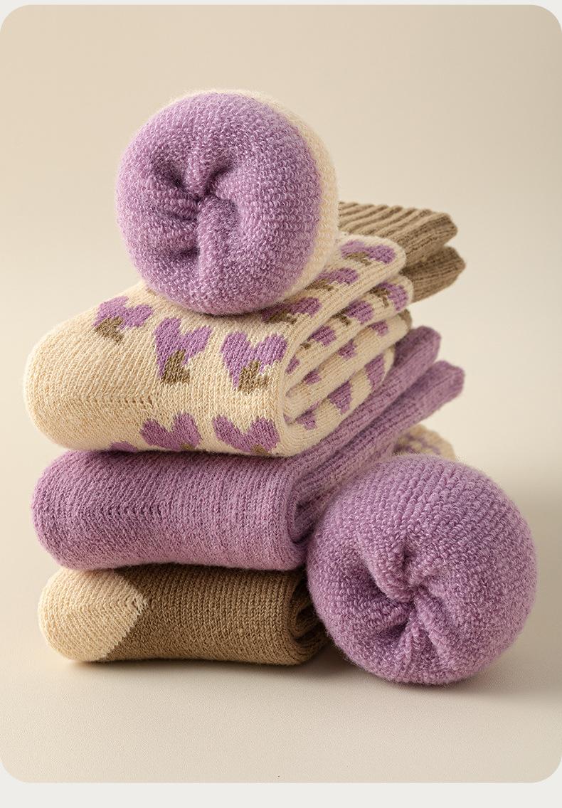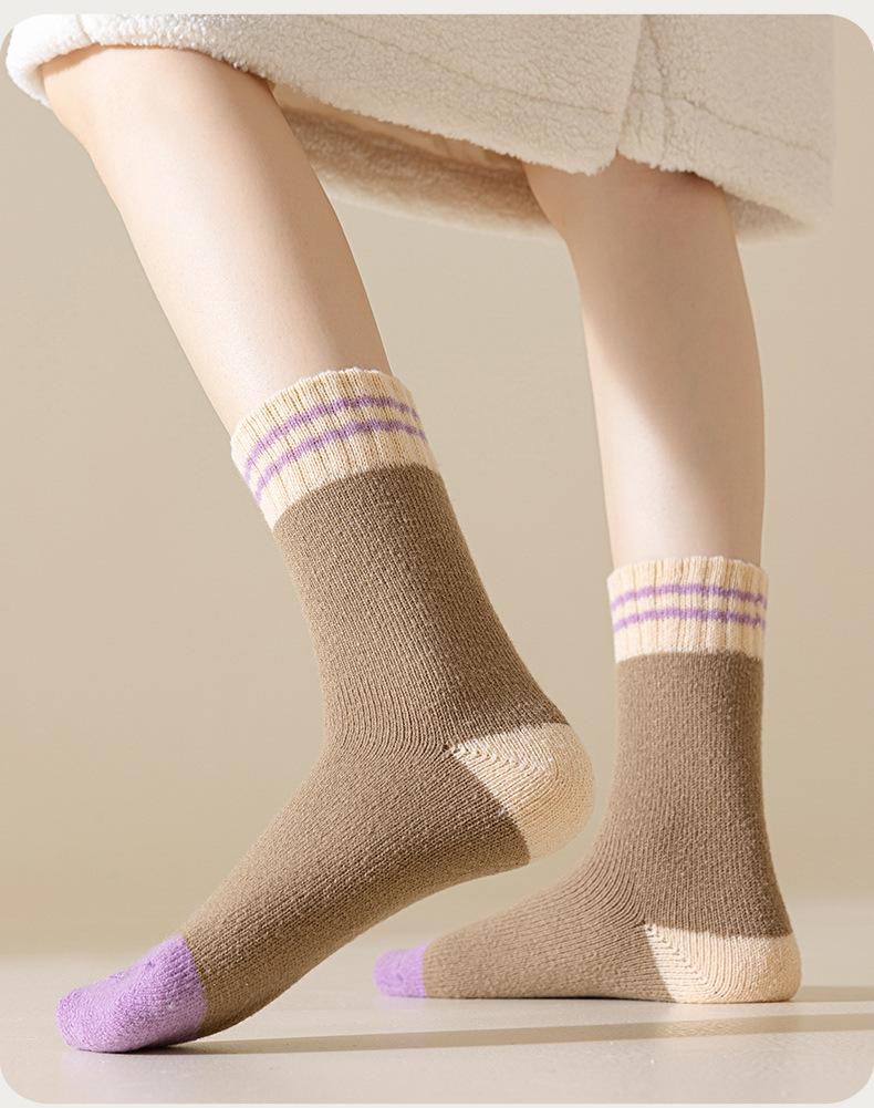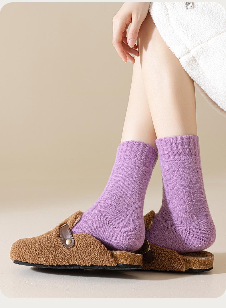 Calcetines morados de otoño e invierno a prueba de frío y cálidos calcetines gruesos calcetines de mujer calcetines de invierno supergruesos de color sólido calcetines de rizo