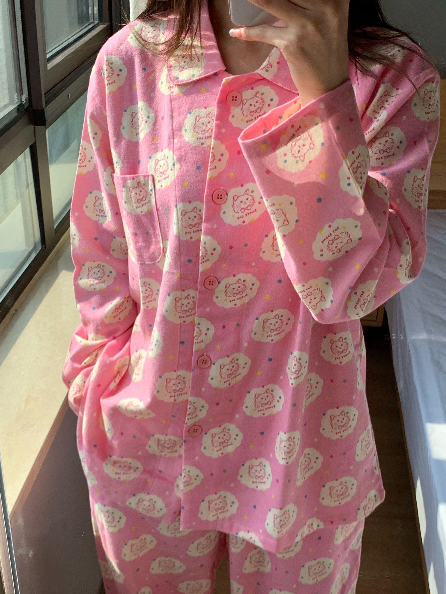 ¡Nuevo! Pijama holgado de algodón con solapa de gato títere para niña, suave y encerado, con forma de corazón, ropa de casa con dibujos animados