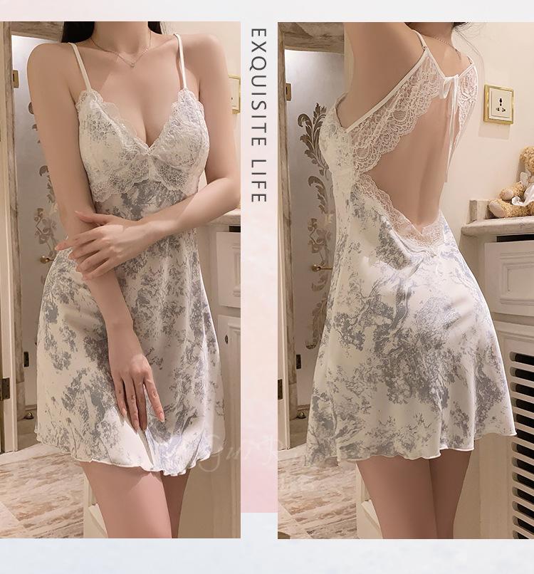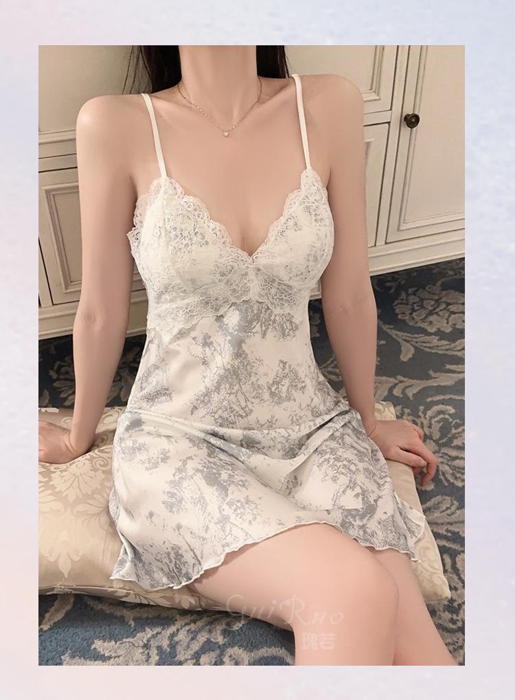 Guiruo Hot Deep V Plus almohadilla de pecho ropa interior pura atracción sexy satén Sling camisón talla grande traje de mujer 4900