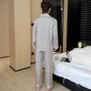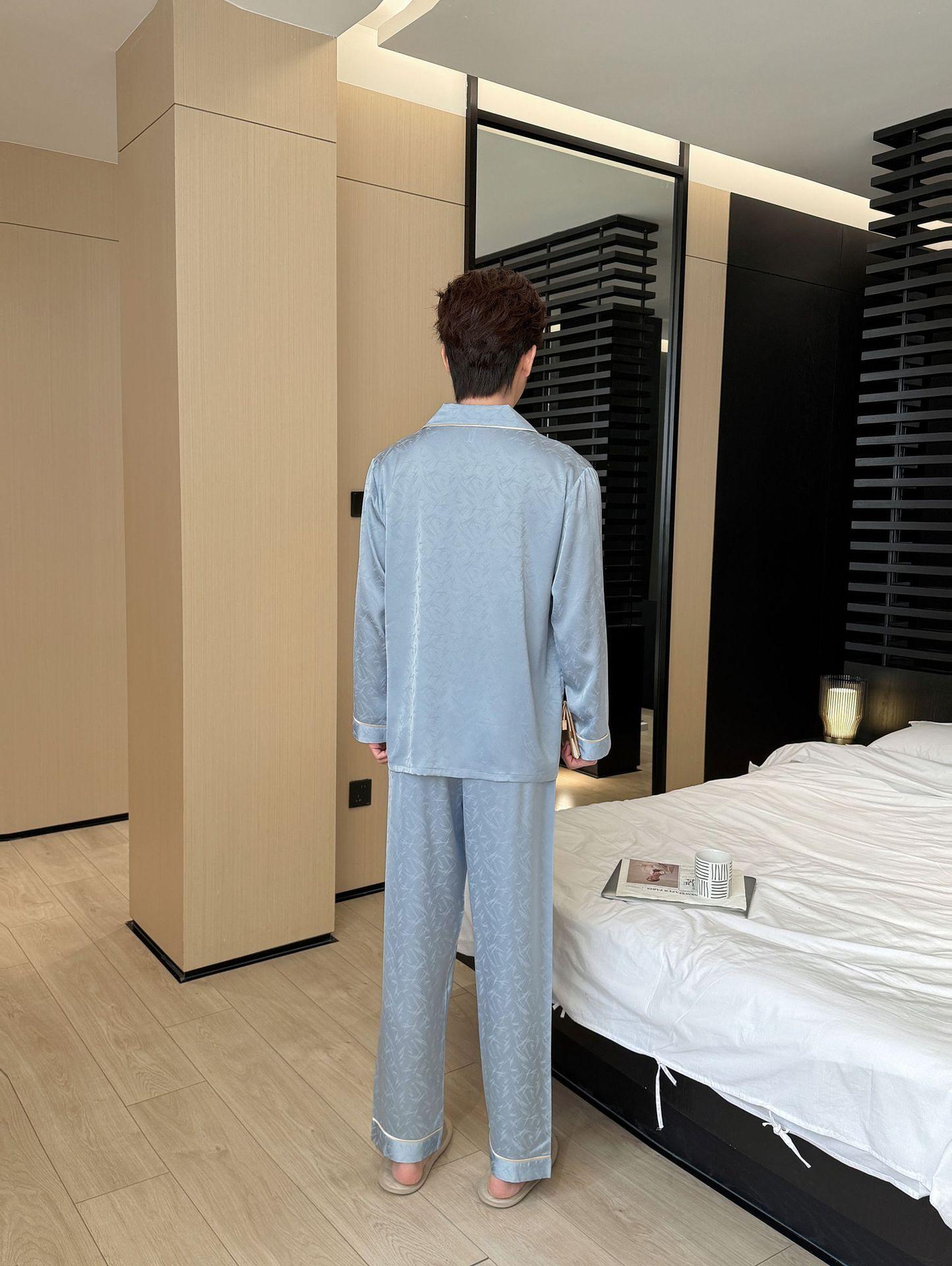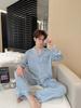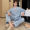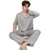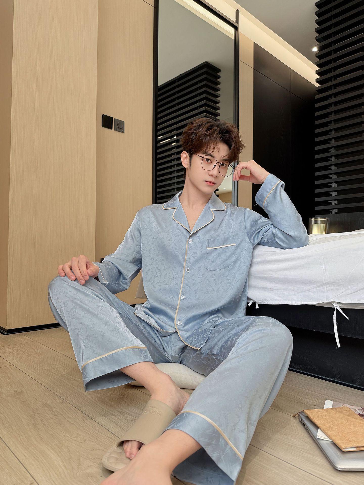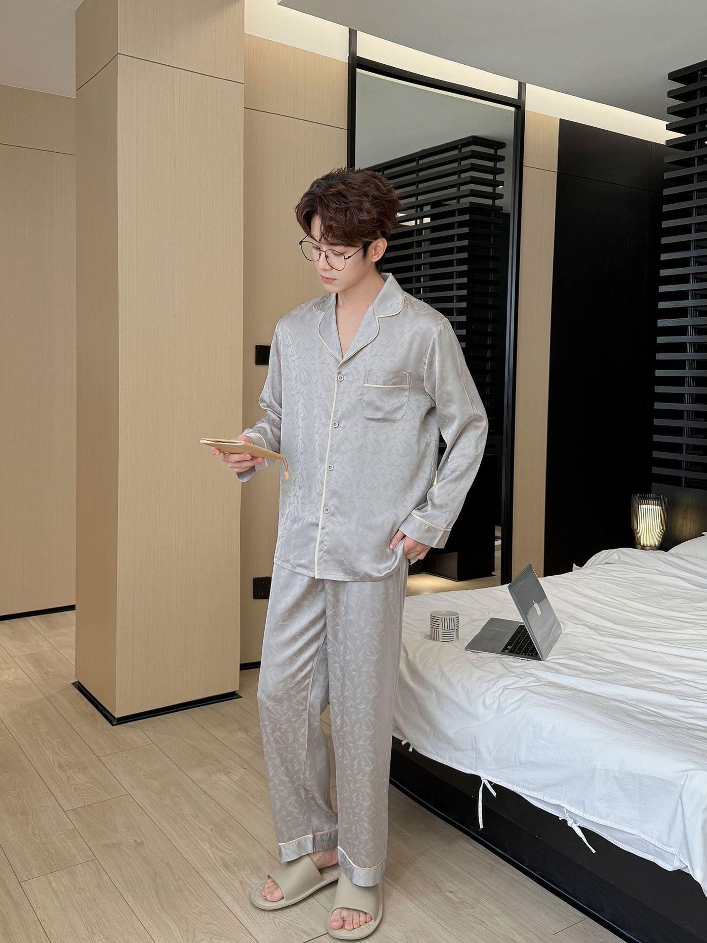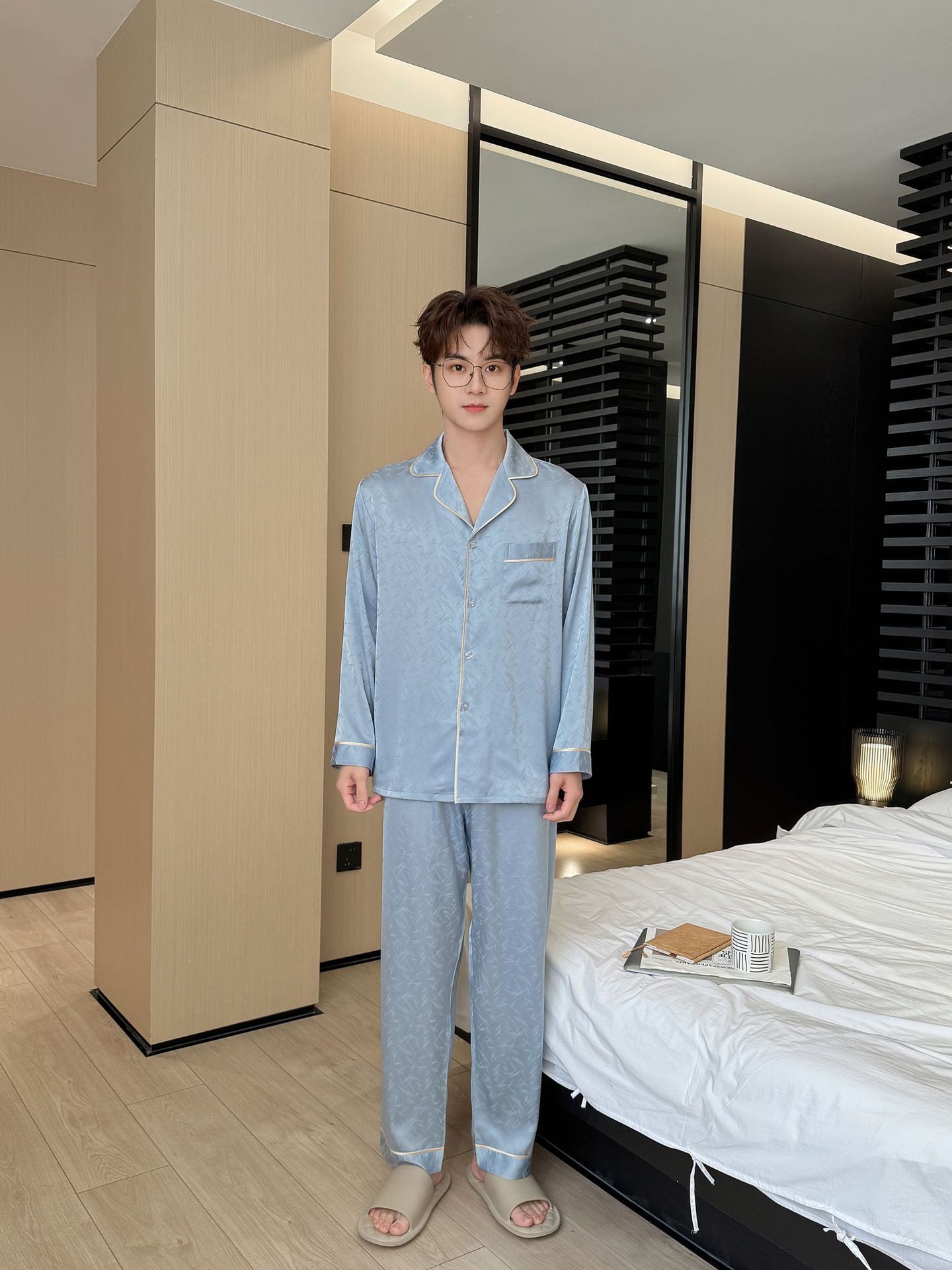 Pijamas para hombre, primavera y otoño, manga larga, seda fina de hielo, jacquard de alta calidad, tallas grandes, ropa de abrigo, ropa de casa, traje de otoño N256