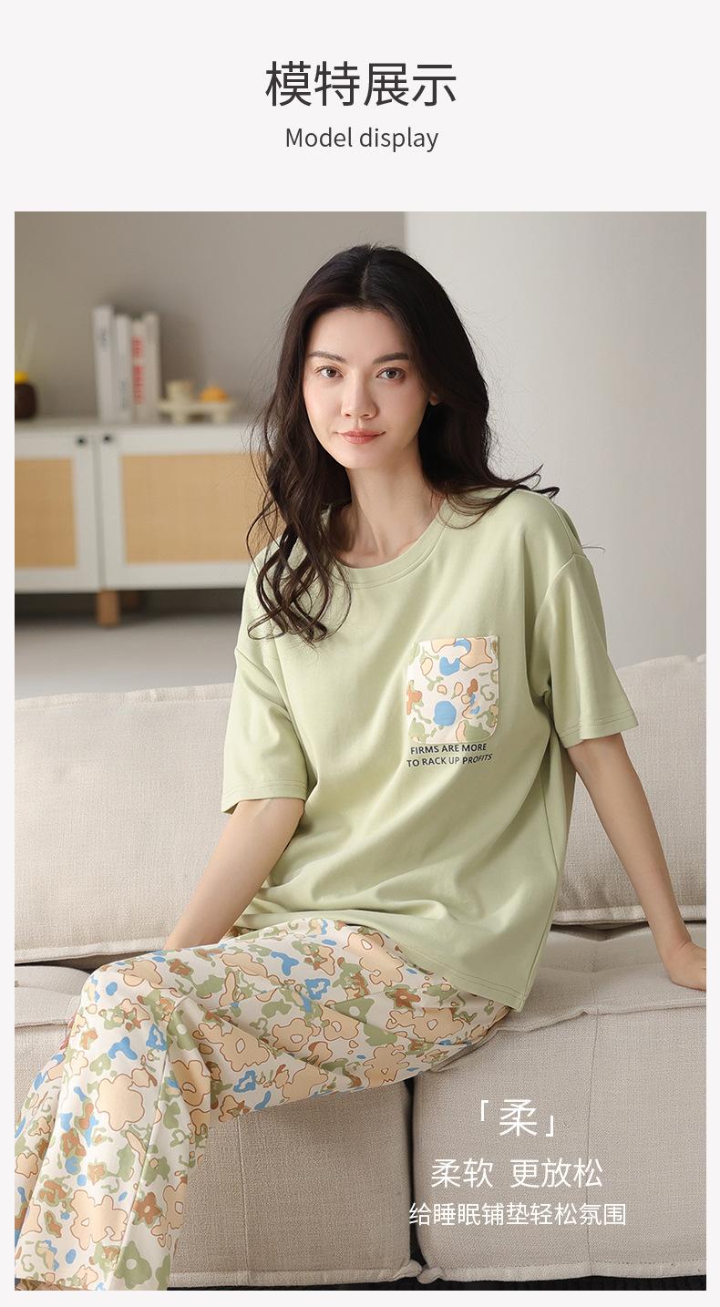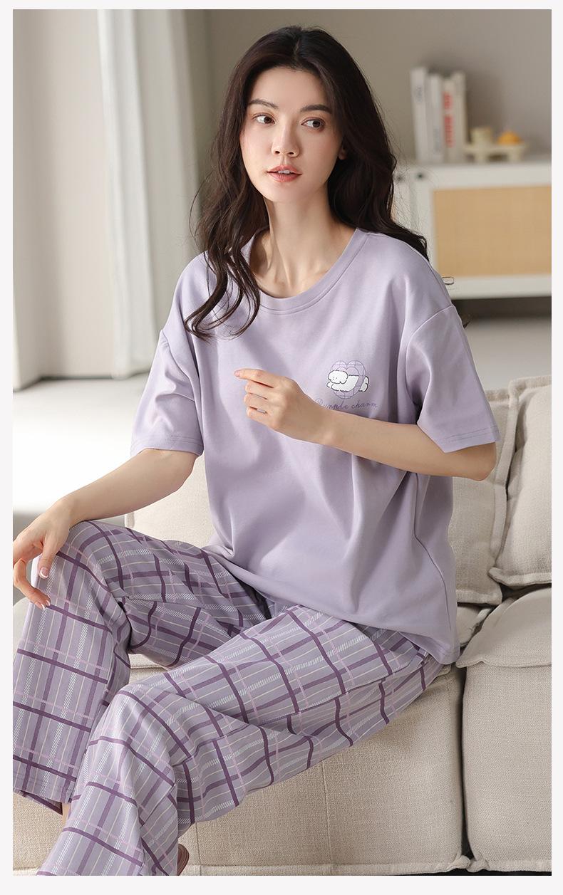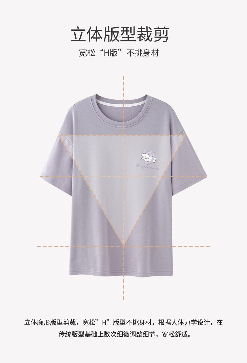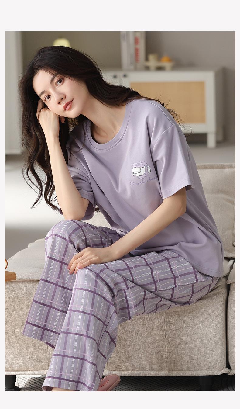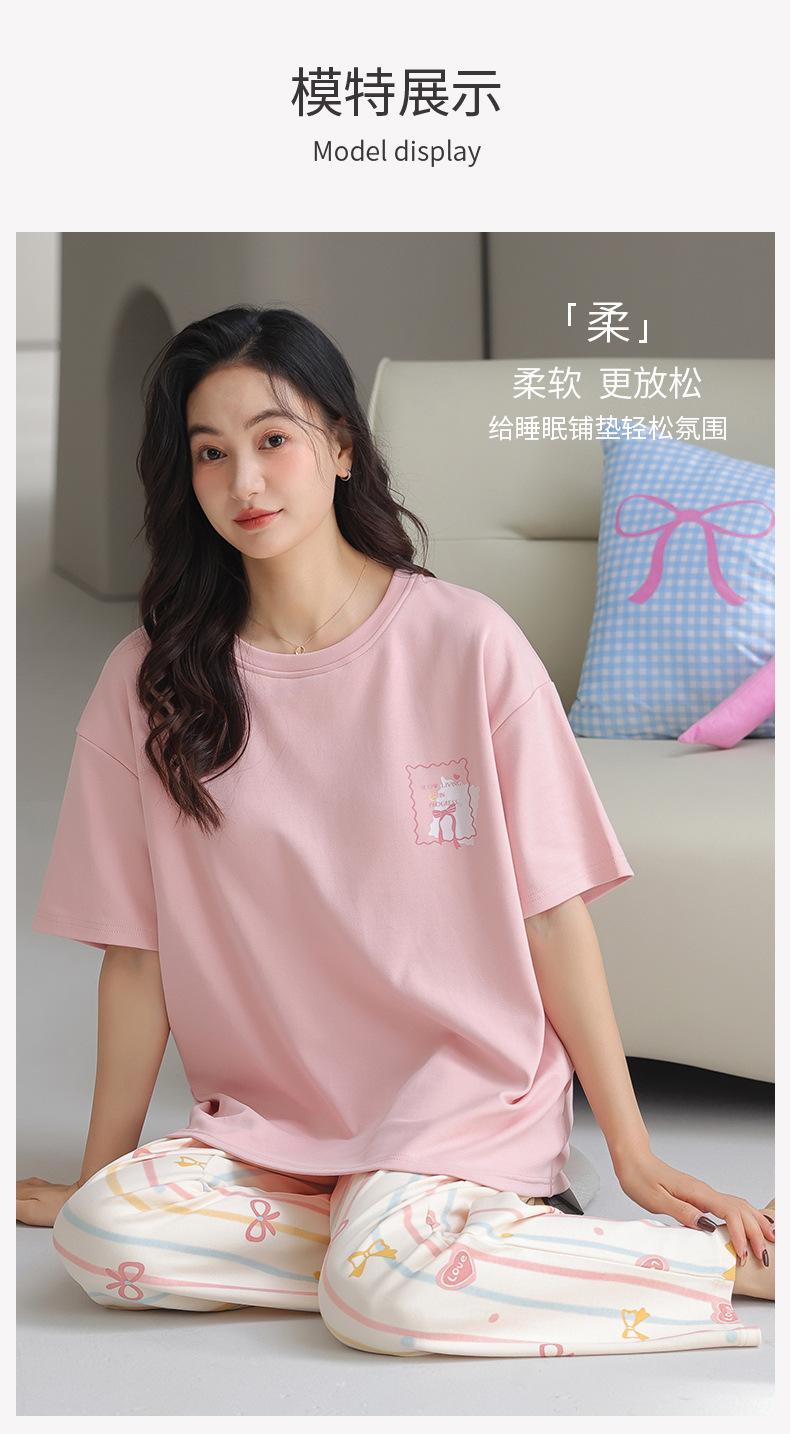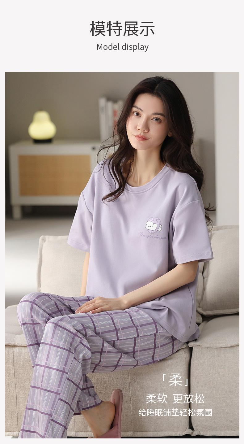 Pijama de algodón de manga corta para mujer, cuello redondo, talla grande, holgado, para exteriores, sencillo, para el hogar, 2025