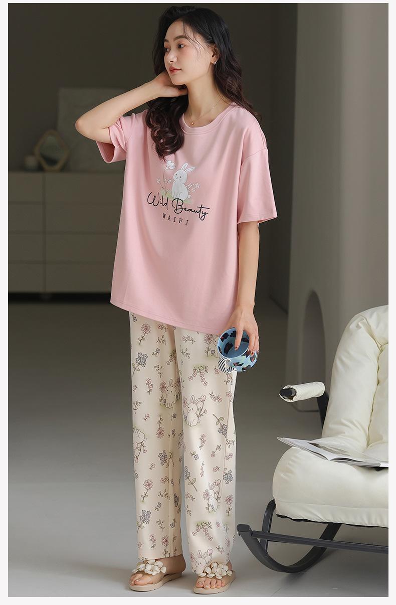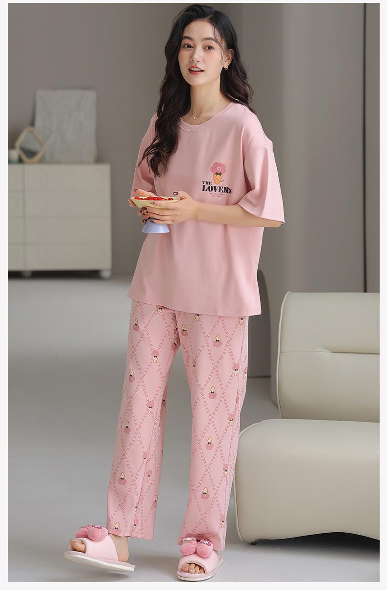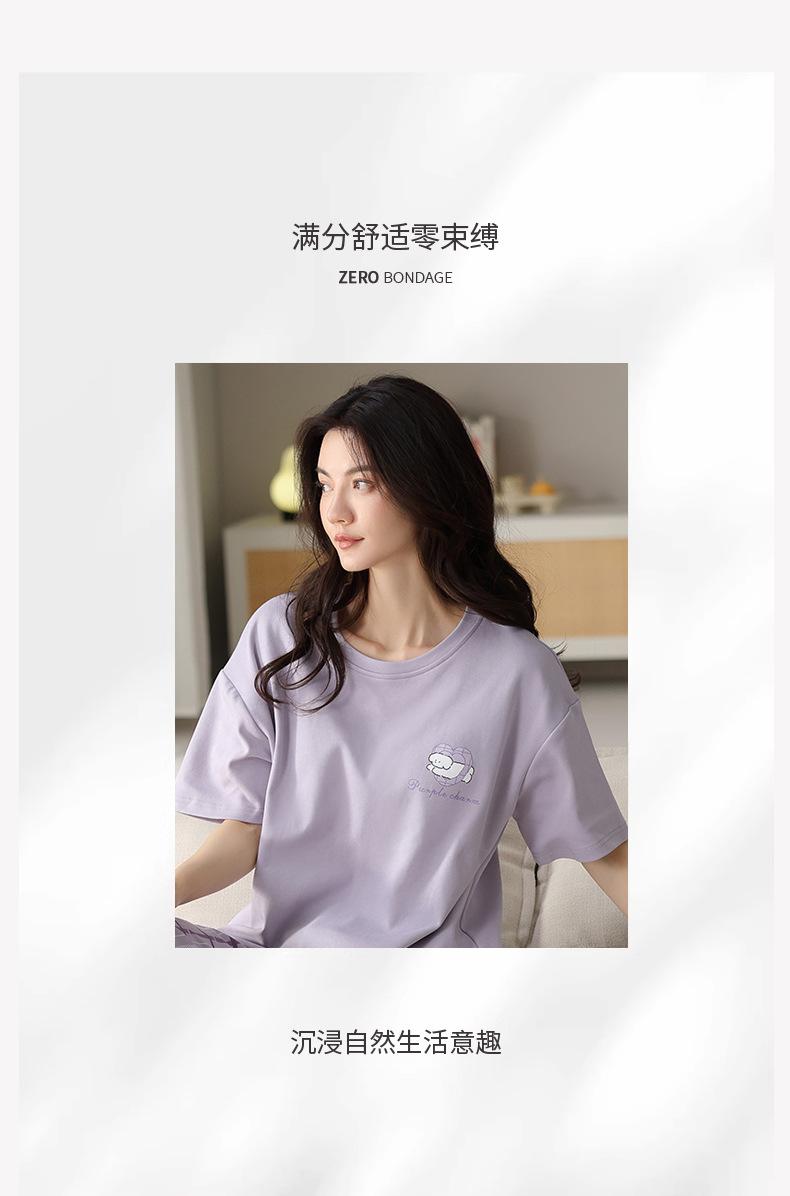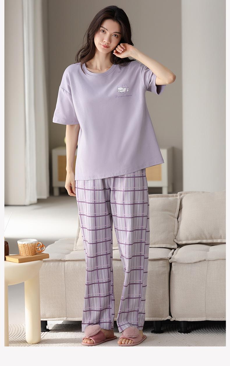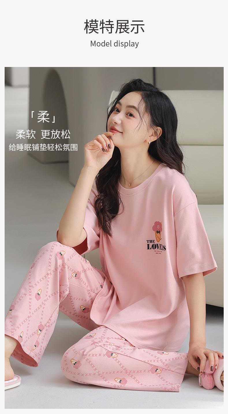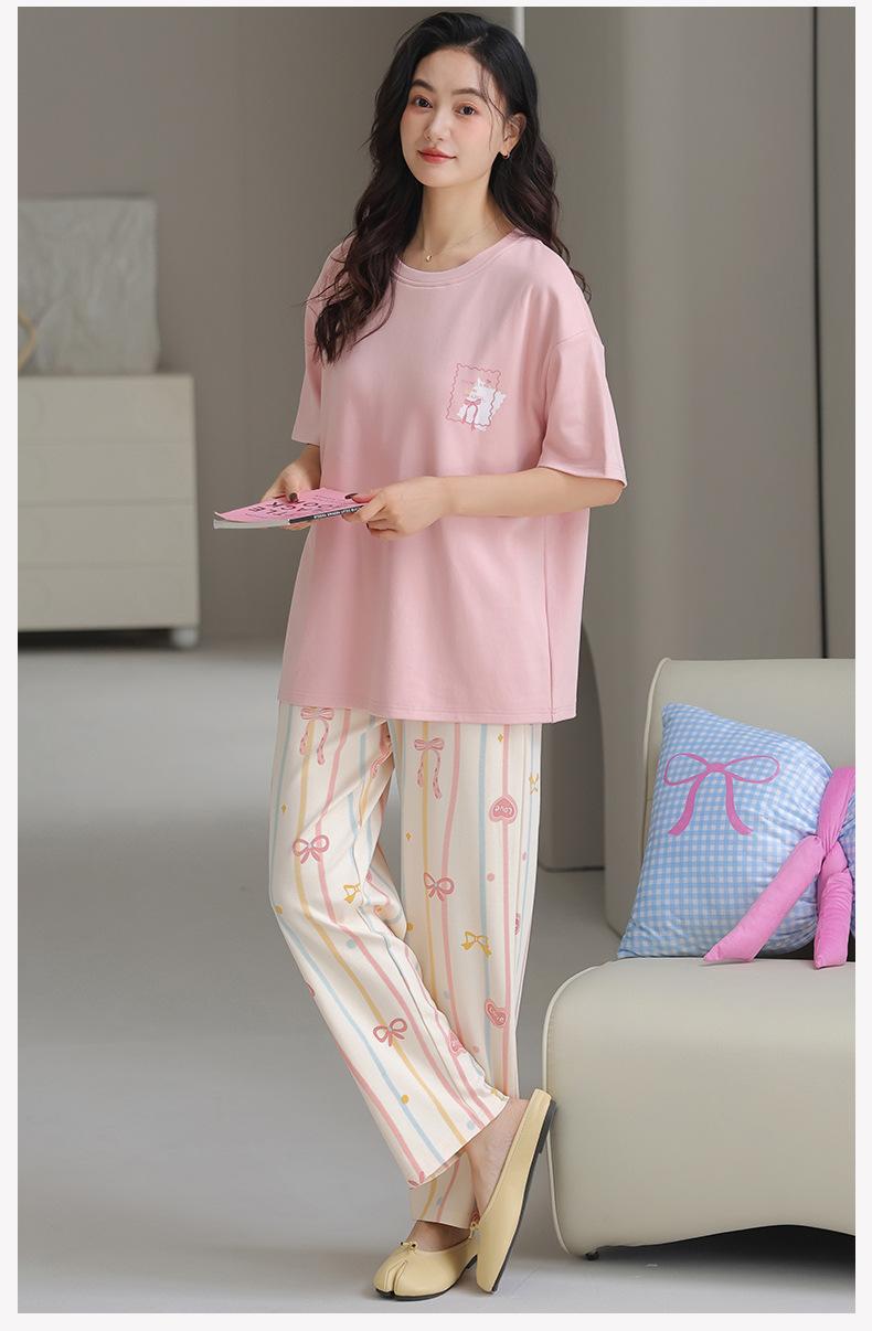 Pijama de algodón de manga corta para mujer, cuello redondo, talla grande, holgado, para exteriores, sencillo, para el hogar, 2025