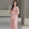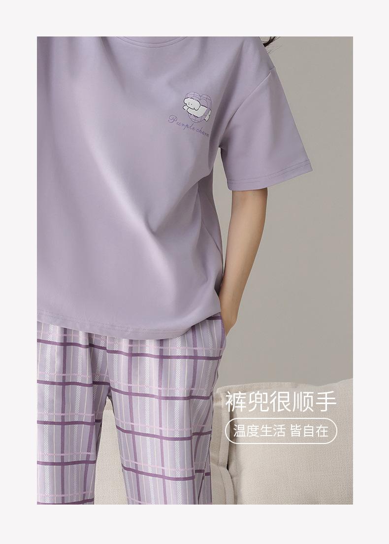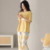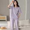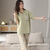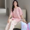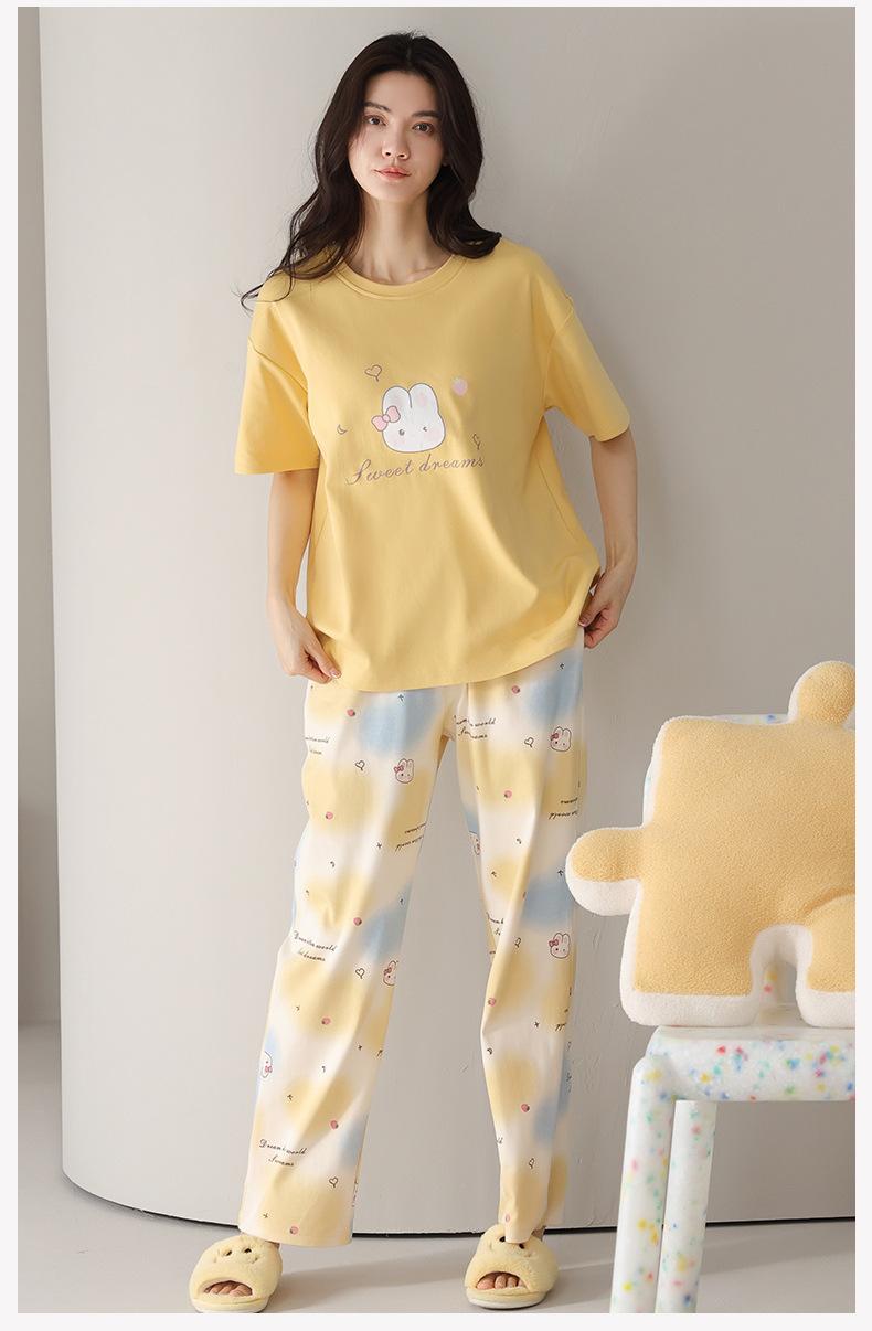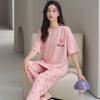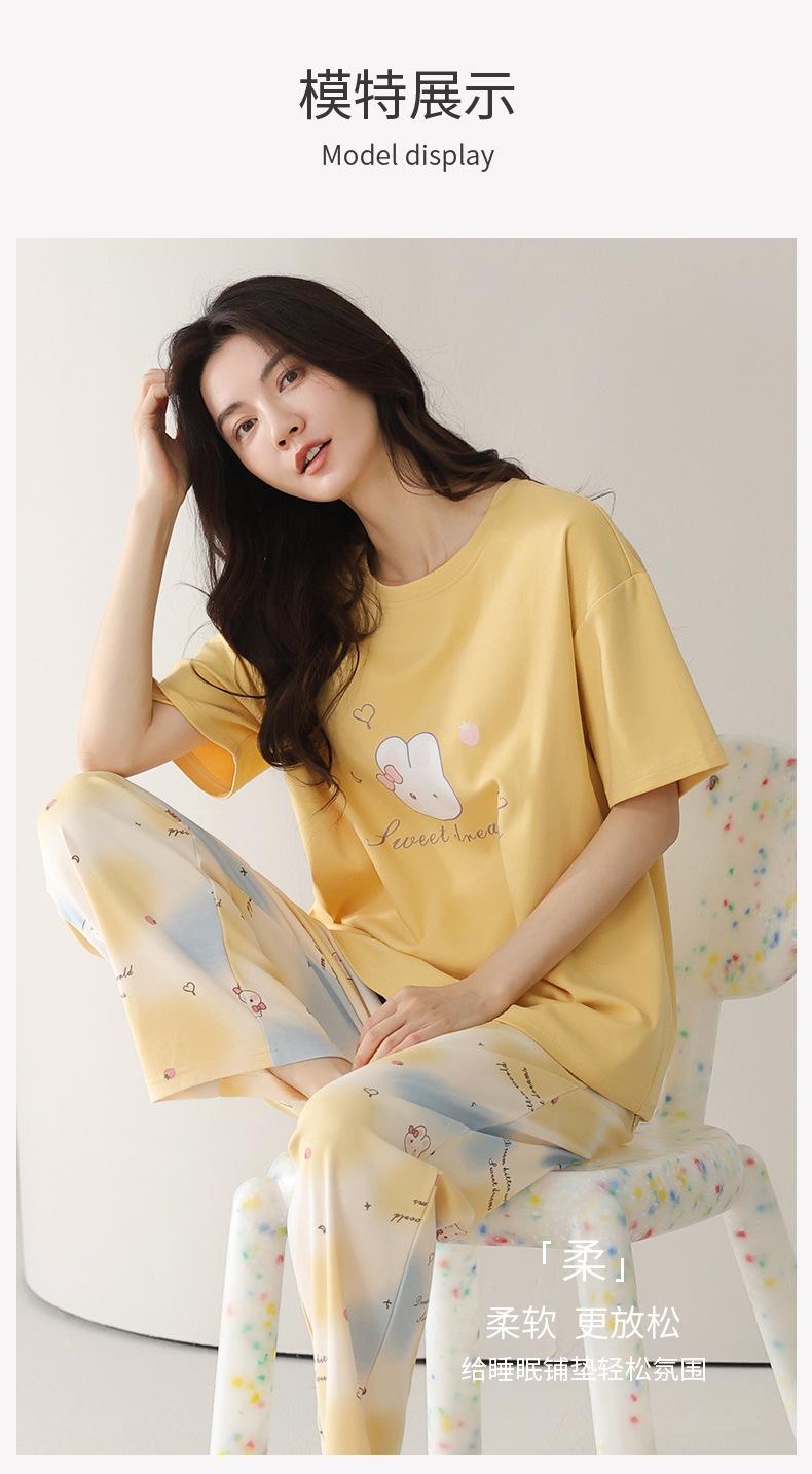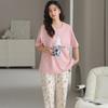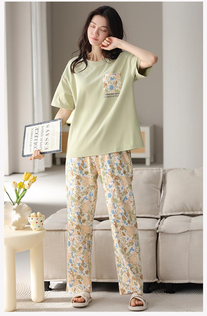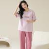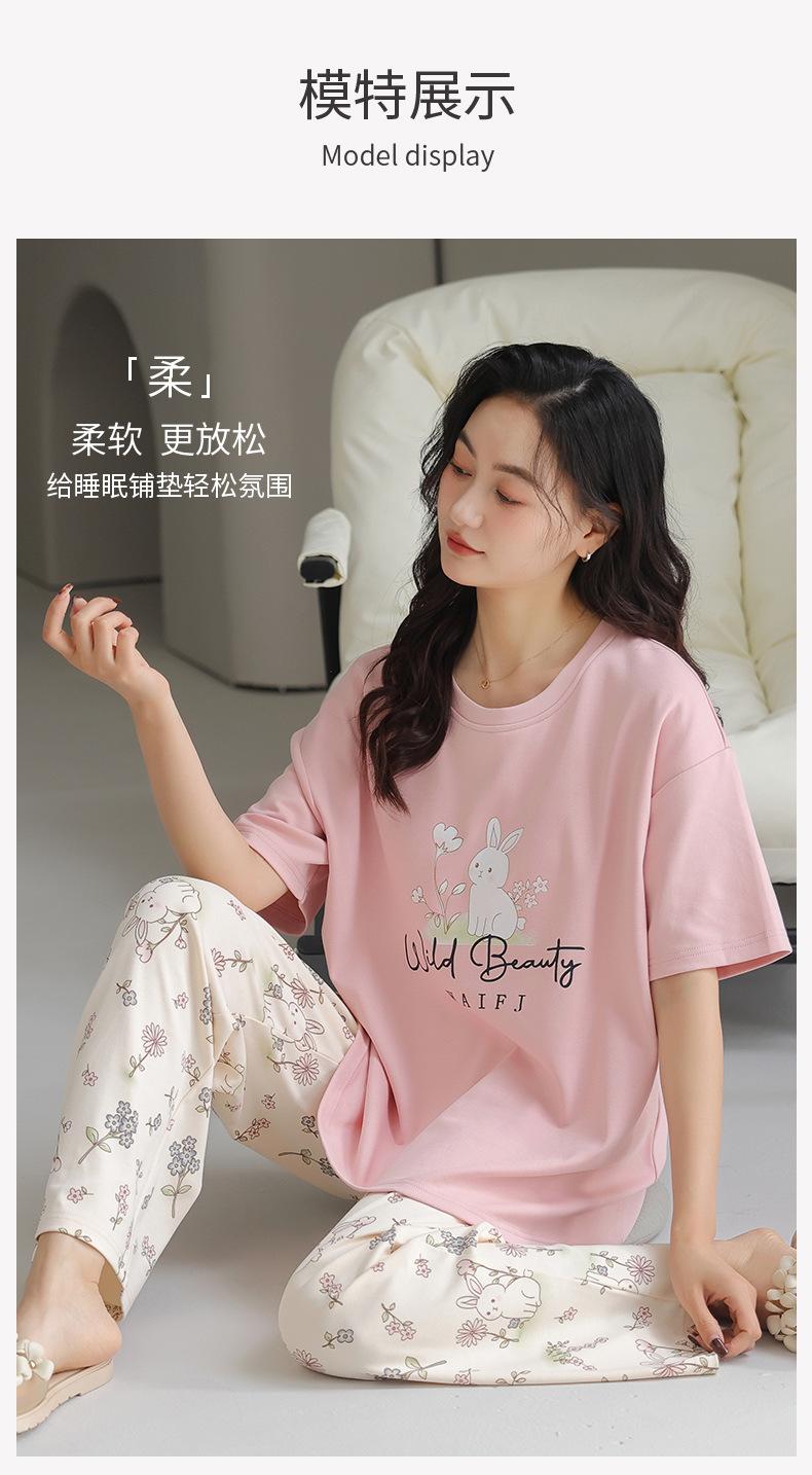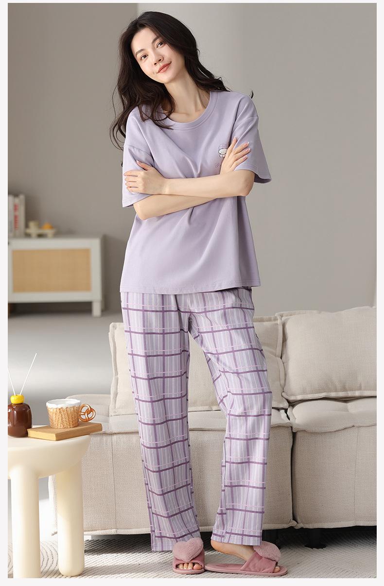 Pijama de algodón de manga corta para mujer, cuello redondo, talla grande, holgado, para exteriores, sencillo, para el hogar, 2025