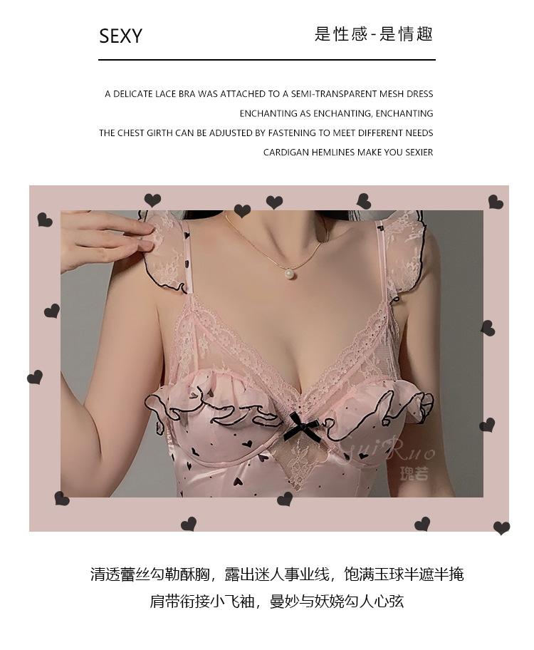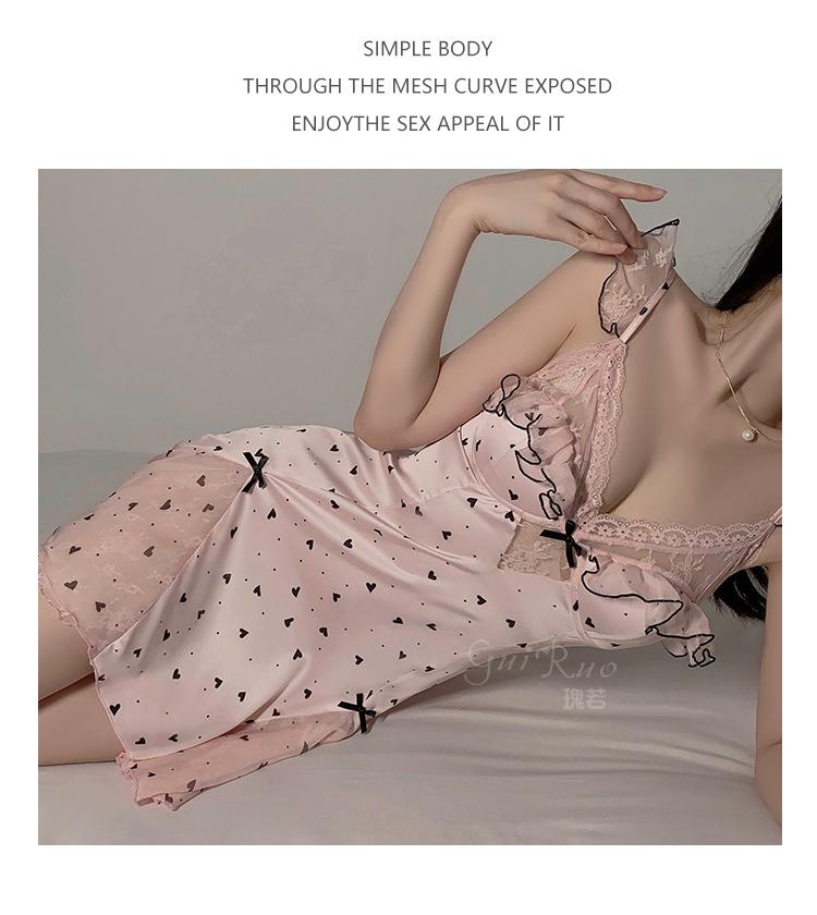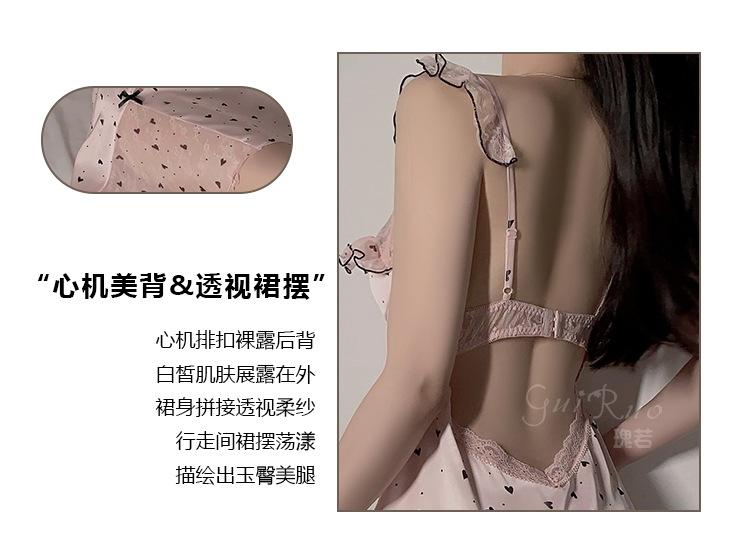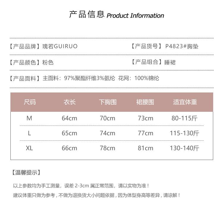 DZ Guiruo Pasión Tentación Plus Pijama con Almohadilla para el Pecho talla grande Satén Lujo Ligero Sexy Camisón Ropa de Casa traje P4823