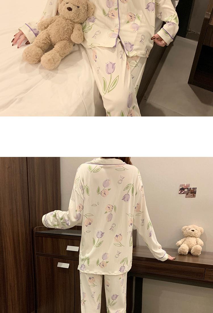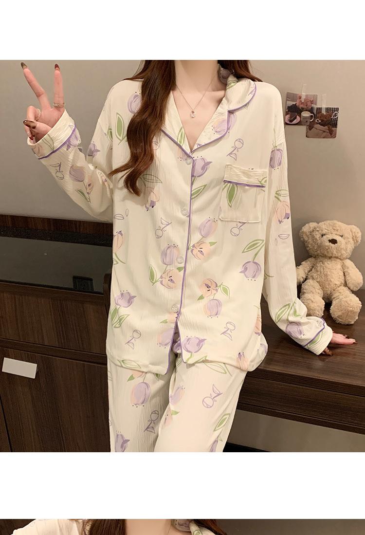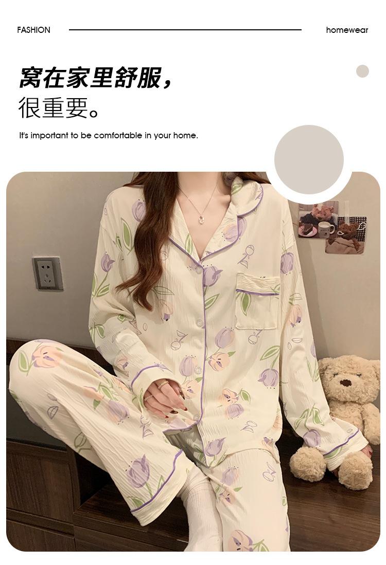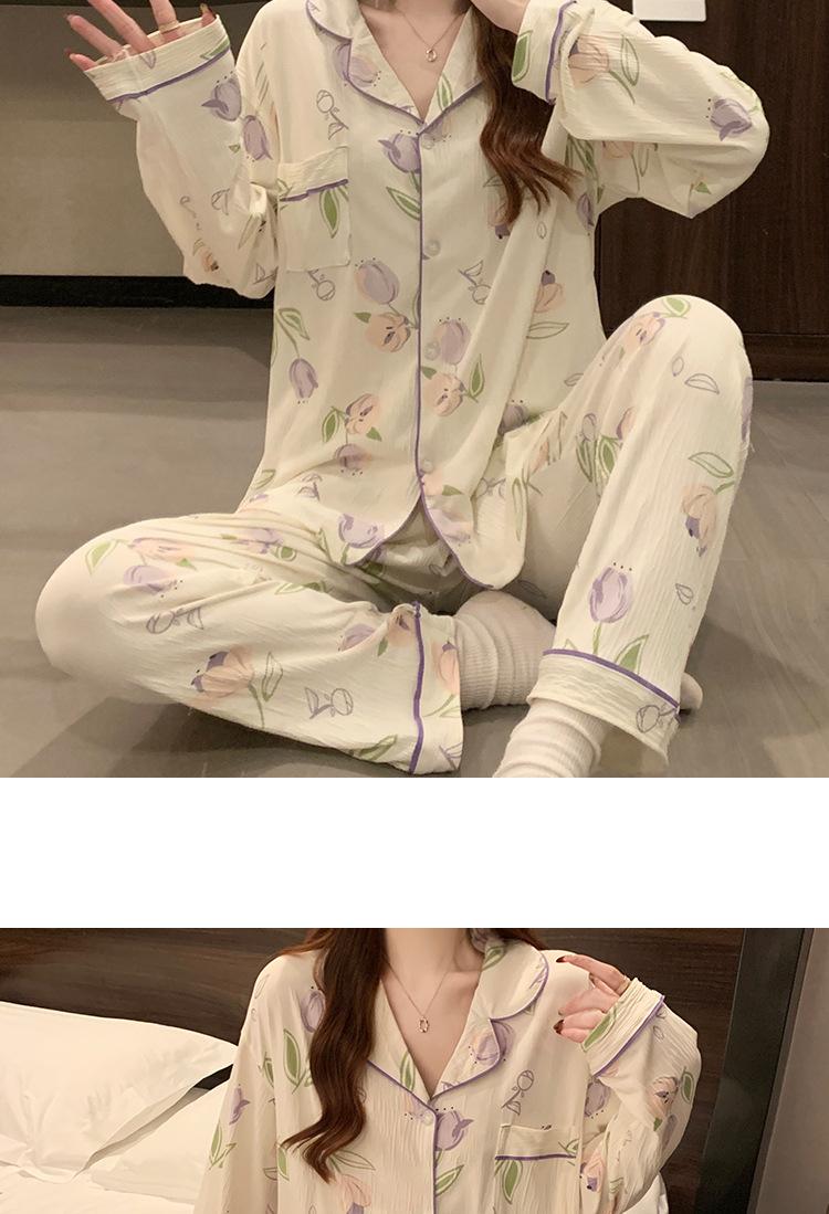 Pijama de manga larga de tela arrugada suave y cómoda para mujer, ropa de casa blanca tulipán para el día de primavera, se puede usar como traje al por mayor